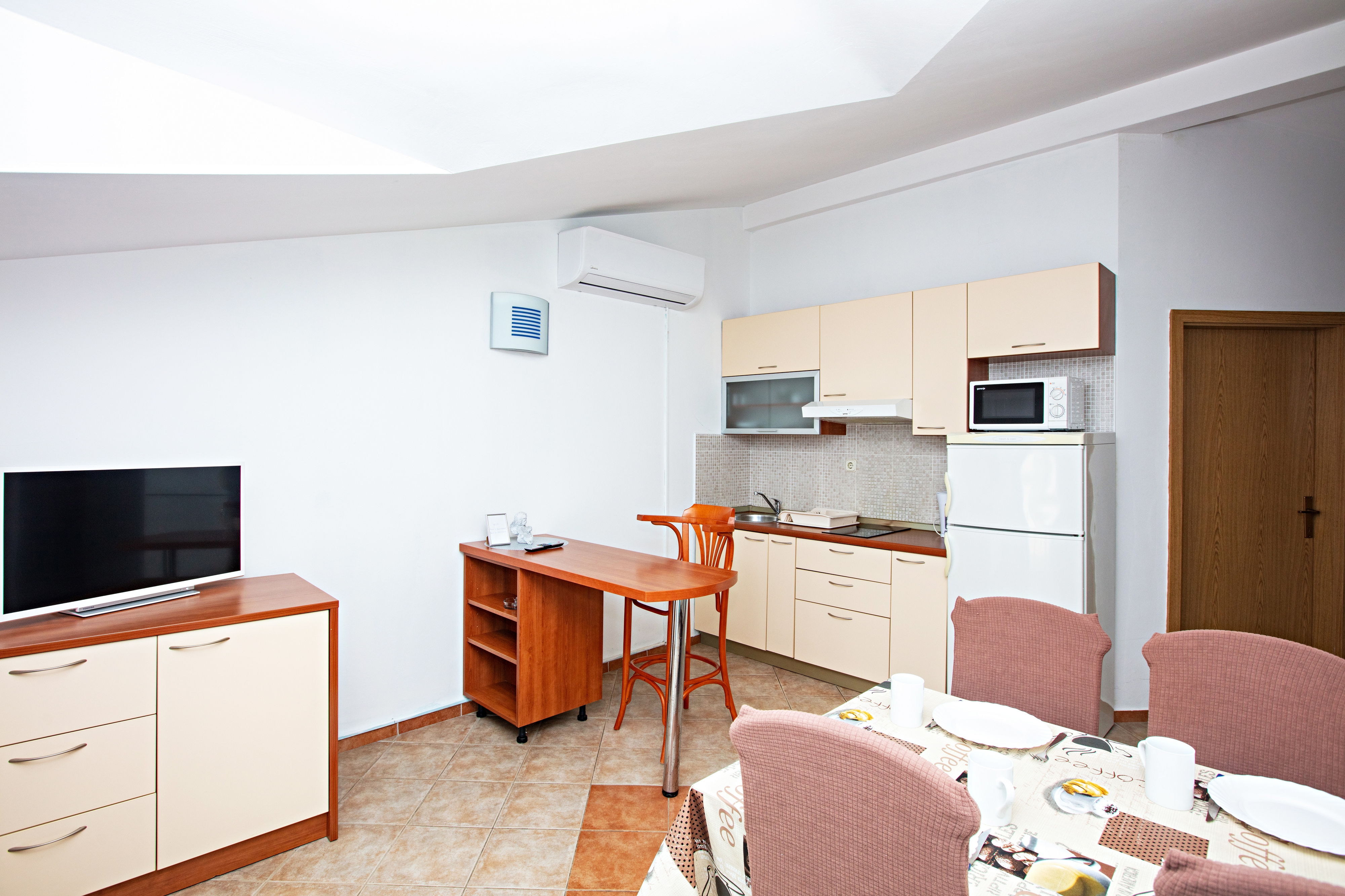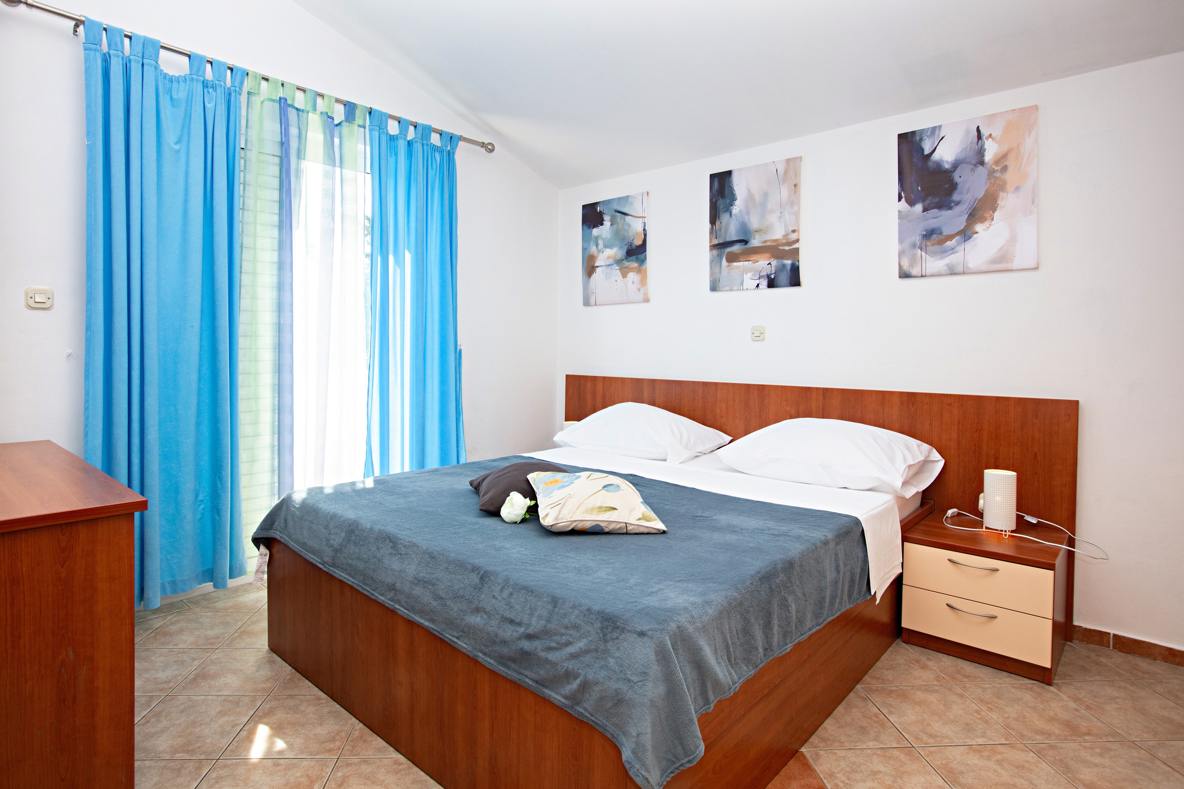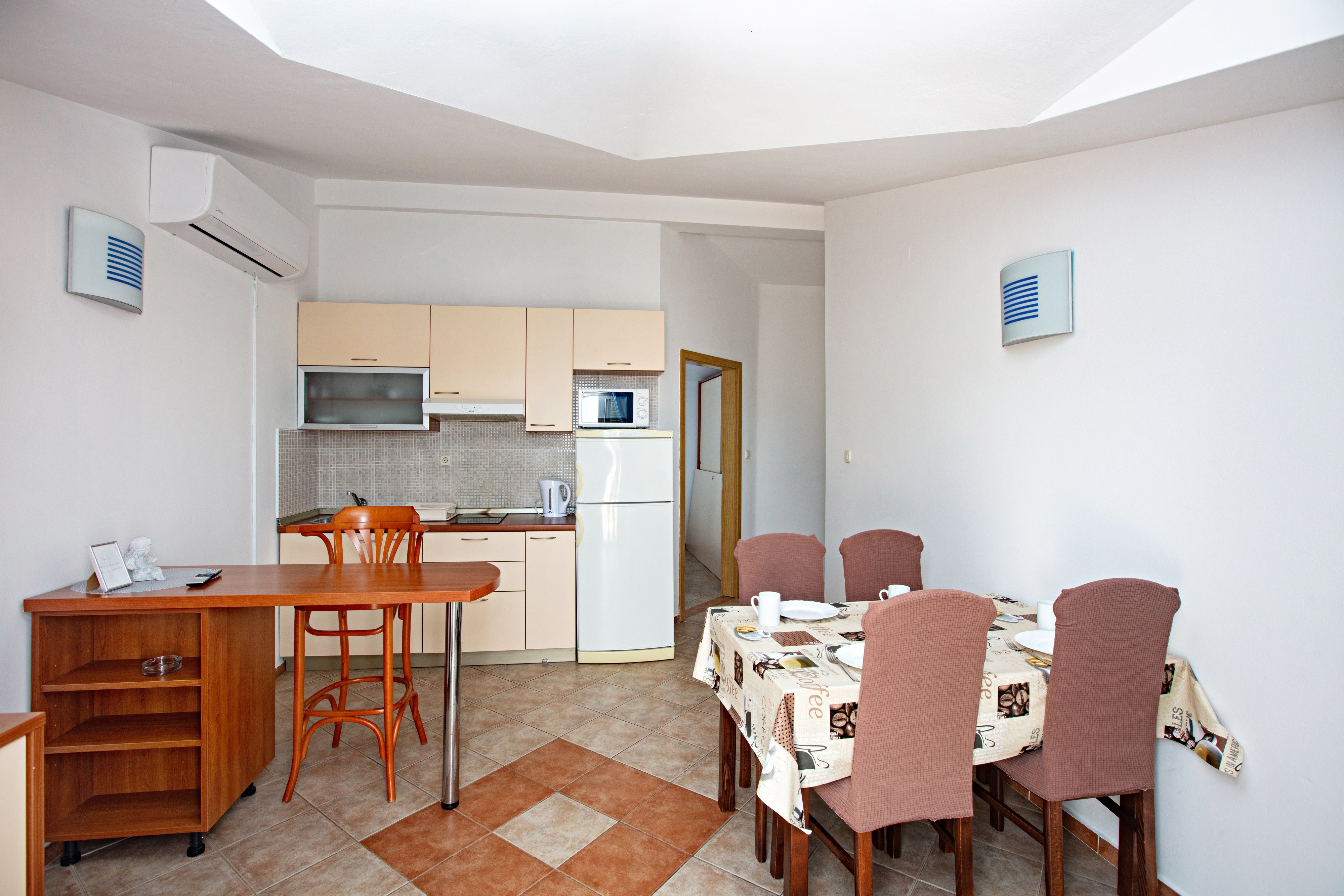 Apartment can accommodate 4 guests. Beds are situated in 2 sleeping rooms, within 42m2. Guests can use a private terrace to enjoy the warm summer evenings. Food can be prepared using barbecue which is shared with other guests too. INCLUDED IN THE PRICE: tourist tax, final cleaning, air-conditioning, parking, internet. OPTIONAL ADDITIONAL COSTS: breakfast (€17.00, a 50% discount for children aged 4 to 12 years, Children up to age 4 free of charge), half-board (€36.00, a 50% discount for children aged 4 to 12 years, Children up to age 4 free of charge). The availability of additional services for your chosen dates of stay, as well as their prices (if none are listed) must be checked ahead of time. Any additional services not shown in the price calculation are payable directly to the property owner and only if used by the visitor.
