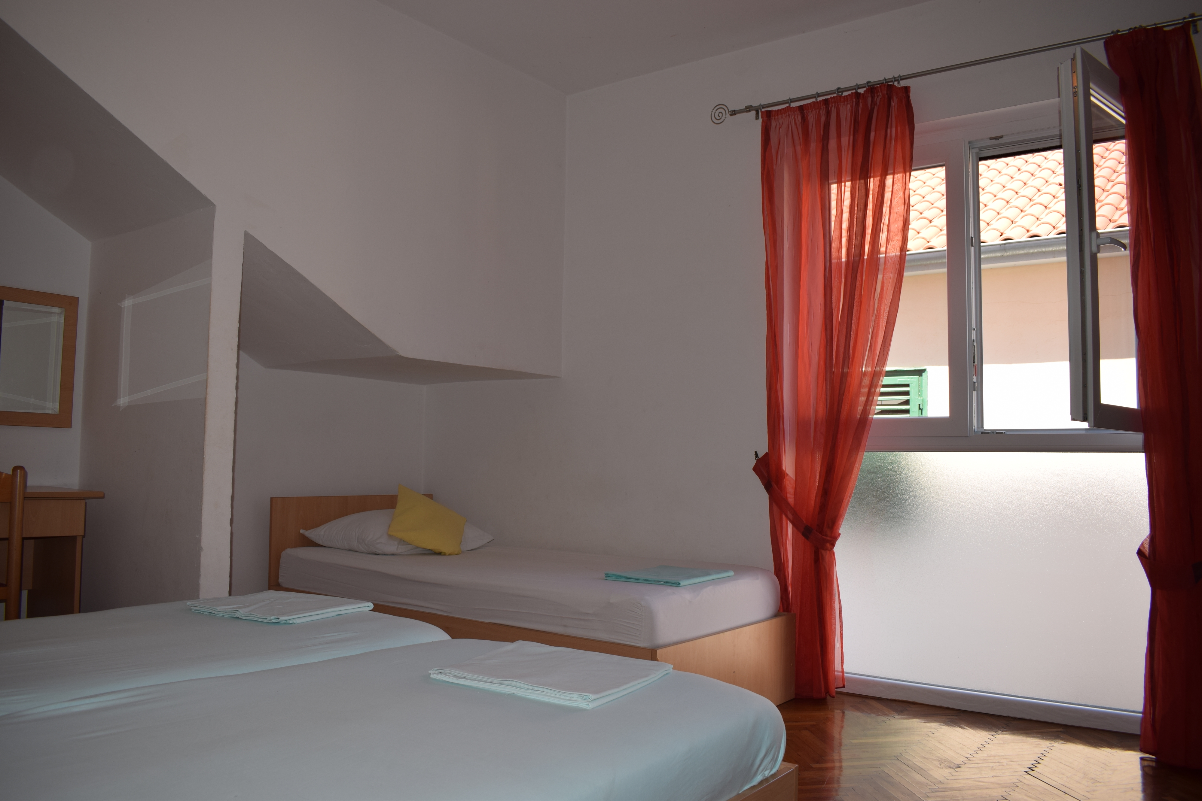 Studio flat can accommodate 3 guests. Beds are situated in 1 sleeping rooms, within 23m2. Food can be prepared using barbecue which is shared with other guests too. There is no balcony or terrace in the reserved accommodation unit. INCLUDED IN THE PRICE: tourist tax, final cleaning, air-conditioning, internet. OBLIGATORY ADDITIONAL COSTS: short stay fee (surcharge depending on a number of booked nights: 30% - 1, 20% - 2, 10% - 3). The availability of additional services for your chosen dates of stay, as well as their prices (if none are listed) must be checked ahead of time. Any additional services not shown in the price calculation are payable directly to the property owner and only if used by the visitor. Discounts to the base price: free day 14=13 (for reservations of 14 or more days you get one free day for the stay until 31122026).