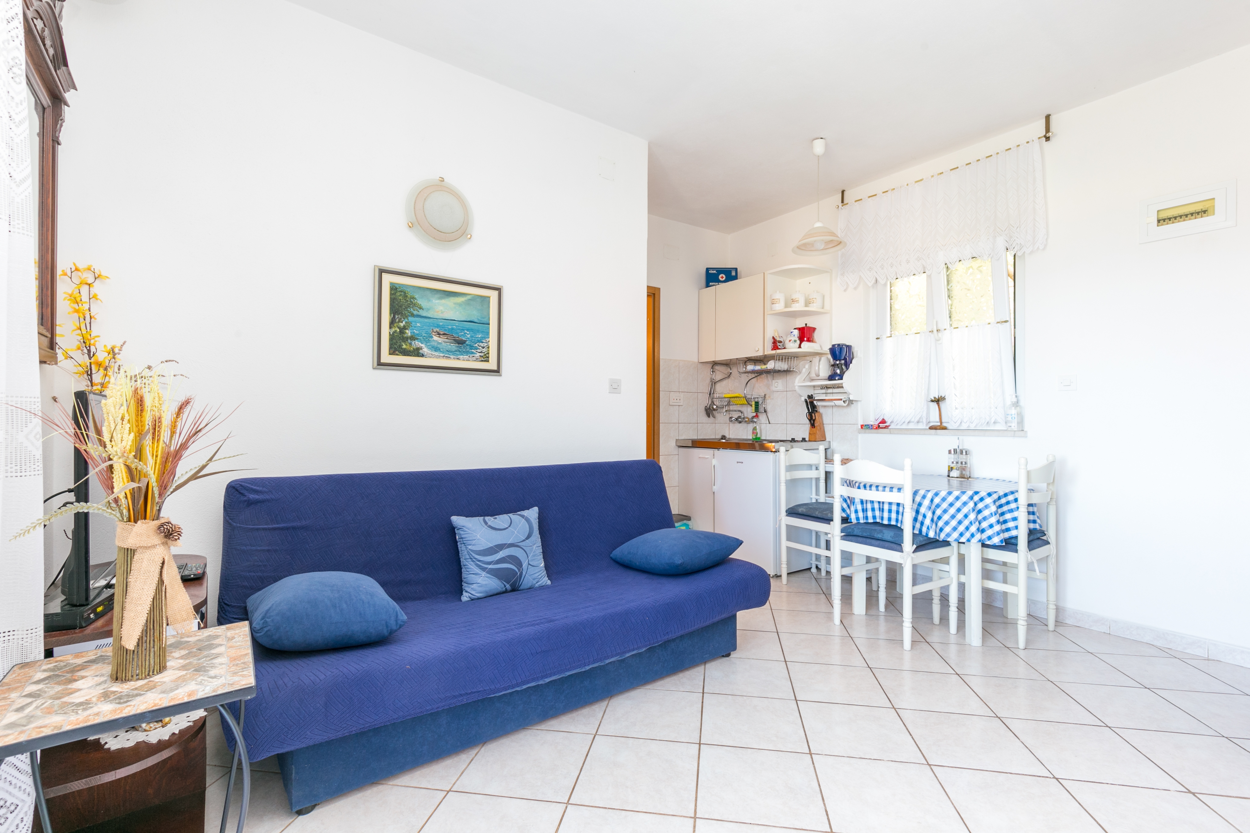 Apartment can accommodate 3 guests. Beds are situated in 1 sleeping rooms, but also in the living room, within 28m2. Guests can use a private terrace to enjoy the warm summer evenings. The apartment offers the sea view. Food can be prepared using barbecue which is shared with other guests too. INCLUDED IN THE PRICE: tourist tax, final cleaning, air-conditioning, parking, internet, laundry, baby cot, iron, ironing board, hairdryer. The availability of additional services for your chosen dates of stay, as well as their prices (if none are listed) must be checked ahead of time. Any additional services not shown in the price calculation are payable directly to the property owner and only if used by the visitor.