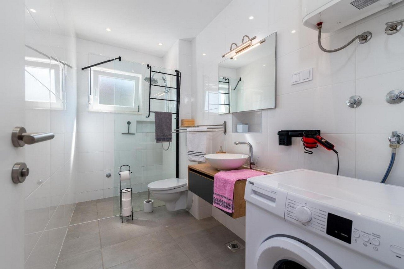 Apartment can accommodate 3 guests. Beds are situated in 1 sleeping rooms, but also in the living room, within 39m2. Guests can use a private terrace to enjoy the warm summer evenings. The apartment offers the sea view. Shared pool is on disposal during stay. INCLUDED IN THE PRICE: tourist tax, final cleaning, air-conditioning, pool, parking, internet, iron, ironing board, hairdryer. The availability of additional services for your chosen dates of stay, as well as their prices (if none are listed) must be checked ahead of time. Any additional services not shown in the price calculation are payable directly to the property owner and only if used by the visitor.