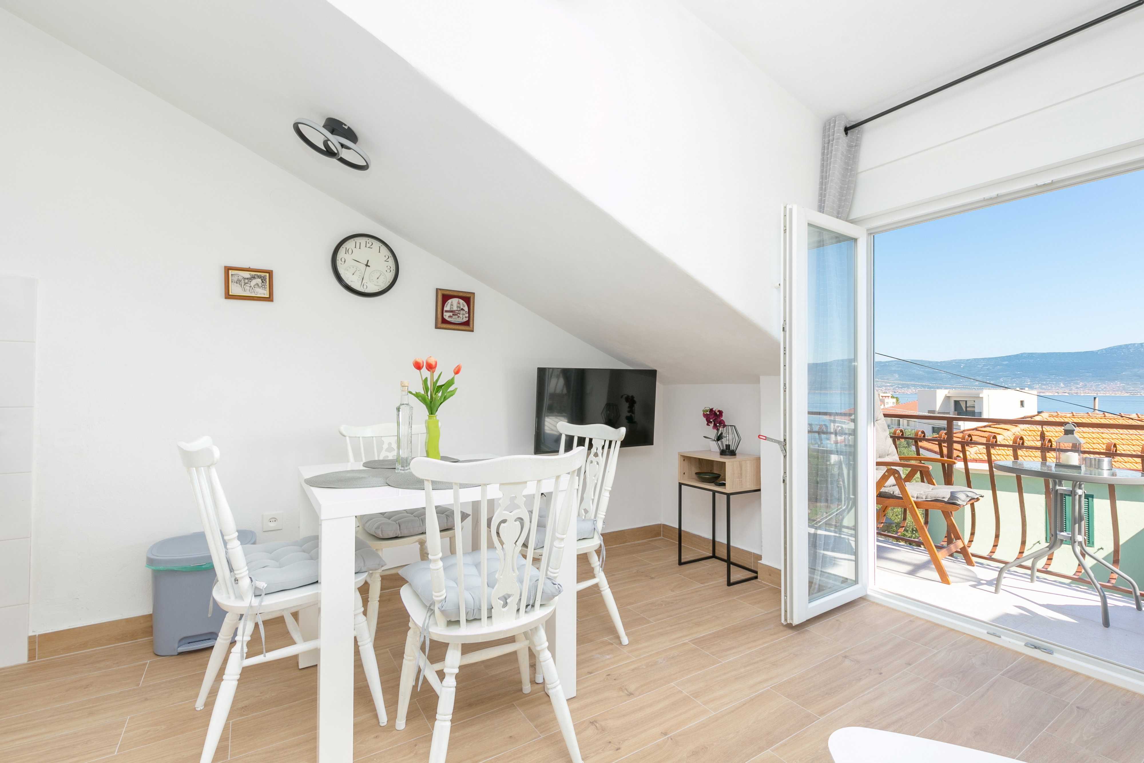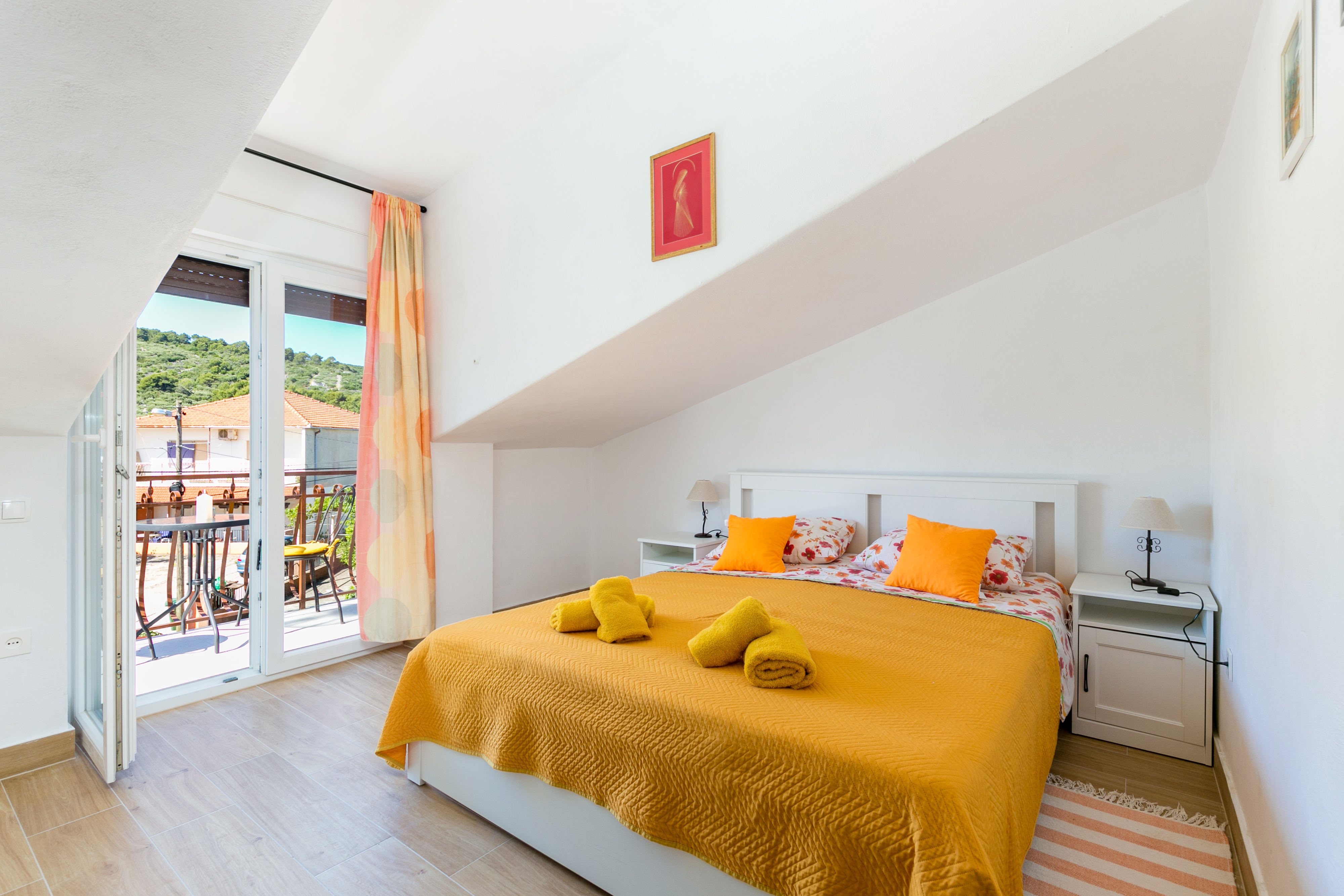 House 24266 in the town of Slatine, Čiovo - Central Dalmatia has accommodation units of type Apartment (5) and is 150 m away from the sea. The nearest beach to this accommodation is a pebble beach. As the house is dividedseveral accommodation units, other guests will most likely be present during your stay. The hosts will be in the house during your holiday. The house owner is under no obligation to accept additional persons and pets that were not stated in the reservation request and it is necessary to report them in advance.AMENITIES Courtyard (100m2, Sitting area), Parking lot (Number of parking spaces: 10, Distance from the house: In the courtyard), Barbecue: shared, WiFi Internet, Hairdryer, Iron, Baby cot LOCATION AND ACCESS Facility is situated near a local road Local road between the property and the beach Car access possible: Yes, Narrow street: 70 m The facility is situated in relatively quiet surroundings DISTANCES Sea: 150 m Beach: 240 m Center: 10 km Shop: 450 m Pharmacy: 9 km Exchange office: 10 km ATMBank machine: 500 m Tourist info: 650 m Airport: 13 km Ferry port: 12 km Bus station: 11 km Farmers market: 8 km