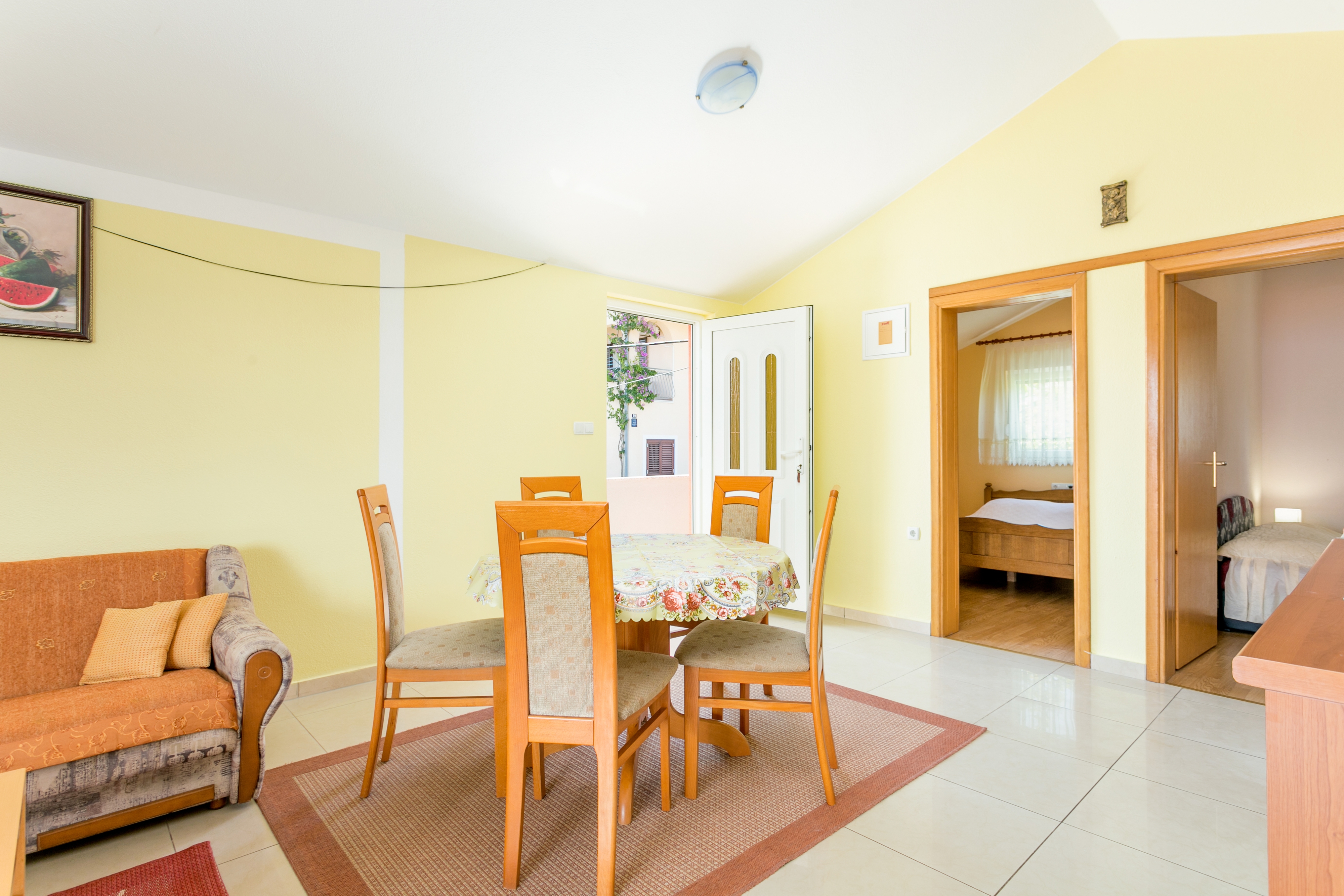 House 11126 in the town of Slatine, Čiovo - Central Dalmatia has accommodation units of type Apartment (1) and is 100 m away from the sea. The nearest beach to this accommodation is a pebble beach. Other guests will most likely be present in the house during your holiday. The hosts will not be in the house for the duration of your holiday. The house owner is under no obligation to accept additional persons and pets that were not stated in the reservation request and it is necessary to report them in advance.AMENITIES Courtyard (100m2), Parking lot (Number of parking spaces: 2, Distance from the house: In the courtyard), WiFi Internet, Hairdryer, Iron, Ironing board, Portable barbecue LOCATION AND ACCESS Facility is situated near a local road Car access possible: Yes The facility is situated in relatively quiet surroundings The facility is partly surrounded by vegetation DISTANCES Sea: 100 m Beach: 100 m Center: 9 km Shop: 300 m Urgent medical care: 9.5 km Pharmacy: 100 m Exchange office: 500 m ATMBank machine: 500 m Tourist info: 500 m