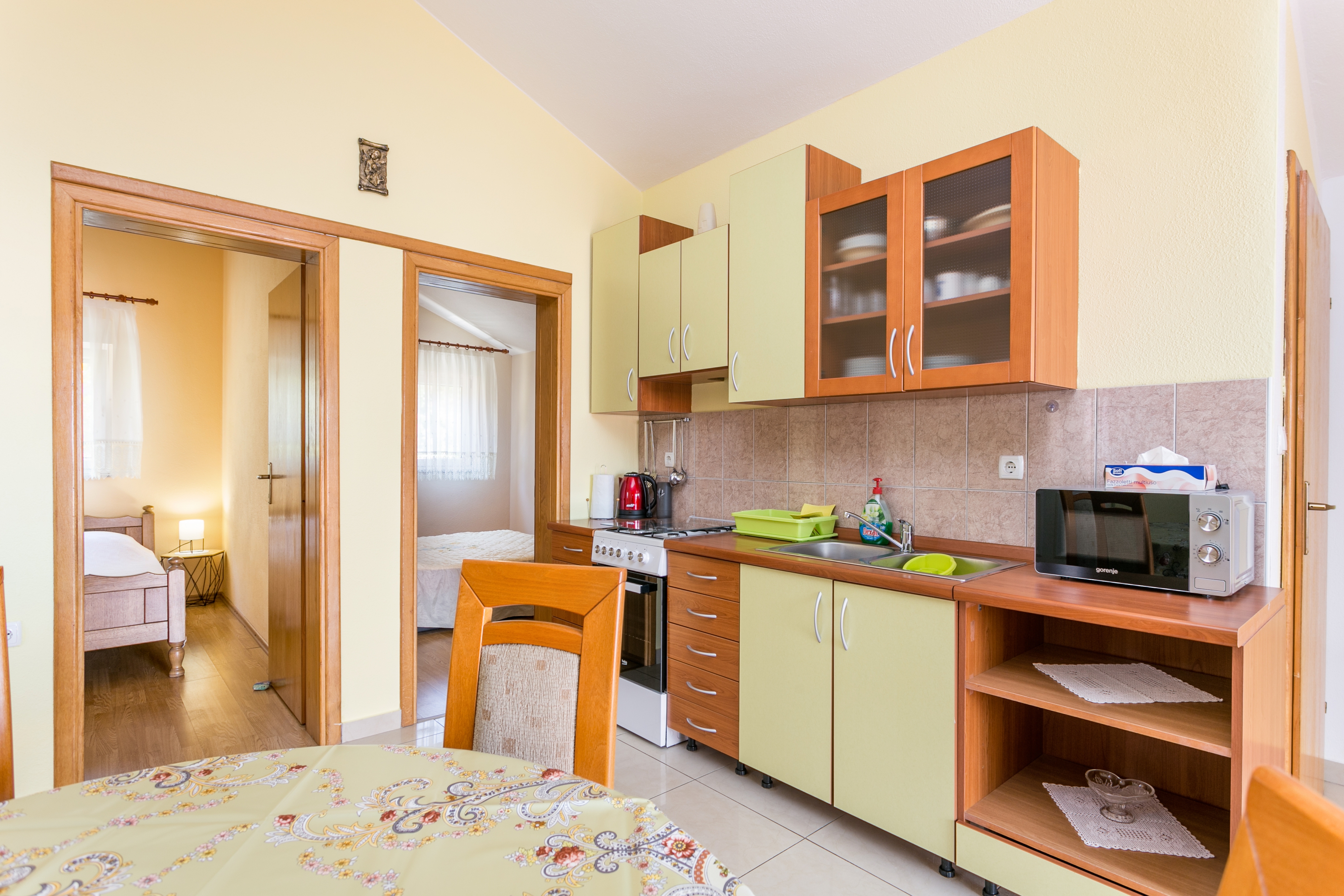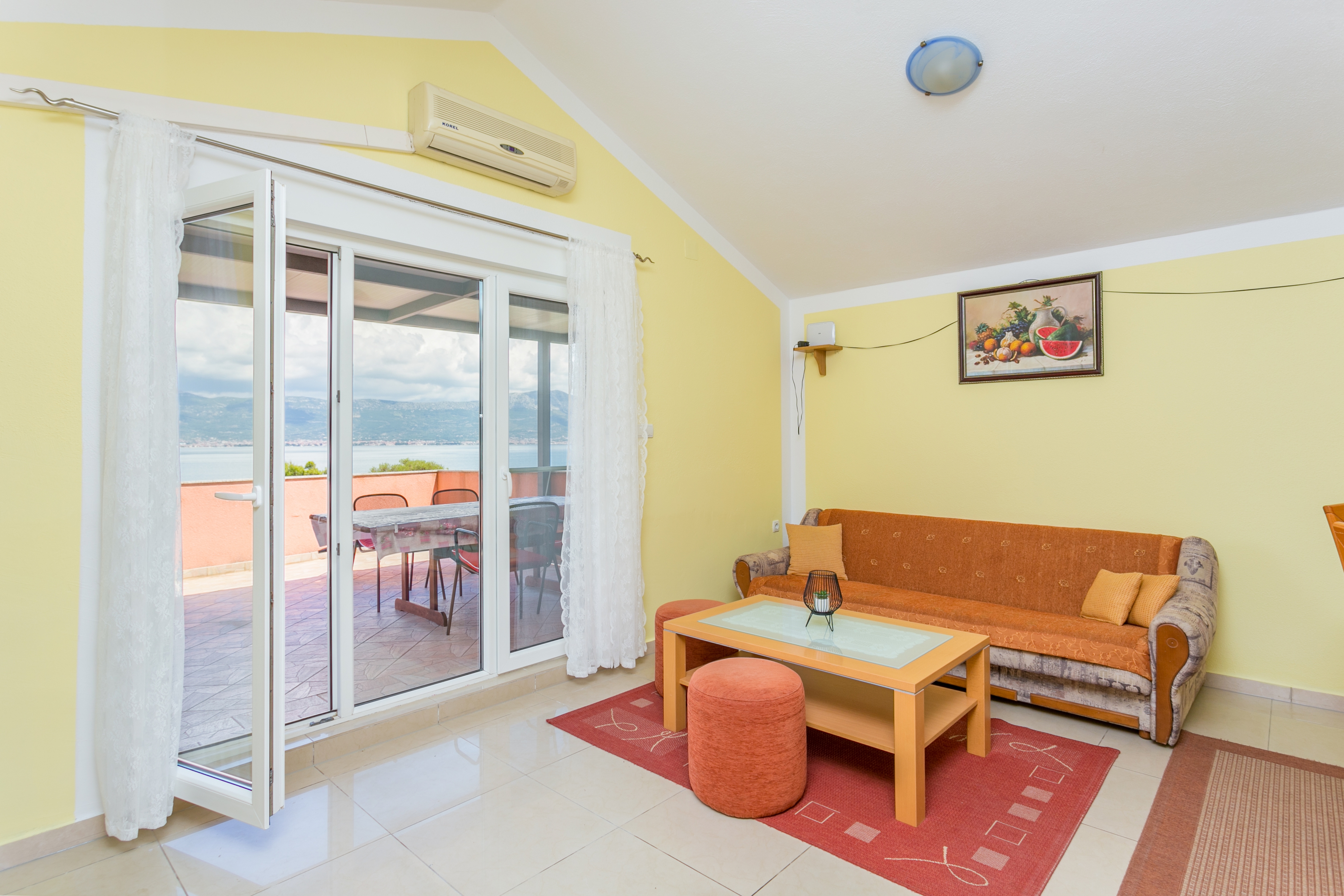 Apartment can accommodate 4 guests. Beds are situated in 2 sleeping rooms, within 50m2. Guests can use a private terrace to enjoy the warm summer evenings. The apartment offers the sea view. Food can be prepared using barbecue which is shared with other guests too. INCLUDED IN THE PRICE: tourist tax, final cleaning, air-conditioning, parking, internet, iron, ironing board, hairdryer, portable barbecue. OBLIGATORY ADDITIONAL COSTS: short stay fee (surcharge depending on a number of booked nights: 30% - 1, 20% - 2, 10% - 3). The availability of additional services for your chosen dates of stay, as well as their prices (if none are listed) must be checked ahead of time. Any additional services not shown in the price calculation are payable directly to the property owner and only if used by the visitor.