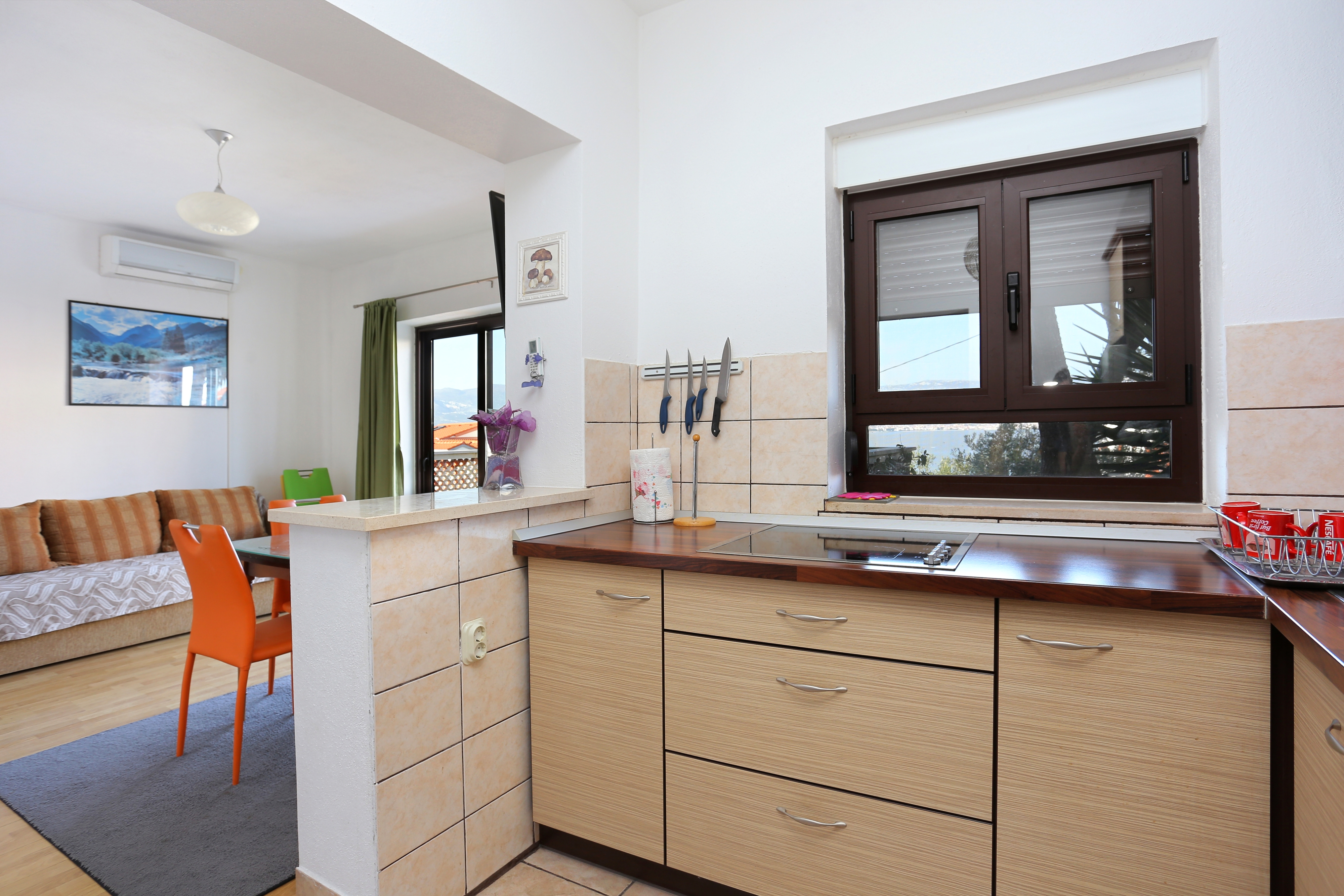 House 9453 in the town of Slatine, Čiovo - Central Dalmatia has accommodation units of type Apartment (1), Studio flat (2) and is 100 m away from the sea. The nearest beach to this accommodation is a pebble beach. During your holiday, there may be other guests in the houses other apartments. During your holiday, your hosts will also be present in the house. The house owner is under no obligation to accept additional persons and pets that were not stated in the reservation request and it is necessary to report them in advance.AMENITIES Infield (Well-equipped), Courtyard (50m2, Sitting area), Parking lot (Number of parking spaces: 4, Distance from the house: In the courtyard), Barbecue: shared, WiFi Internet, Hairdryer, Iron, Ironing board LOCATION AND ACCESS Facility is situated near a local road Main road between the property and the beach Number of stairs from the property to the beach: 12 Car access possible: Yes, Slope: 100 m The facility is situated in relatively quiet surroundings The facility is partly surrounded by vegetation DISTANCES Sea: 100 m Beach: 150 m Center: 5.5 km Shop: 800 m Urgent medical care: 6.5 km Pharmacy: 5.5 km Exchange office: 2 km ATMBank machine: 5.5 km Tourist info: 2 km Airport: 10 km