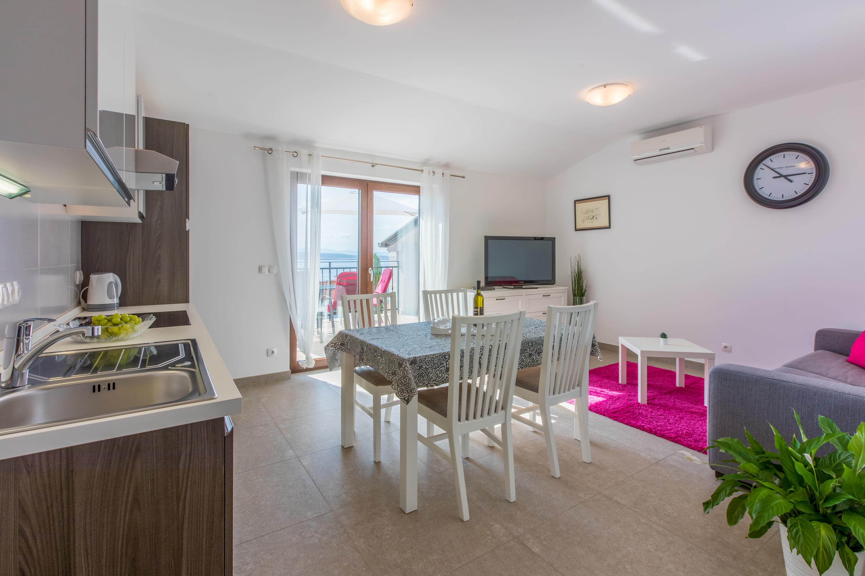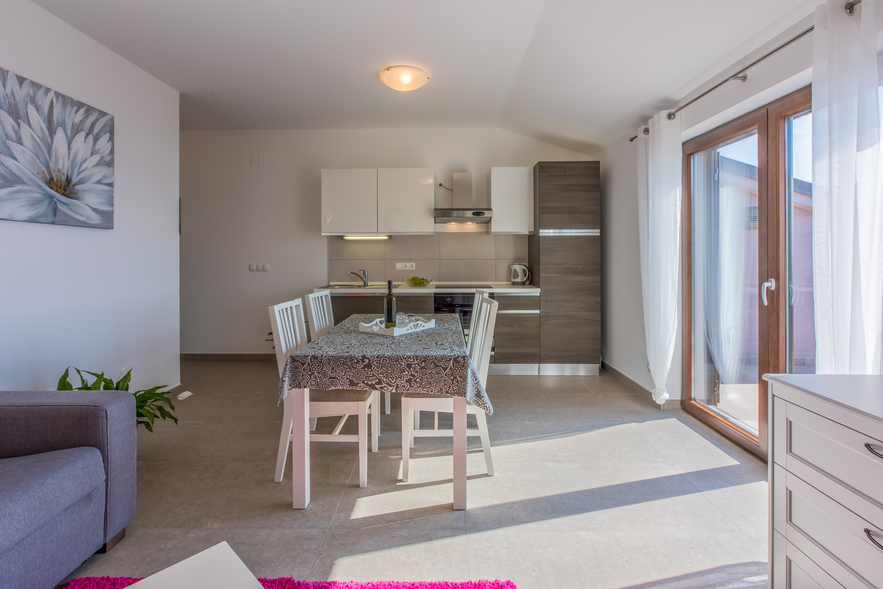 Apartment can accommodate 4 guests. Beds are situated in 1 sleeping rooms, but also in the living room, within 41m2. Guests can use a private terrace to enjoy the warm summer evenings. The apartment offers the sea view. For the booked accommodation unit the deposit is paid directly to the owner upon check-in (deposit amount is displayed on the website) INCLUDED IN THE PRICE: tourist tax, final cleaning, air-conditioning, parking, internet, hairdryer. OBLIGATORY ADDITIONAL COSTS: deposit (€100.00 one-time payment). The availability of additional services for your chosen dates of stay, as well as their prices (if none are listed) must be checked ahead of time. Any additional services not shown in the price calculation are payable directly to the property owner and only if used by the visitor.