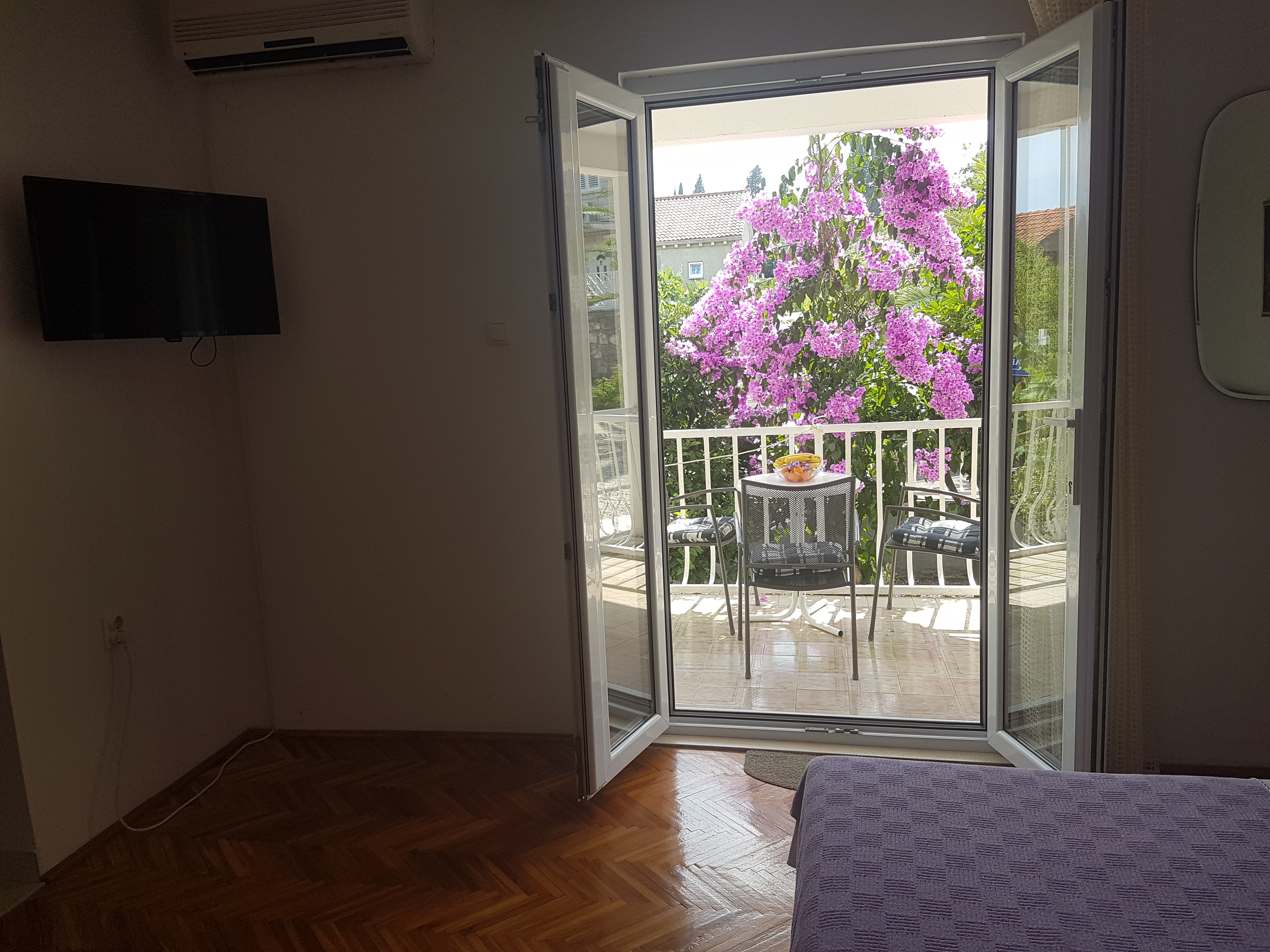 Studio flat can accommodate 2 guests. Beds are situated in 1 sleeping rooms, within 29m2. Guests can use a private terrace to enjoy the warm summer evenings. Food can be prepared using barbecue which is shared with other guests too. This accommodation unit welcomes pets at an additional charge. INCLUDED IN THE PRICE: tourist tax, final cleaning, air-conditioning, parking, internet, boat mooring, iron, ironing board, hairdryer, portable barbecue, 1 bed for children (included in the price). OBLIGATORY ADDITIONAL COSTS: short stay fee (surcharge depending on a number of booked nights: 30% - 1, 20% - 2, 10% - 3). OPTIONAL ADDITIONAL COSTS: laundry (€7.00 washing), pets (€5.00 per night). The availability of additional services for your chosen dates of stay, as well as their prices (if none are listed) must be checked ahead of time. Any additional services not shown in the price calculation are payable directly to the property owner and only if used by the visitor. Discounts to the base price: free day 14=13 (for reservations of 14 or more days you get one free day for the stay until 31122026).