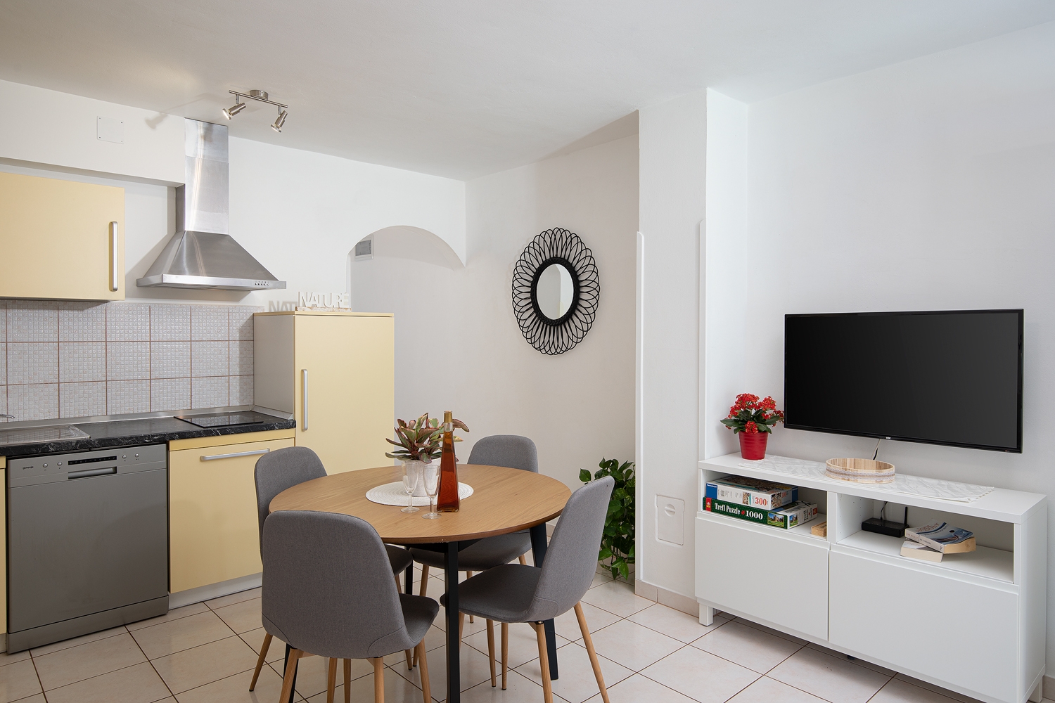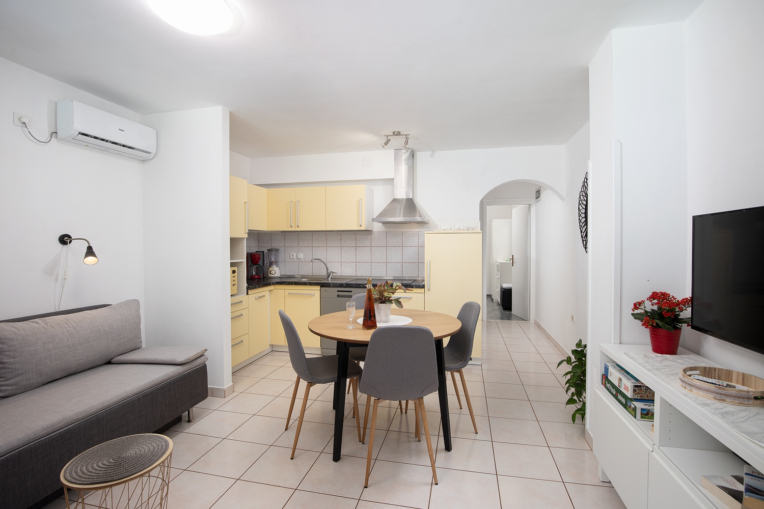 Apartment can accommodate 4 guests. Beds are situated in 1 sleeping rooms, but also in the living room, within 38m2. Guests can use a private terrace to enjoy the warm summer evenings. For full enjoyment and relaxation there is a private barbecue for this accommodation guests only. INCLUDED IN THE PRICE: tourist tax, final cleaning, air-conditioning, parking, internet, iron, ironing board. OBLIGATORY ADDITIONAL COSTS: short stay fee (surcharge depending on a number of booked nights: 30% - 1, 20% - 2, 10% - 3). The availability of additional services for your chosen dates of stay, as well as their prices (if none are listed) must be checked ahead of time. Any additional services not shown in the price calculation are payable directly to the property owner and only if used by the visitor.