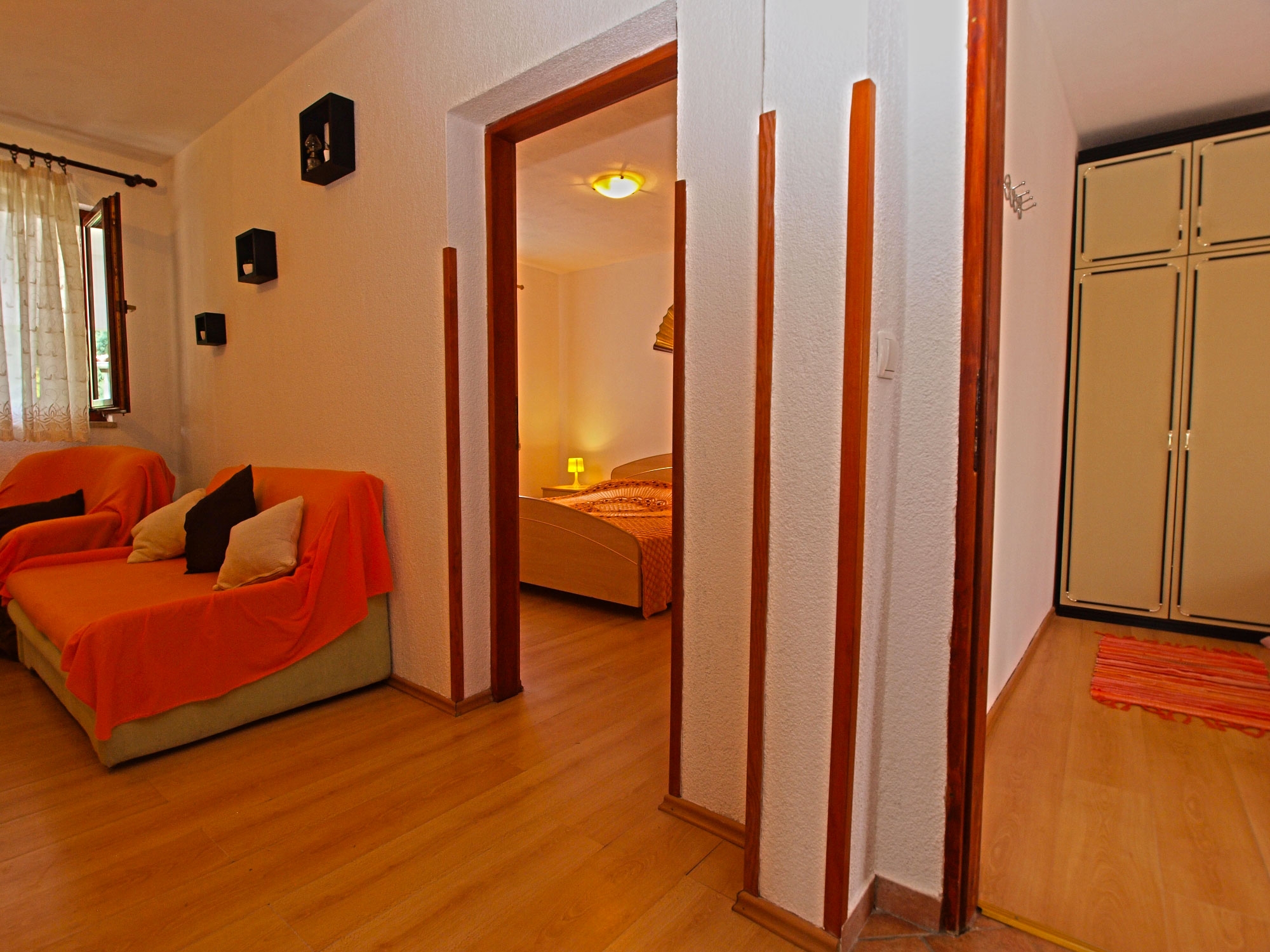 Apartment can accommodate 9 guests. Beds are situated in 3 sleeping rooms, but also in the living room, within 70m2. Guests can use a private terrace to enjoy the warm summer evenings. Food can be prepared using barbecue which is shared with other guests too. Shared pool is on disposal during stay. This accommodation unit welcomes pets at an additional charge. Notthe rooms of the booked accommodation unit are connectedone whole. INCLUDED IN THE PRICE: tourist tax, final cleaning, air-conditioning, pool, parking, internet, baby cot, iron. OPTIONAL ADDITIONAL COSTS: pets (€10.00 per night). The availability of additional services for your chosen dates of stay, as well as their prices (if none are listed) must be checked ahead of time. Any additional services not shown in the price calculation are payable directly to the property owner and only if used by the visitor.