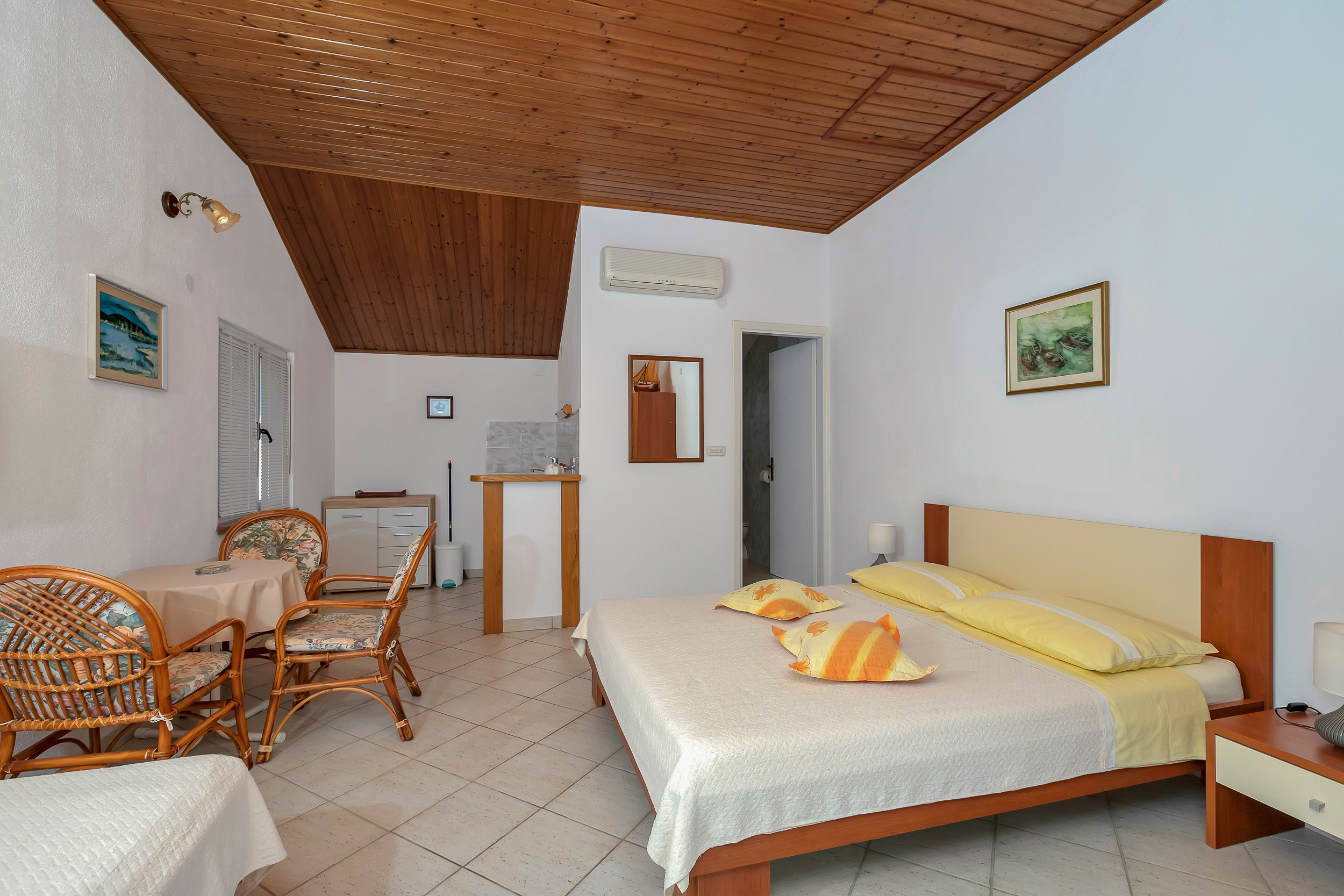Studio flat can accommodate 2 guests. Beds are situated in 1 sleeping rooms, within 22m2. Guests can use a private terrace to enjoy the warm summer evenings. The studio offers the sea view. INCLUDED IN THE PRICE: tourist tax, final cleaning, air-conditioning, parking, internet, boat mooring. OBLIGATORY ADDITIONAL COSTS: short stay fee (surcharge depending on a number of booked nights: 30% - 1, 20% - 2, 10% - 3). OPTIONAL ADDITIONAL COSTS: additional bed (€10.00 per night). The availability of additional services for your chosen dates of stay, as well as their prices (if none are listed) must be checked ahead of time. Any additional services not shown in the price calculation are payable directly to the property owner and only if used by the visitor.