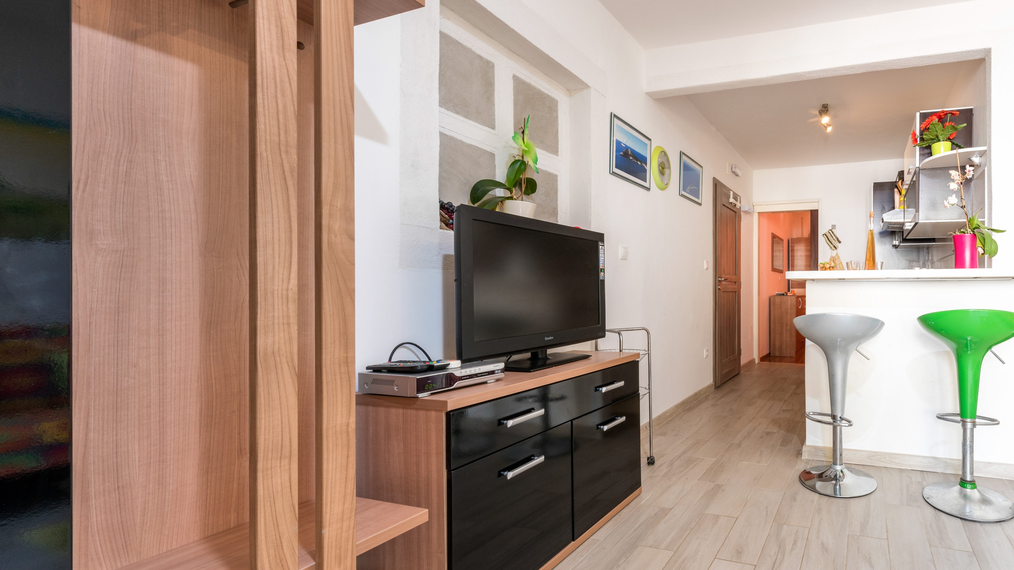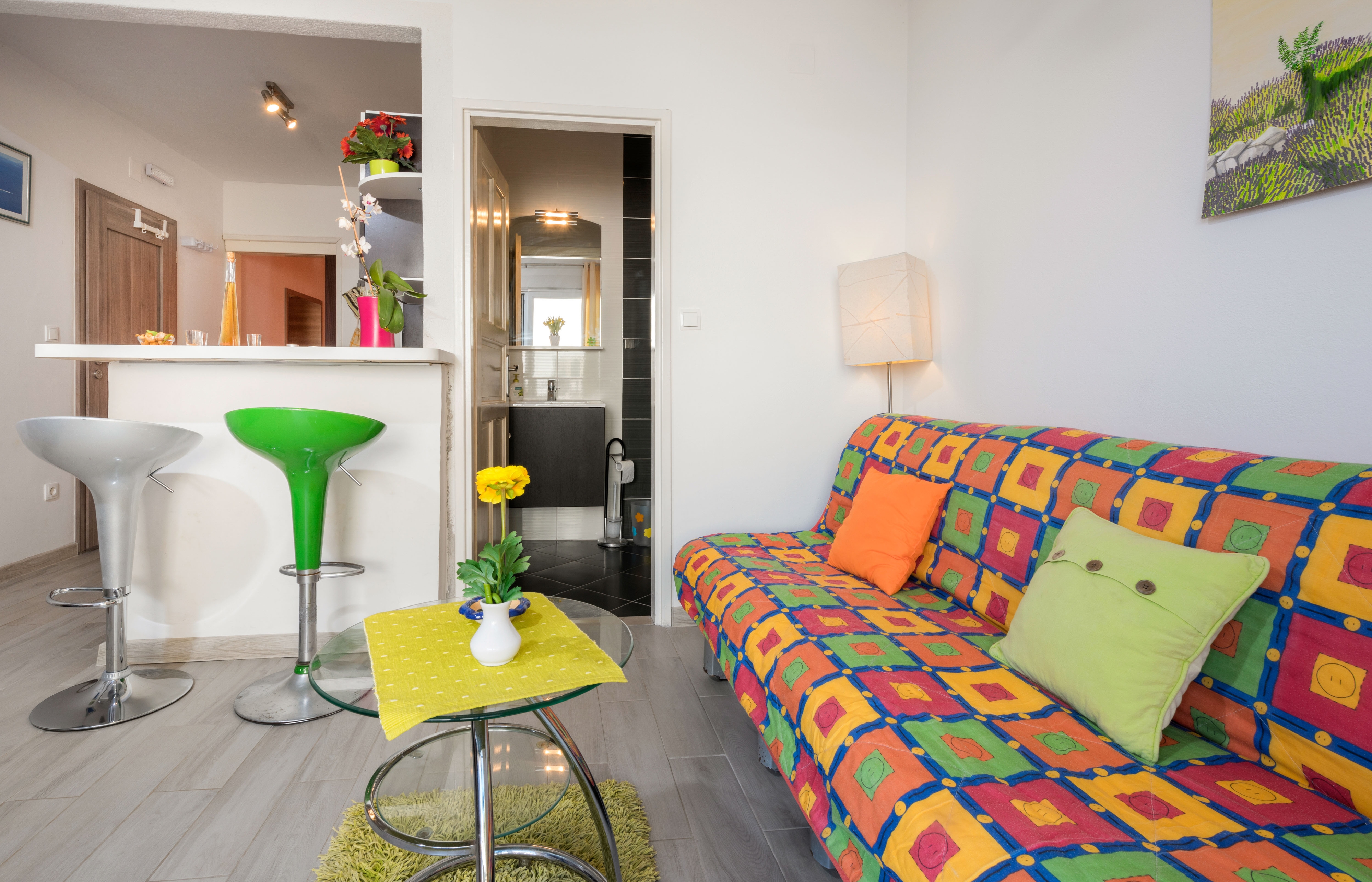 Apartment can accommodate 4 guests. Beds are situated in 1 sleeping rooms, but also in the living room, within 37m2. Guests can use a private terrace to enjoy the warm summer evenings. The apartment offers the sea view. INCLUDED IN THE PRICE: tourist tax, final cleaning, air-conditioning, parking, internet, boat mooring, baby cot, additional bed, iron, ironing board, hairdryer. OBLIGATORY ADDITIONAL COSTS: short stay fee (surcharge depending on a number of booked nights: 30% - 1, 20% - 2, 10% - 3). The availability of additional services for your chosen dates of stay, as well as their prices (if none are listed) must be checked ahead of time. Any additional services not shown in the price calculation are payable directly to the property owner and only if used by the visitor. Discounts to the base price: free day 14=13 (for reservations of 14 or more days you get one free day for the stay until 31122026).