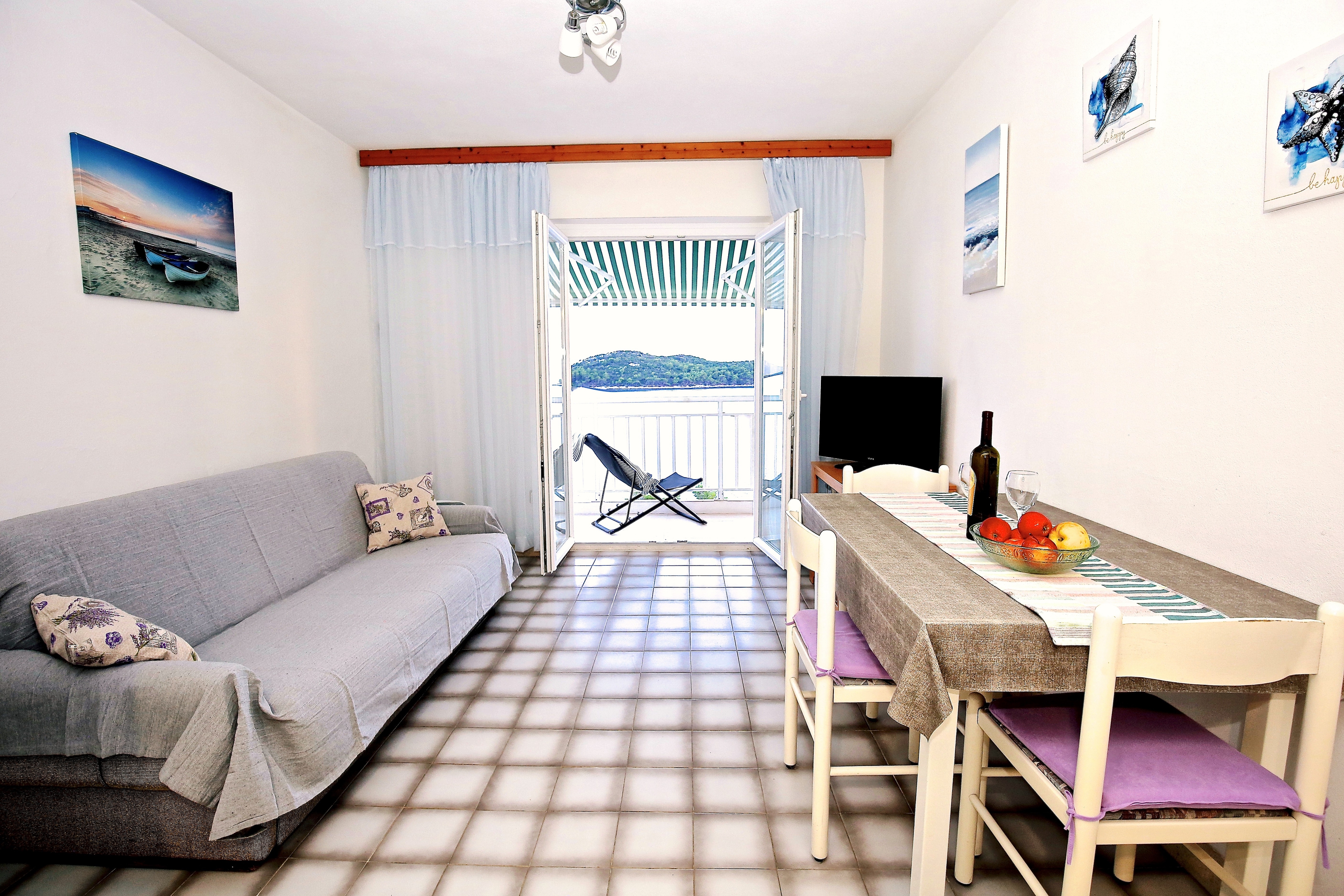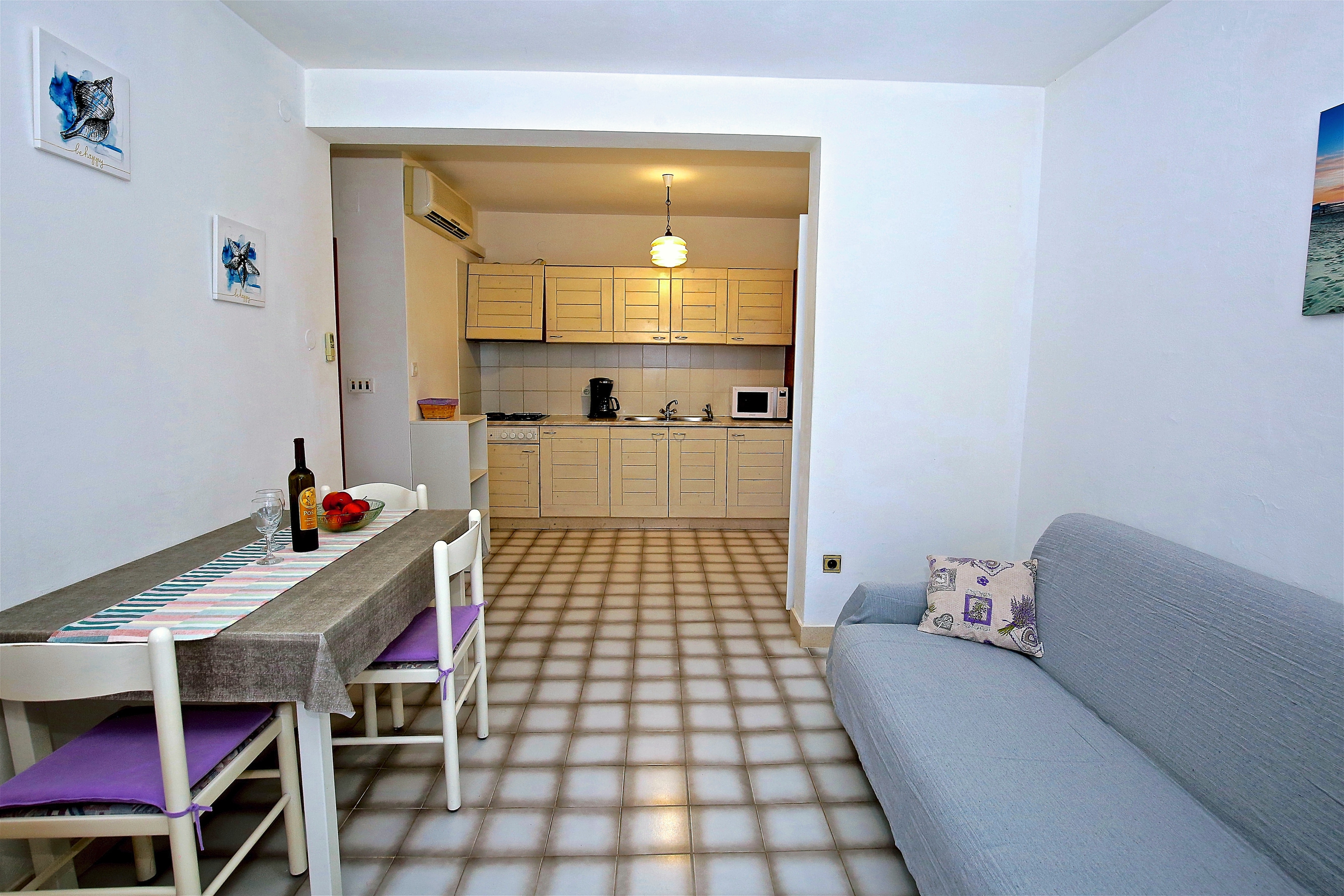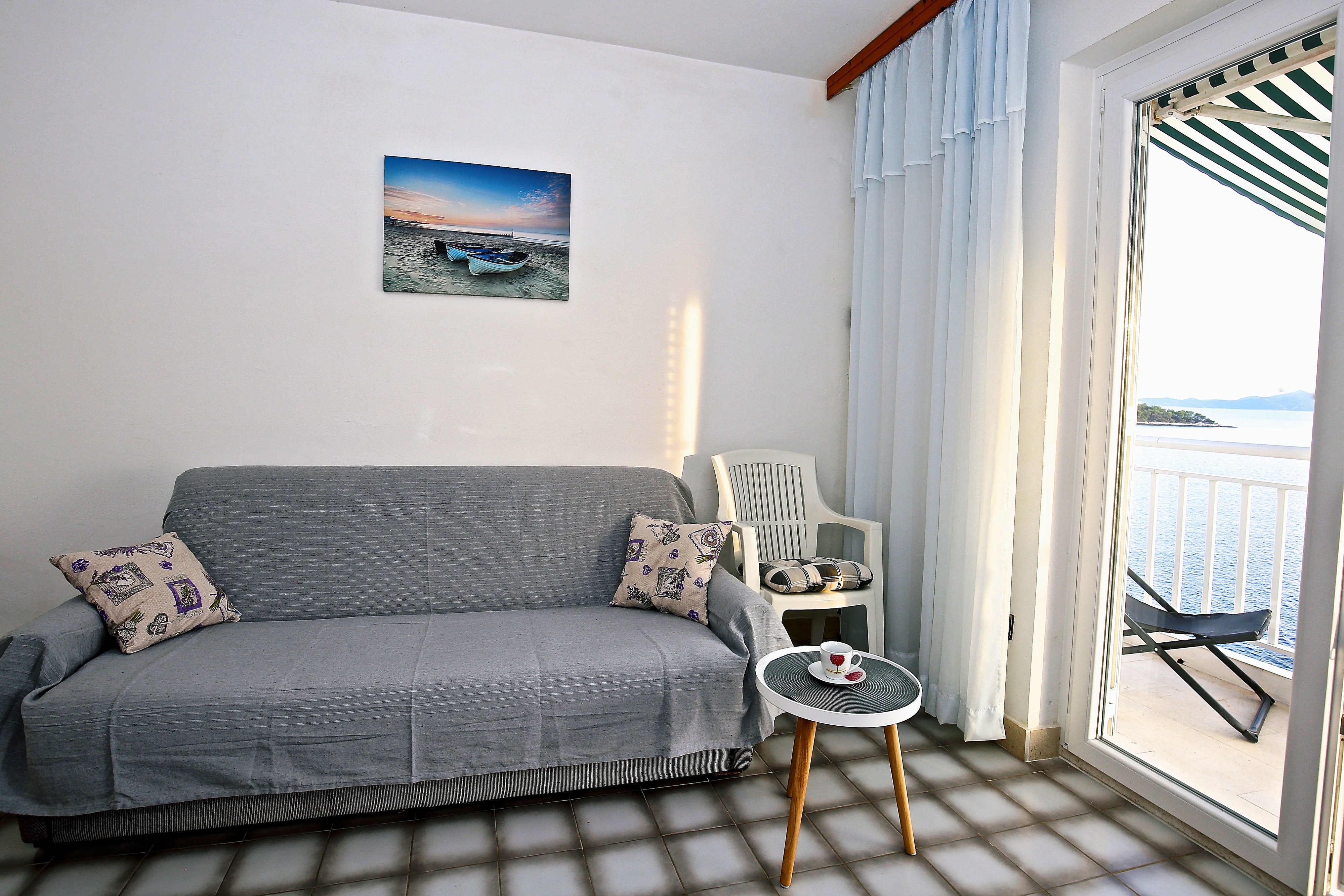 Apartment can accommodate 3 guests. Beds are situated in 1 sleeping rooms, but also in the dining room, within 28m2. Guests can use a private balcony to enjoy the warm summer evenings. The apartment offers the sea view. Food can be prepared using barbecue which is shared with other guests too. This accommodation unit welcomes pets at an additional charge. For the booked accommodation unit the deposit is paid directly to the owner upon check-in (deposit amount is displayed on the website) INCLUDED IN THE PRICE: tourist tax, final cleaning, air-conditioning, parking, internet, laundry, boat mooring, baby cot, iron, ironing board. OBLIGATORY ADDITIONAL COSTS: deposit (€100.00 one-time payment), short stay fee (surcharge depending on a number of booked nights: 30% - 1, 20% - 2, 10% - 3). OPTIONAL ADDITIONAL COSTS: pets (€7.00 per night). The availability of additional services for your chosen dates of stay, as well as their prices (if none are listed) must be checked ahead of time. Any additional services not shown in the price calculation are payable directly to the property owner and only if used by the visitor. Discounts to the base price: free day 14=13 (for reservations of 14 or more days you get one free day for the stay until 31122026).