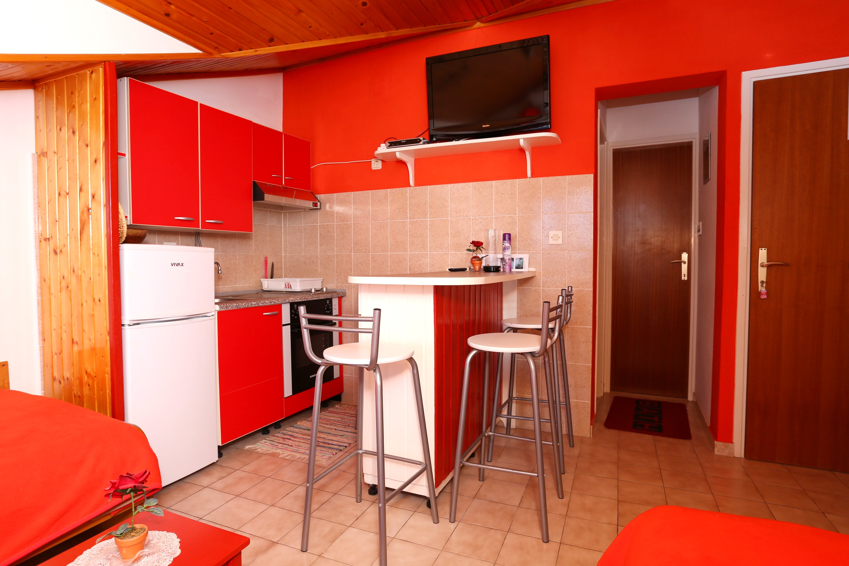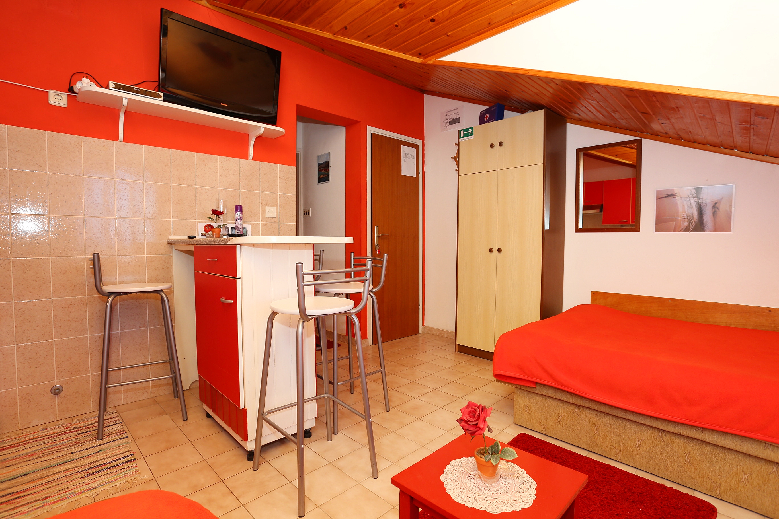 Apartment can accommodate 4 guests. Beds are situated in 1 sleeping rooms, but also in the living room, within 29m2. Guests can use a private terrace to enjoy the warm summer evenings. The apartment offers the sea view. Food can be prepared using barbecue which is shared with other guests too. This accommodation unit welcomes pets at an additional charge. INCLUDED IN THE PRICE: tourist tax, final cleaning, air-conditioning, parking, internet, laundry, boat mooring, baby cot, iron, ironing board, hairdryer, sunchairs. OBLIGATORY ADDITIONAL COSTS: short stay fee (surcharge depending on a number of booked nights: 30% - 1, 20% - 2, 10% - 3). OPTIONAL ADDITIONAL COSTS: pets (€9.00 per night), additional bed (€7.00 per night). The availability of additional services for your chosen dates of stay, as well as their prices (if none are listed) must be checked ahead of time. Any additional services not shown in the price calculation are payable directly to the property owner and only if used by the visitor. Discounts to the base price: free day 21=19 (for reservations of 21 or more days you get 2 free days for the stay until 31122026).