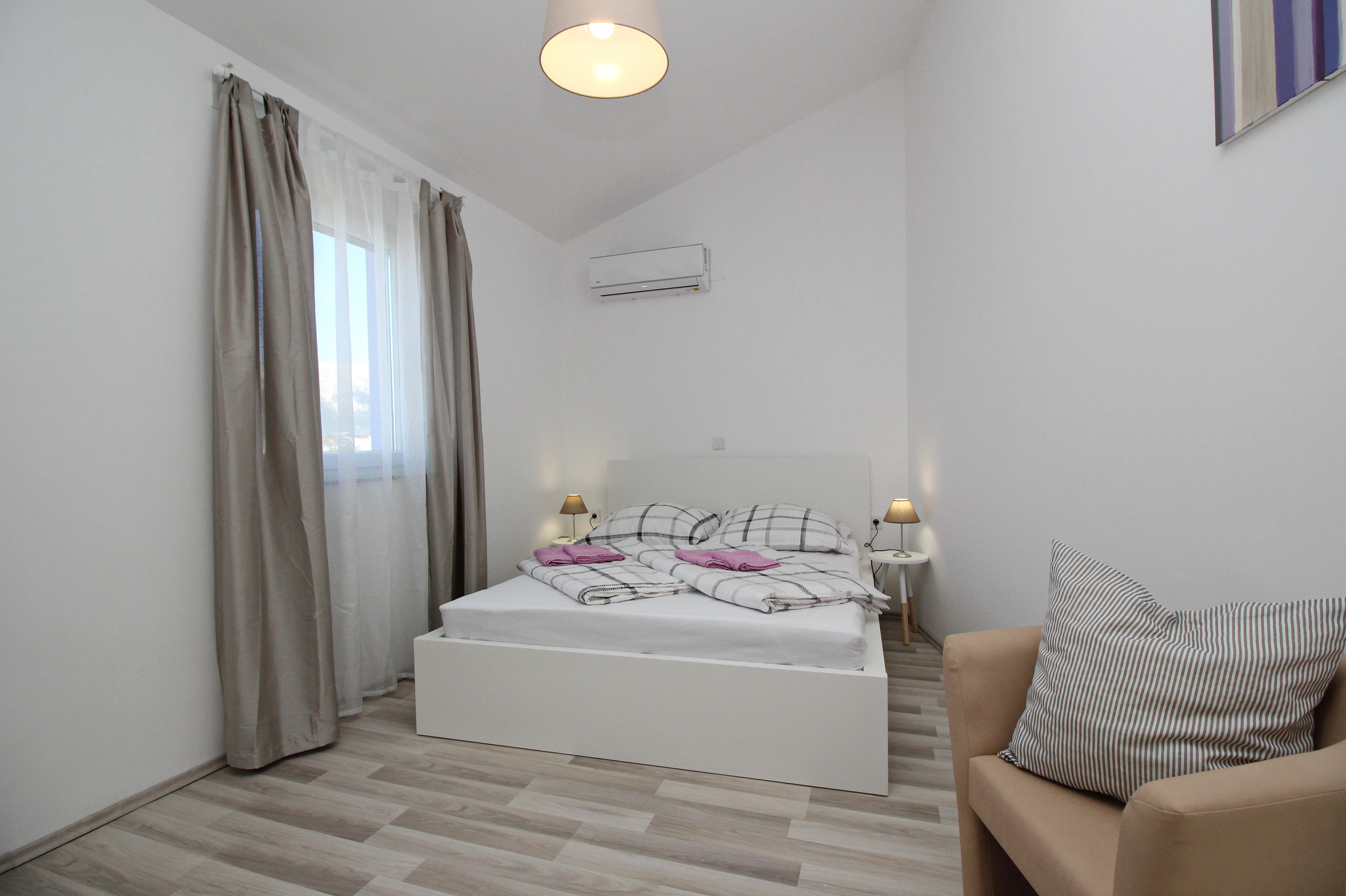Apartment can accommodate 6 guests. Beds are situated in 2 sleeping rooms, but also in the living room, within 60m2. Guests can use a private terrace to enjoy the warm summer evenings. The apartment offers the sea view. This accommodation unit welcomes pets at an additional charge. INCLUDED IN THE PRICE: tourist tax, final cleaning, air-conditioning, parking, internet. OBLIGATORY ADDITIONAL COSTS: short stay fee (surcharge depending on a number of booked nights: 30% - 1, 20% - 2, 10% - 3). OPTIONAL ADDITIONAL COSTS: pets (€15.00 per night). The availability of additional services for your chosen dates of stay, as well as their prices (if none are listed) must be checked ahead of time. Any additional services not shown in the price calculation are payable directly to the property owner and only if used by the visitor.