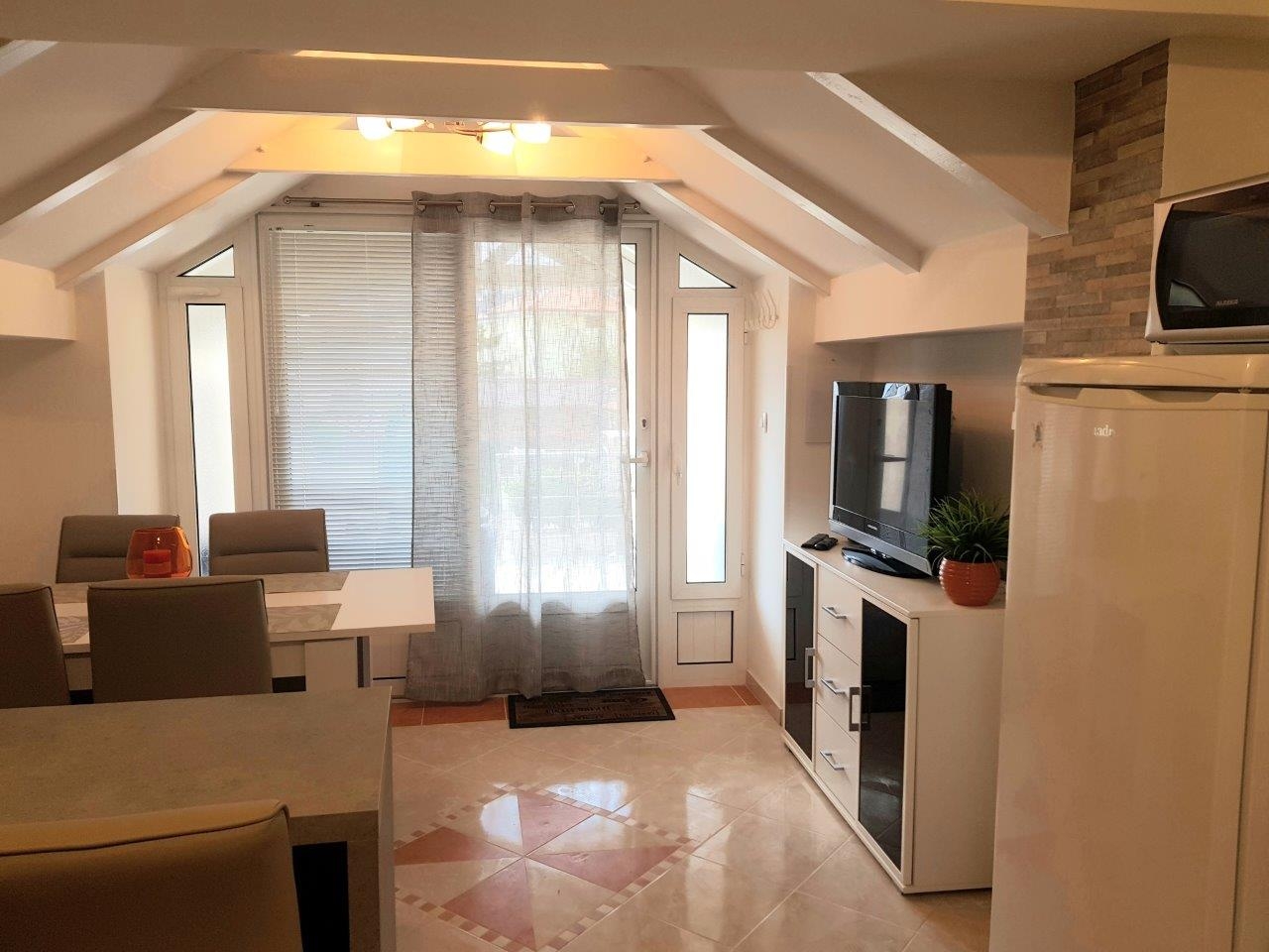 Apartment can accommodate 5 guests. Beds are situated in 2 sleeping rooms, within 47m2. Guests can use a private terrace to enjoy the warm summer evenings. Food can be prepared using barbecue which is shared with other guests too. INCLUDED IN THE PRICE: tourist tax, final cleaning, air-conditioning, central heating, parking, internet, iron, ironing board, hairdryer. OBLIGATORY ADDITIONAL COSTS: short stay fee (surcharge depending on a number of booked nights: 30% - 1, 20% - 2, 10% - 3). The availability of additional services for your chosen dates of stay, as well as their prices (if none are listed) must be checked ahead of time. Any additional services not shown in the price calculation are payable directly to the property owner and only if used by the visitor.