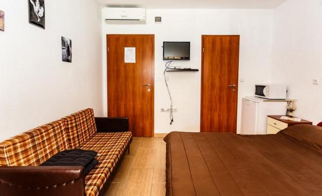 Studio flat can accommodate 2 guests. Beds are situated in 1 sleeping rooms, within 16m2. Guests can use a private balcony to enjoy the warm summer evenings. Food can be prepared using barbecue which is shared with other guests too. INCLUDED IN THE PRICE: tourist tax, final cleaning, air-conditioning, parking, internet, baby cot, iron, ironing board, hairdryer, sunshade. OBLIGATORY ADDITIONAL COSTS: short stay fee (surcharge depending on a number of booked nights: 30% - 1, 20% - 2, 10% - 3). The availability of additional services for your chosen dates of stay, as well as their prices (if none are listed) must be checked ahead of time. Any additional services not shown in the price calculation are payable directly to the property owner and only if used by the visitor.