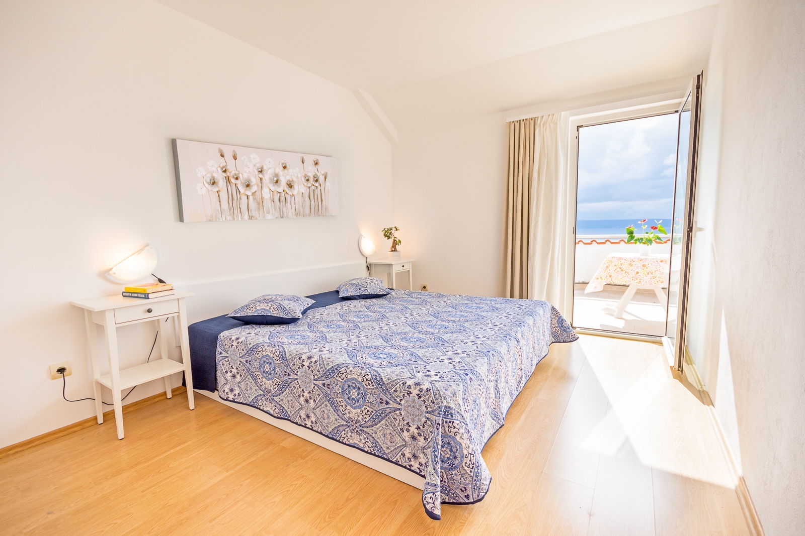 Apartment can accommodate 5 guests. Beds are situated in 2 sleeping rooms, but also in the dining room, within 59m2. Guests can use a private terrace to enjoy the warm summer evenings. The apartment offers the sea view. Food can be prepared using barbecue which is shared with other guests too. INCLUDED IN THE PRICE: tourist tax, final cleaning, air-conditioning, parking, internet, baby cot, iron, hairdryer. OBLIGATORY ADDITIONAL COSTS: short stay fee (surcharge depending on a number of booked nights: 30% - 1, 20% - 2, 10% - 3). OPTIONAL ADDITIONAL COSTS: laundry (€5.00 washing), additional bed (€5.00 per night). The availability of additional services for your chosen dates of stay, as well as their prices (if none are listed) must be checked ahead of time. Any additional services not shown in the price calculation are payable directly to the property owner and only if used by the visitor. Discounts to the base price: free day 14=13 (for reservations of 14 or more days you get one free day for the stay until 31122026).
