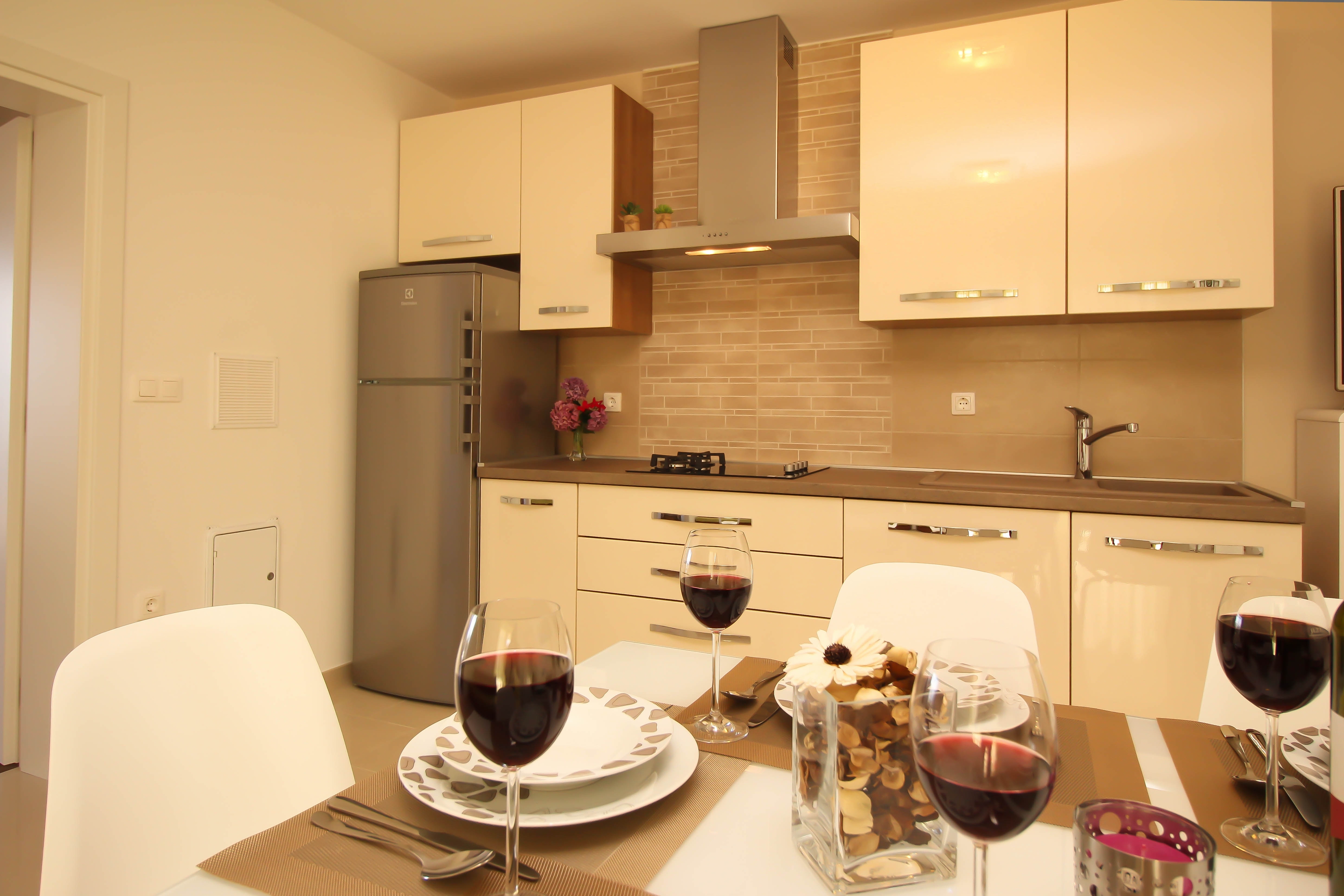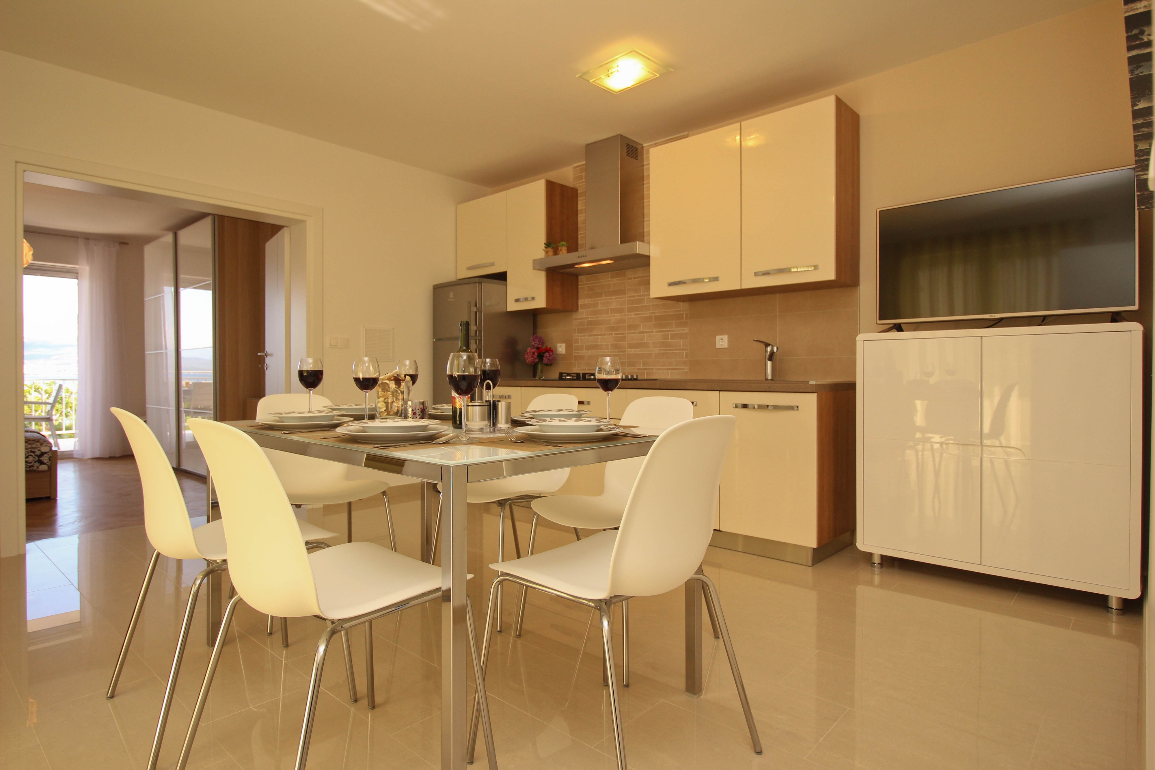 Apartment can accommodate 5 guests. Beds are situated in 2 sleeping rooms, but also in the dining room, within 58m2. Guests can use a private terrace to enjoy the warm summer evenings. The apartment offers the sea view. Food can be prepared using barbecue which is shared with other guests too. INCLUDED IN THE PRICE: tourist tax, final cleaning, air-conditioning, parking, internet, laundry, iron, ironing board, hairdryer. The availability of additional services for your chosen dates of stay, as well as their prices (if none are listed) must be checked ahead of time. Any additional services not shown in the price calculation are payable directly to the property owner and only if used by the visitor.