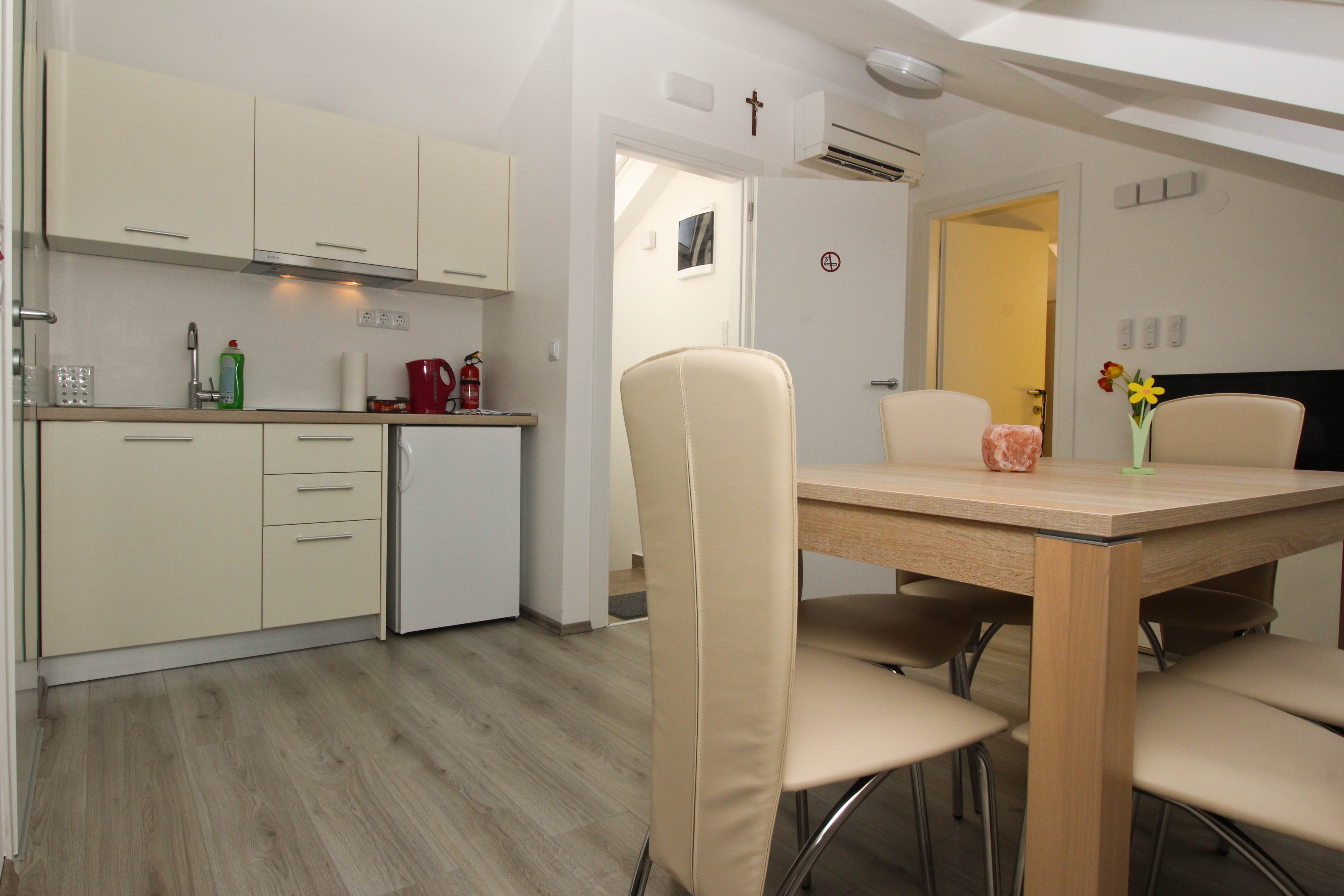 Apartment can accommodate 6 guests. Beds are situated in 2 sleeping rooms, but also in the dining room, within 50m2. Food can be prepared using barbecue which is shared with other guests too. There is no balcony or terrace in the reserved accommodation unit. INCLUDED IN THE PRICE: tourist tax, final cleaning, air-conditioning, parking, internet. The availability of additional services for your chosen dates of stay, as well as their prices (if none are listed) must be checked ahead of time. Any additional services not shown in the price calculation are payable directly to the property owner and only if used by the visitor.