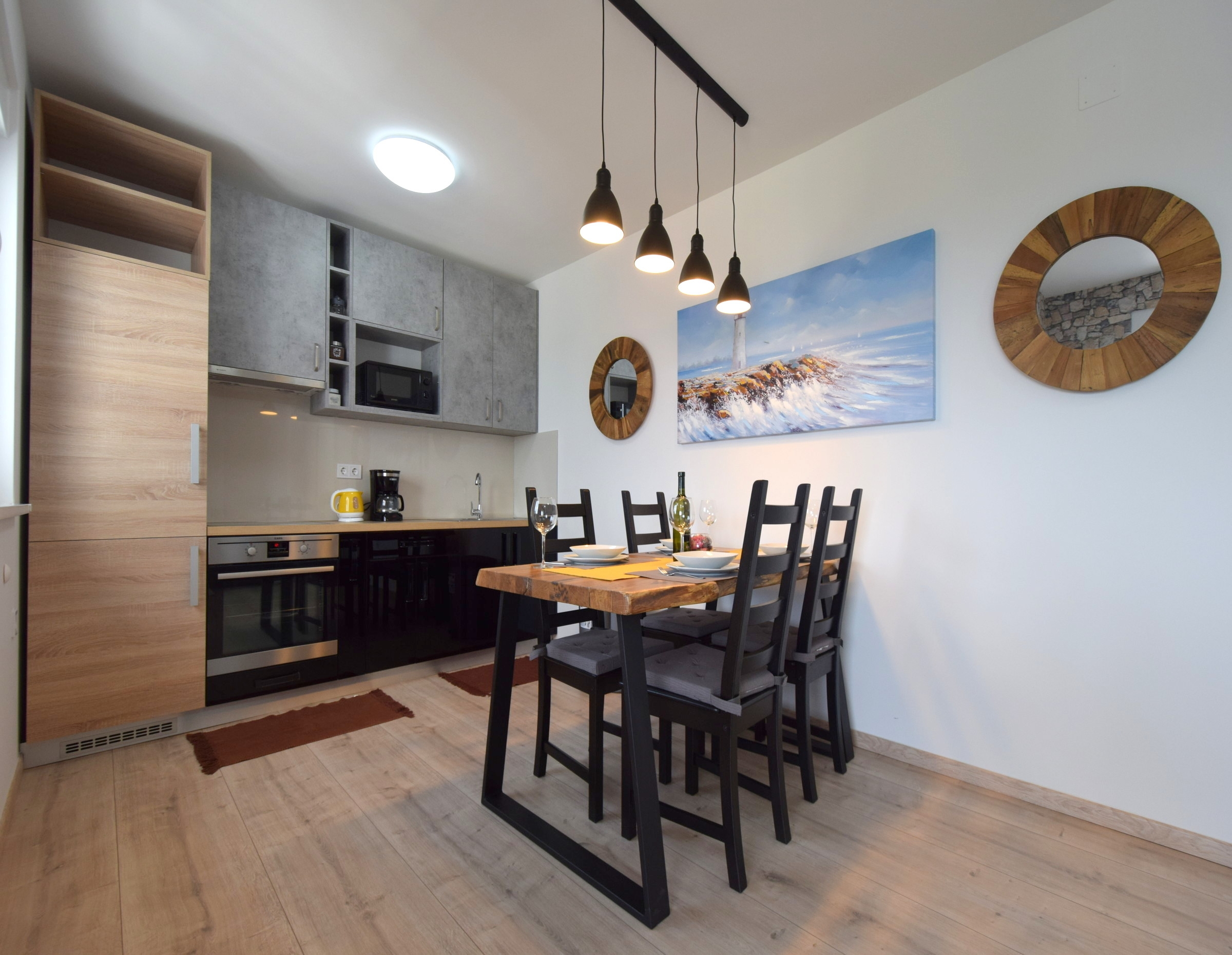Apartment can accommodate 4 guests. Beds are situated in 2 sleeping rooms, within 75m2. Guests can use a private terrace to enjoy the warm summer evenings. The apartment offers the sea view. INCLUDED IN THE PRICE: tourist tax, final cleaning, air-conditioning, parking, internet, iron, ironing board, hairdryer. OBLIGATORY ADDITIONAL COSTS: short stay fee (surcharge depending on a number of booked nights: 30% - 1, 20% - 2, 10% - 3). The availability of additional services for your chosen dates of stay, as well as their prices (if none are listed) must be checked ahead of time. Any additional services not shown in the price calculation are payable directly to the property owner and only if used by the visitor.