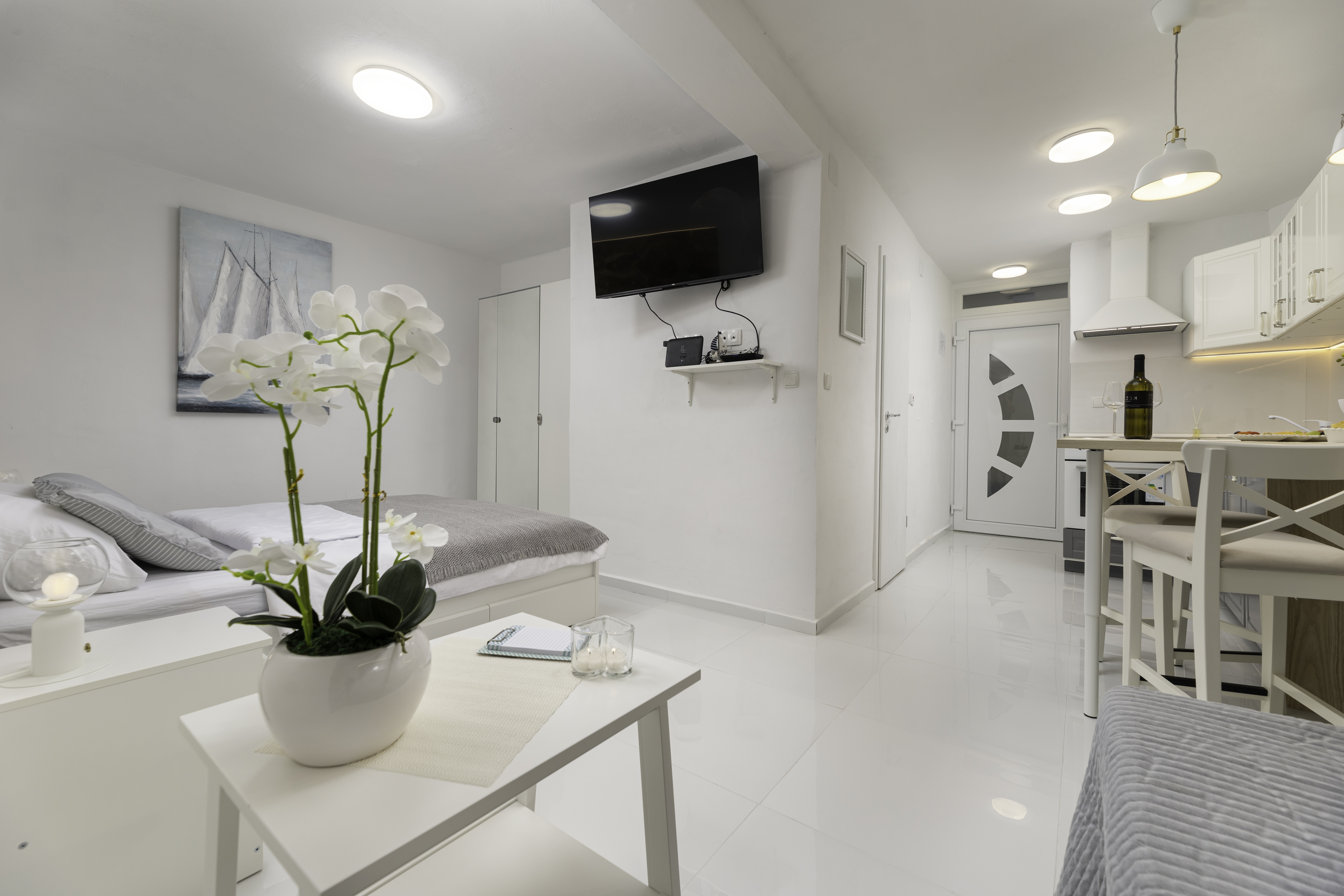Studio flat can accommodate 2 guests. Beds are situated in 1 sleeping rooms, within 25m2. Guests can use a private terrace to enjoy the warm summer evenings. INCLUDED IN THE PRICE: tourist tax, final cleaning, air-conditioning, central heating, parking, internet, iron, hairdryer. The availability of additional services for your chosen dates of stay, as well as their prices (if none are listed) must be checked ahead of time. Any additional services not shown in the price calculation are payable directly to the property owner and only if used by the visitor. Discounts to the base price: free day 14=13 (for reservations of 14 or more days you get one free day for the stay until 31122026).