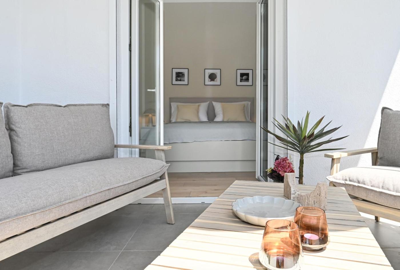 One-Bedroom Apartment. This air-conditioned apartment features 1 living room, 1 separate bedroom and 1 bathroom with a shower. The well-fitted kitchen has a stovetop, a refrigerator, a dishwasher and kitchenware. The apartment features a washing machine, a tea and coffee maker, a seating area as well as a balcony with sea views. The unit has 1 bed.