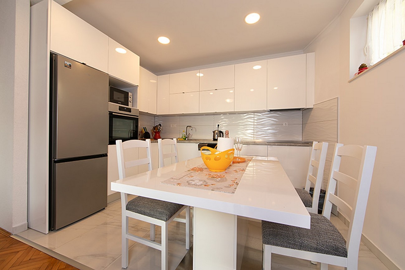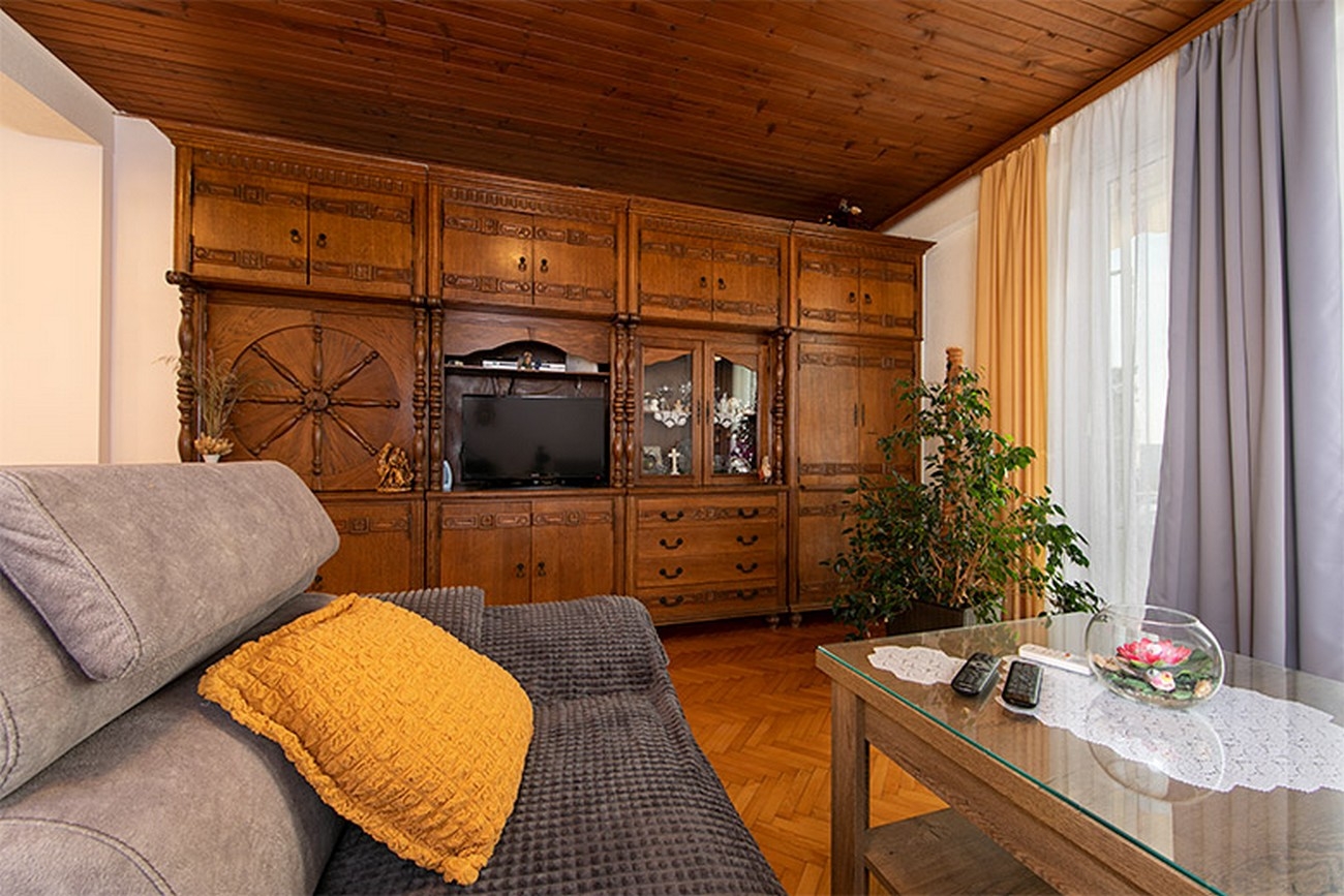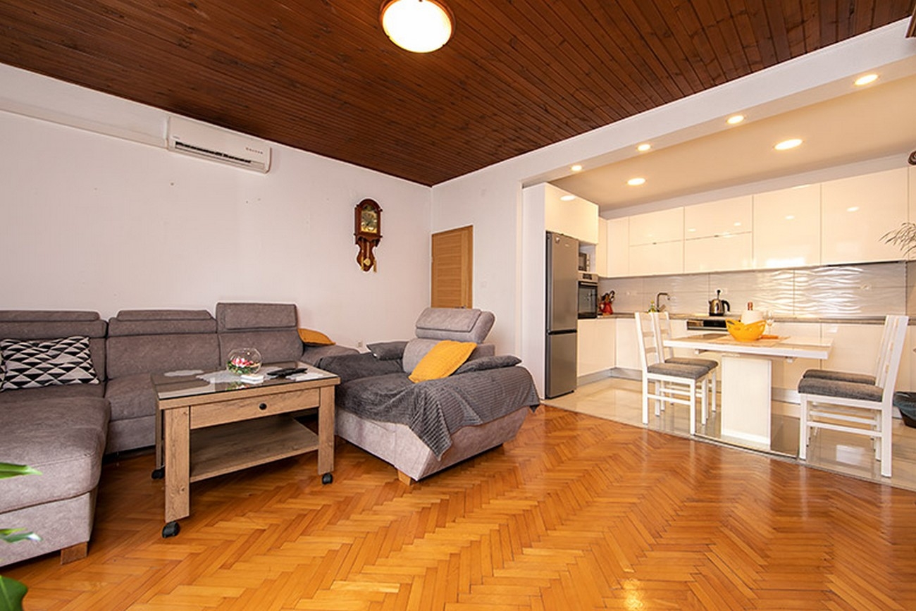 Apartment can accommodate 5 guests. Beds are situated in 1 sleeping rooms, but also in the living room, within 59m2. Guests can use a private balcony to enjoy the warm summer evenings. The apartment offers the sea view. Food can be prepared using barbecue which is shared with other guests too. INCLUDED IN THE PRICE: tourist tax, final cleaning, air-conditioning, parking, internet, ironing board. OBLIGATORY ADDITIONAL COSTS: short stay fee (surcharge depending on a number of booked nights: 30% - 1, 20% - 2, 10% - 3). The availability of additional services for your chosen dates of stay, as well as their prices (if none are listed) must be checked ahead of time. Any additional services not shown in the price calculation are payable directly to the property owner and only if used by the visitor. Discounts to the base price: free day 14=13 (for reservations of 14 or more days you get one free day for the stay until 31122026).