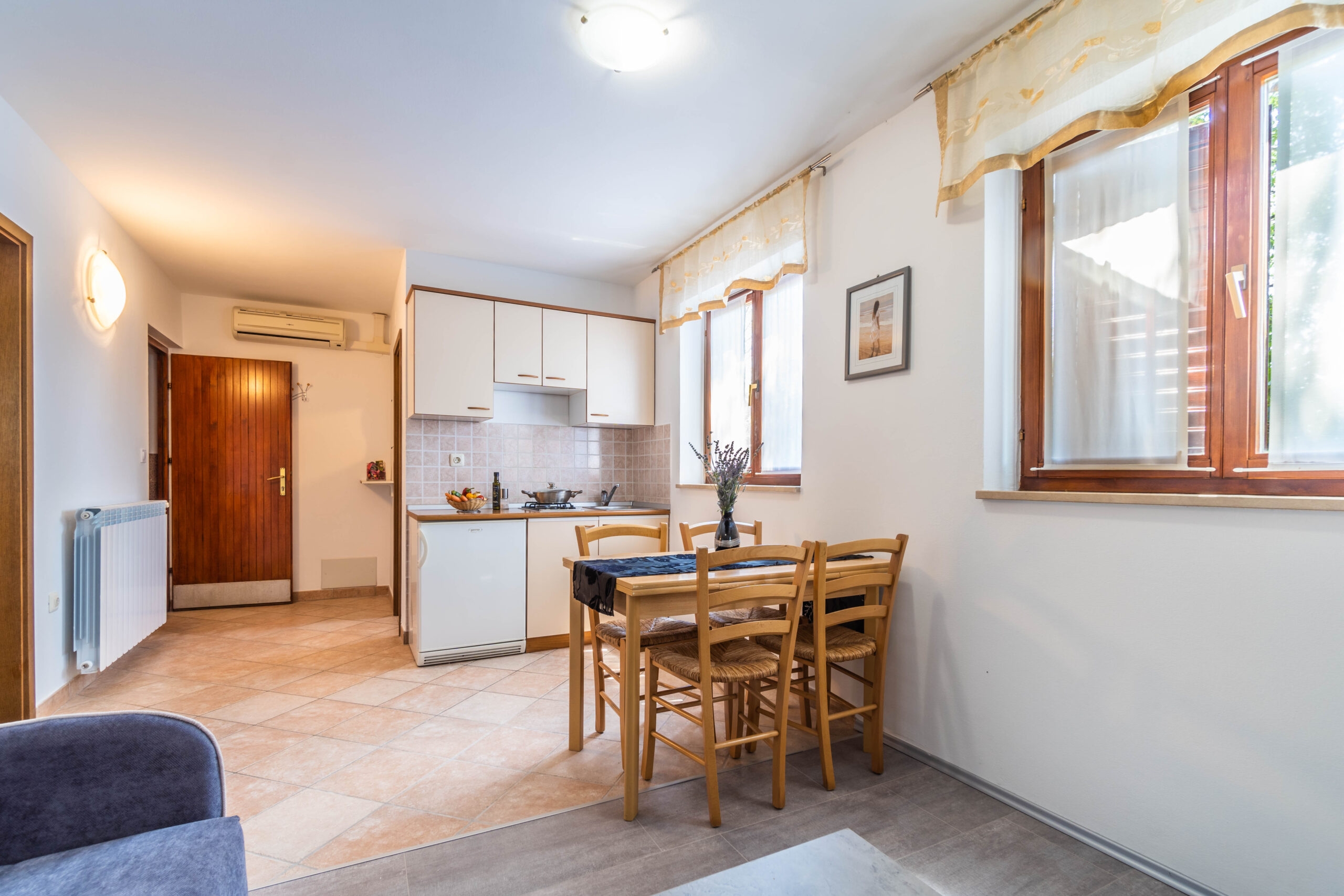 Apartment can accommodate 4 guests. Beds are situated in 1 sleeping rooms, but also in the living room, within 29m2. Guests can use a private terrace to enjoy the warm summer evenings. Food can be prepared using barbecue which is shared with other guests too. Shared pool is on disposal during stay. This accommodation unit welcomes pets at an additional charge. Some of the rooms of the accommodation unit are not connected with the rest of the unit. INCLUDED IN THE PRICE: tourist tax, final cleaning, air-conditioning, pool, parking, internet, iron, ironing board, hairdryer. OBLIGATORY ADDITIONAL COSTS: short stay fee (surcharge depending on a number of booked nights: 30% - 1, 20% - 2, 10% - 3). OPTIONAL ADDITIONAL COSTS: central heating (€8.00 per night), laundry (€5.00 washing), pets (€10.00 per night). The availability of additional services for your chosen dates of stay, as well as their prices (if none are listed) must be checked ahead of time. Any additional services not shown in the price calculation are payable directly to the property owner and only if used by the visitor.