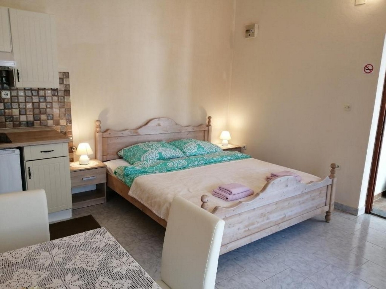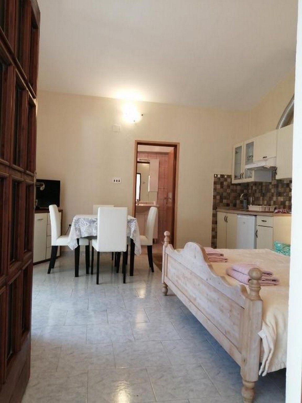 Studio flat can accommodate 2 guests. Beds are situated in 1 sleeping rooms, within 24m2. Guests can use a private terrace to enjoy the warm summer evenings. Food can be prepared using barbecue which is shared with other guests too. This accommodation unit welcomes pets at an additional charge. For the booked accommodation unit the deposit is paid directly to the owner upon check-in (deposit amount is displayed on the website) INCLUDED IN THE PRICE: tourist tax, final cleaning, air-conditioning, parking, internet, hairdryer. OBLIGATORY ADDITIONAL COSTS: deposit (€100.00 one-time payment). OPTIONAL ADDITIONAL COSTS: pets (€15.00 per night). The availability of additional services for your chosen dates of stay, as well as their prices (if none are listed) must be checked ahead of time. Any additional services not shown in the price calculation are payable directly to the property owner and only if used by the visitor. Discounts to the base price: free day 21=19 (for reservations of 21 or more days you get 2 free days for the stay until 31122026).