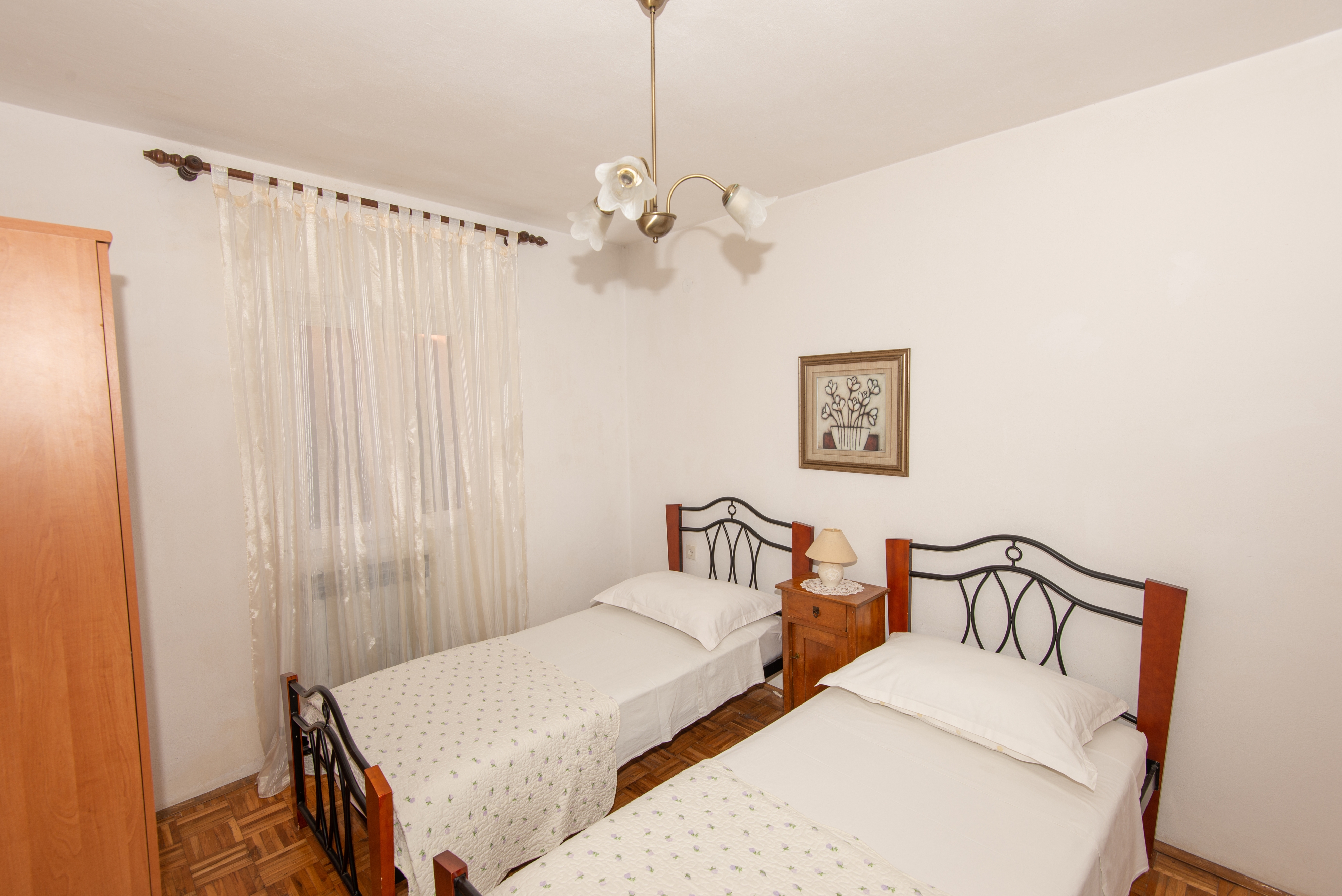 Apartment can accommodate 5 guests. Beds are situated in 3 sleeping rooms, within 92m2. Guests can use a private terrace to enjoy the warm summer evenings. The apartment offers the sea view. Food can be prepared using barbecue which is shared with other guests too. This accommodation unit welcomes pets at an additional charge. INCLUDED IN THE PRICE: tourist tax, final cleaning, air-conditioning, parking, internet, iron, ironing board, sunshade. OBLIGATORY ADDITIONAL COSTS: short stay fee (surcharge depending on a number of booked nights: 30% - 1, 20% - 2, 10% - 3). OPTIONAL ADDITIONAL COSTS: pets (€5.00 per night). The availability of additional services for your chosen dates of stay, as well as their prices (if none are listed) must be checked ahead of time. Any additional services not shown in the price calculation are payable directly to the property owner and only if used by the visitor.
