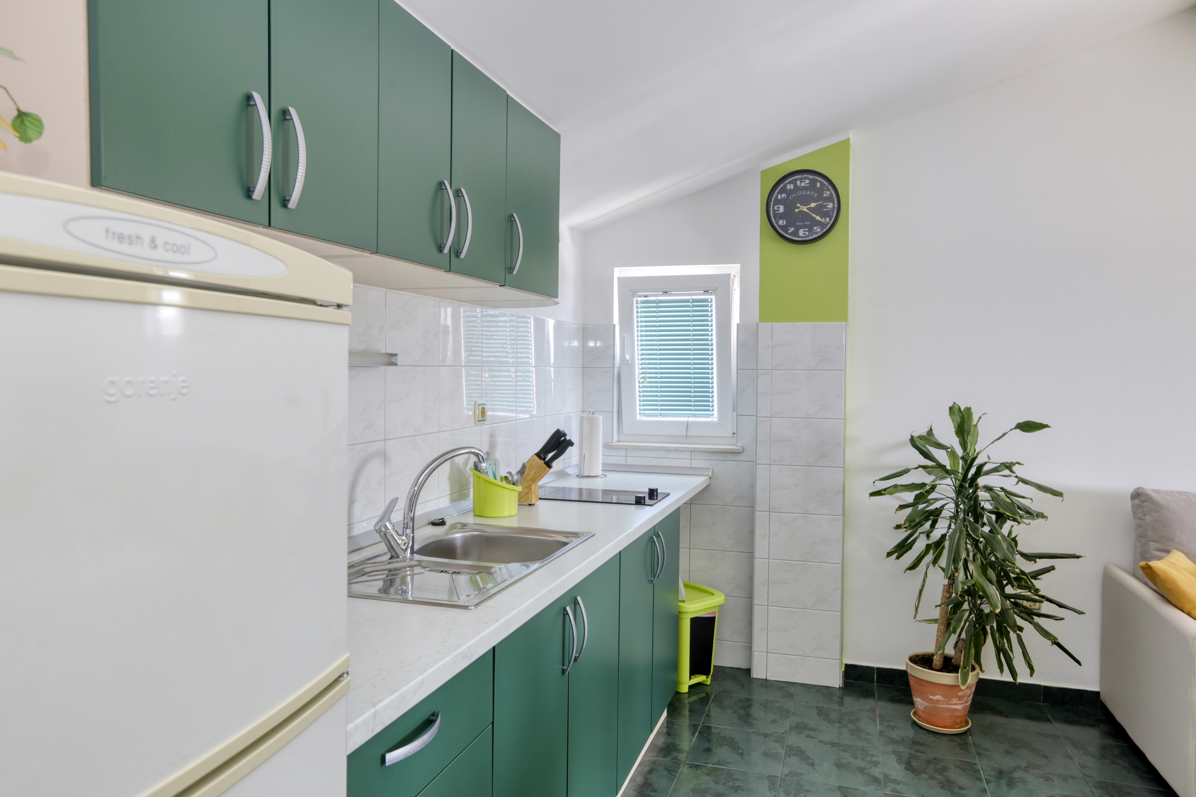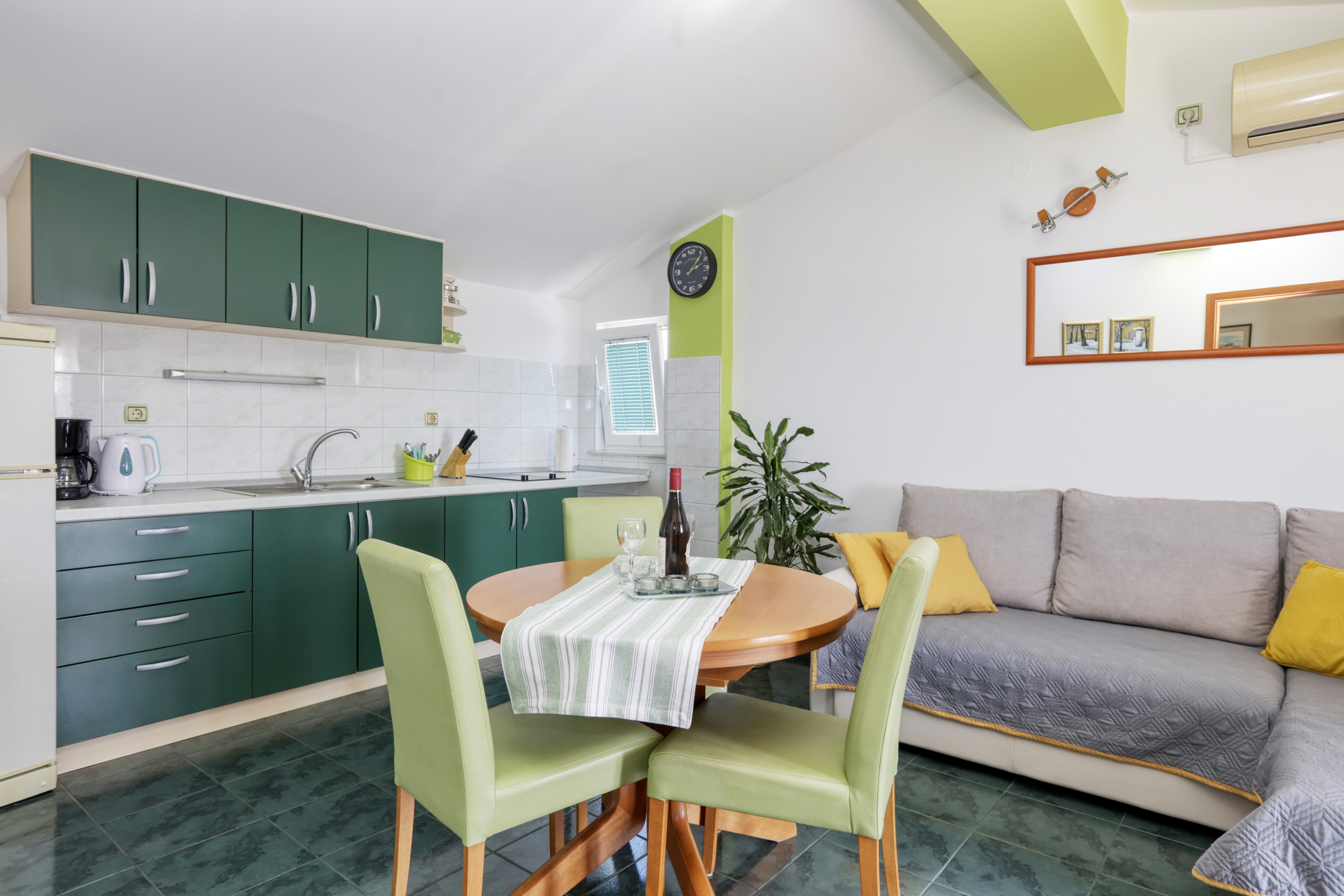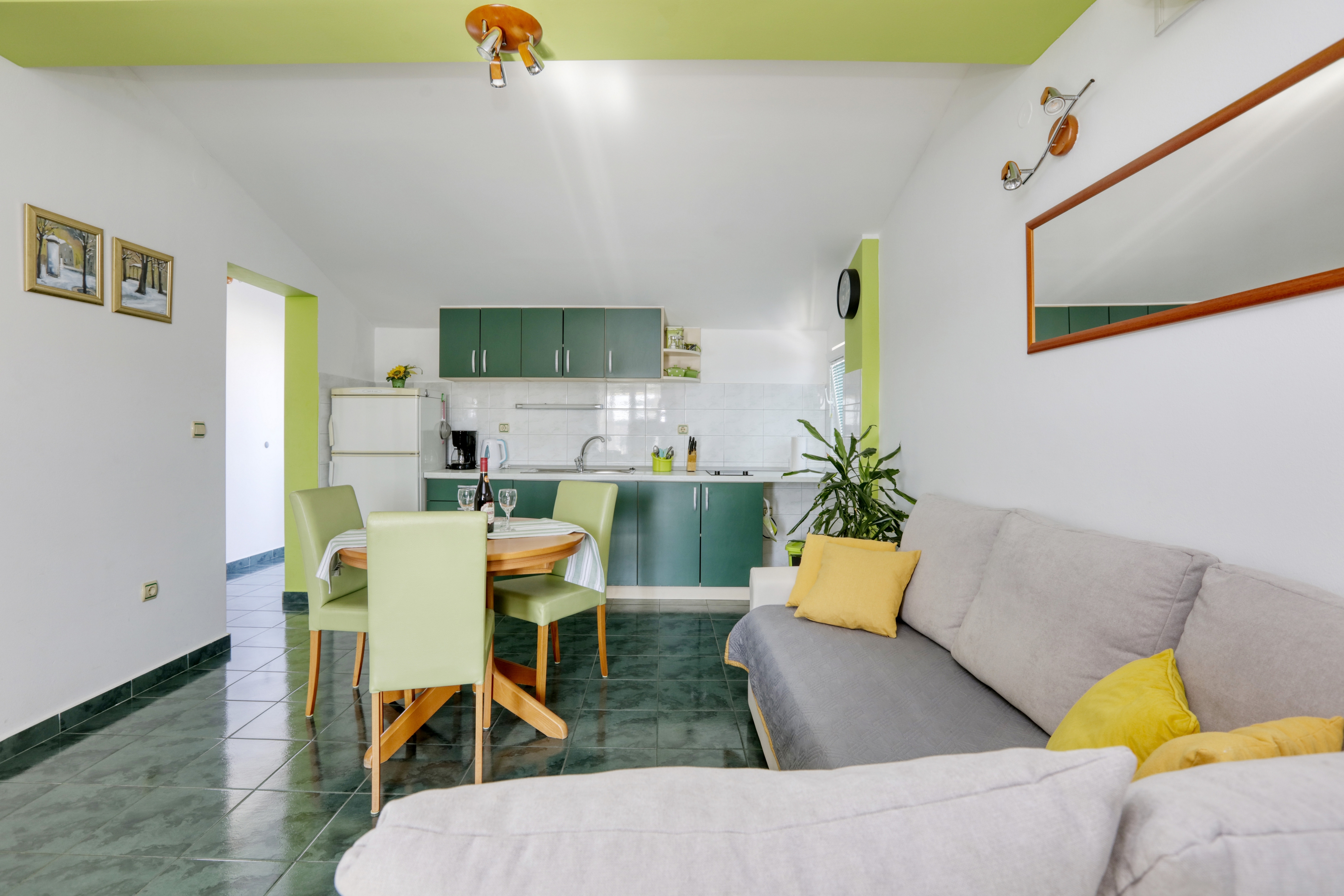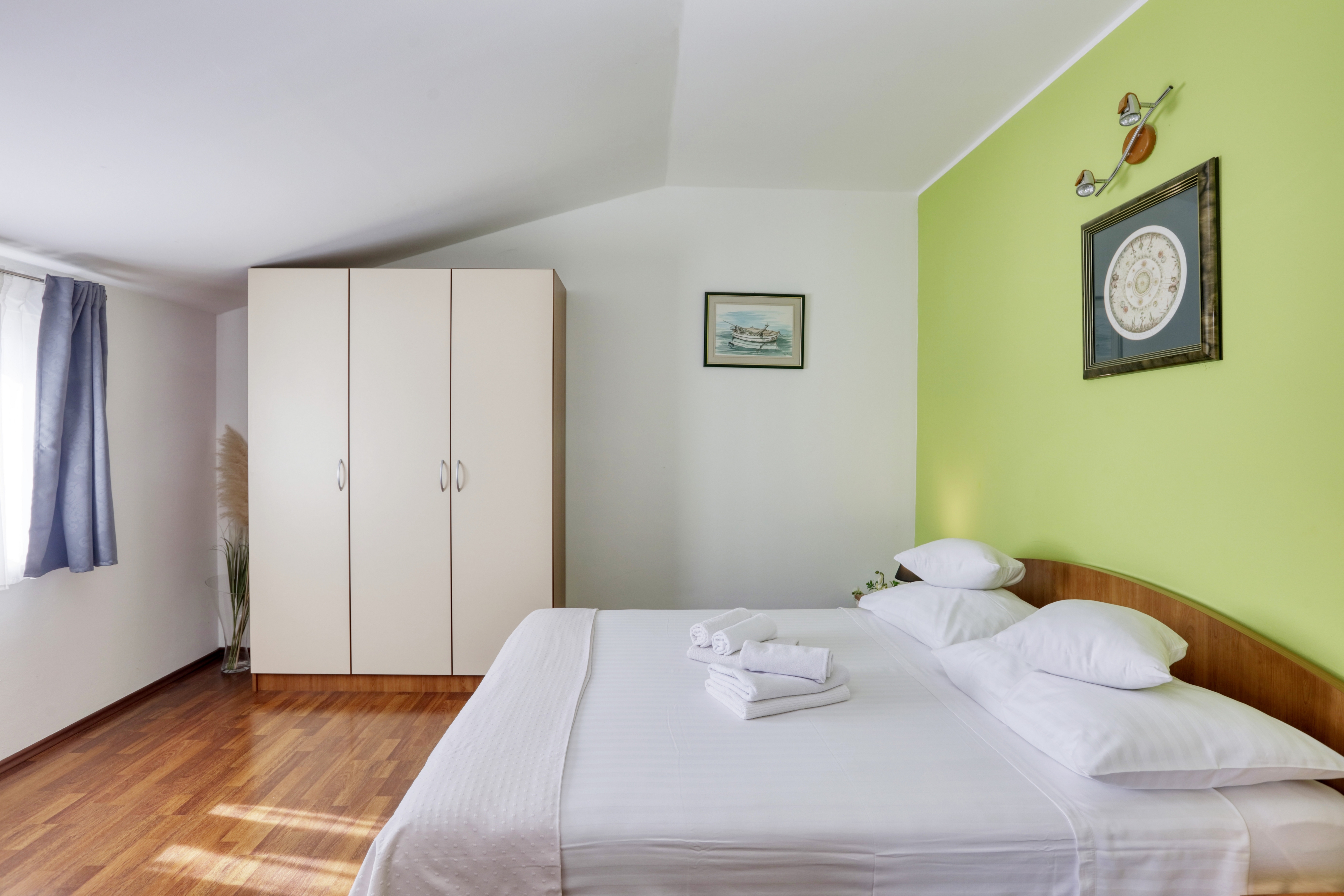Apartment can accommodate 2 guests. Beds are situated in 1 sleeping rooms, within 44m2. Guests can use a private terrace to enjoy the warm summer evenings. The apartment offers the sea view. Food can be prepared using barbecue which is shared with other guests too. This accommodation unit welcomes pets at an additional charge. INCLUDED IN THE PRICE: tourist tax, final cleaning, air-conditioning, parking, internet, baby cot, iron, ironing board, hairdryer, portable barbecue, 2 beds for children (included in the price). OBLIGATORY ADDITIONAL COSTS: short stay fee (surcharge depending on a number of booked nights: 30% - 1, 20% - 2, 10% - 3). OPTIONAL ADDITIONAL COSTS: laundry (€15.00 washing), pets (€10.00 per night). The availability of additional services for your chosen dates of stay, as well as their prices (if none are listed) must be checked ahead of time. Any additional services not shown in the price calculation are payable directly to the property owner and only if used by the visitor. Discounts to the base price: free day 28=25 (for stays of 28 days or more, we give you 3 days free of charge for the stay until 31122026).