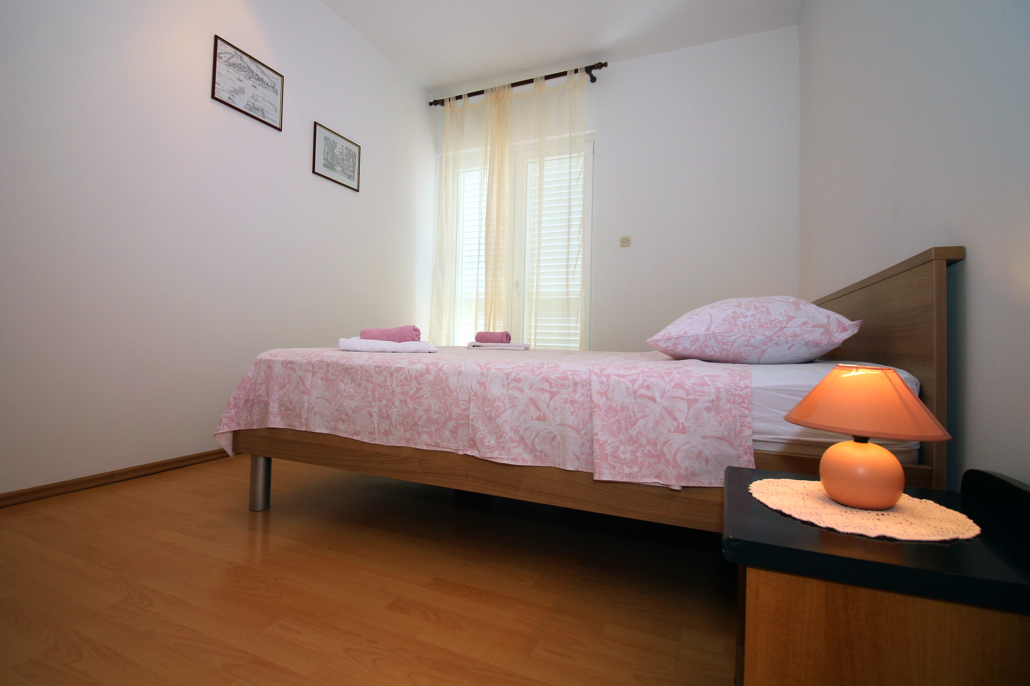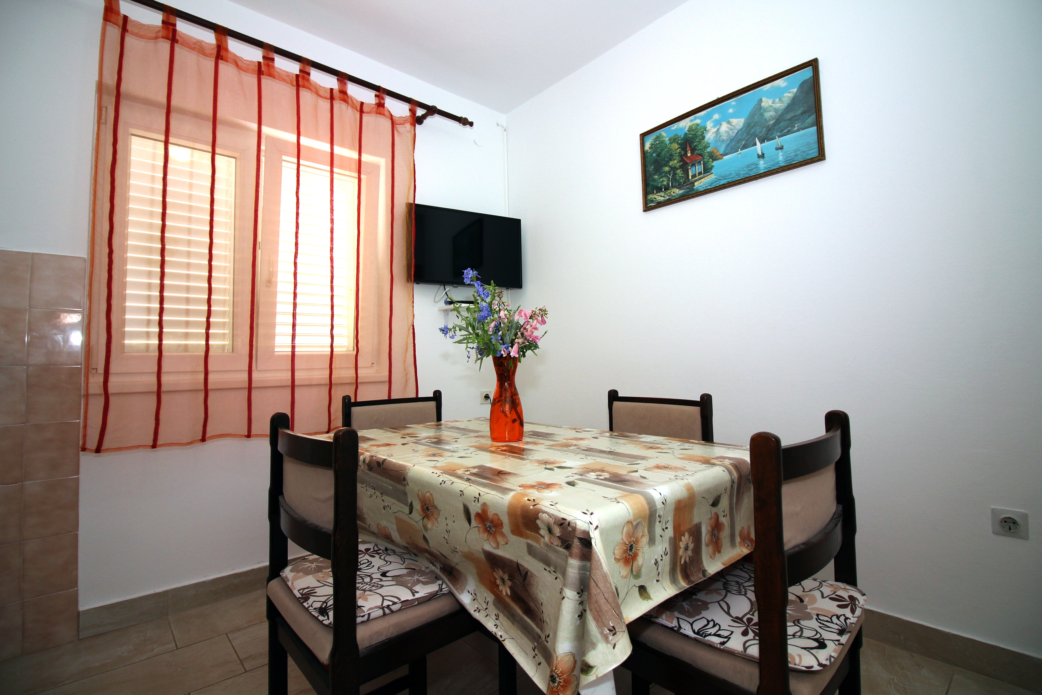 Apartment can accommodate 4 guests. Beds are situated in 2 sleeping rooms, within 39m2. Guests can use a private terrace to enjoy the warm summer evenings. The apartment offers the sea view. Food can be prepared using barbecue which is shared with other guests too. This accommodation unit welcomes pets at an additional charge. INCLUDED IN THE PRICE: tourist tax, final cleaning, air-conditioning, internet, boat mooring, iron, hairdryer. OBLIGATORY ADDITIONAL COSTS: short stay fee (surcharge depending on a number of booked nights: 30% - 1, 20% - 2, 10% - 3). OPTIONAL ADDITIONAL COSTS: pets (€5.00 per night). The availability of additional services for your chosen dates of stay, as well as their prices (if none are listed) must be checked ahead of time. Any additional services not shown in the price calculation are payable directly to the property owner and only if used by the visitor. Discounts to the base price: free day 14=13 (for reservations of 14 or more days you get one free day for the stay until 31122026).