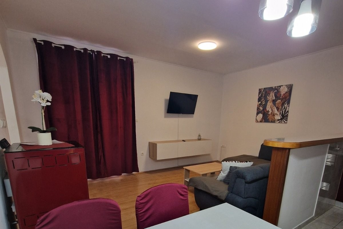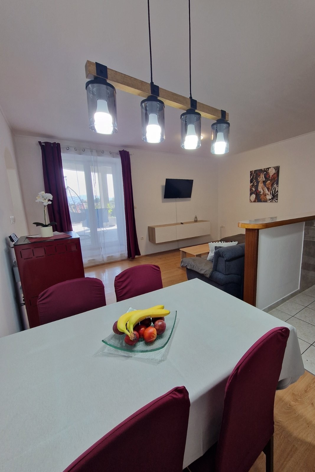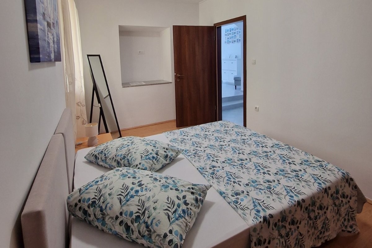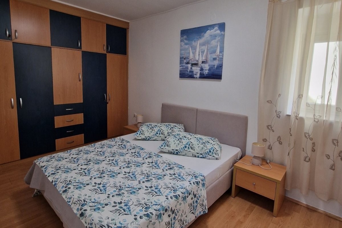 Apartment can accommodate 4 guests. Beds are situated in 2 sleeping rooms, within 62m2. Guests can use a private terrace to enjoy the warm summer evenings. The apartment offers the sea view. Food can be prepared using barbecue which is shared with other guests too. This accommodation unit welcomes pets at an additional charge. INCLUDED IN THE PRICE: tourist tax, final cleaning, air-conditioning, parking, internet, portable barbecue. OBLIGATORY ADDITIONAL COSTS: short stay fee (surcharge depending on a number of booked nights: 30% - 1, 20% - 2, 10% - 3). OPTIONAL ADDITIONAL COSTS: pets (€5.00 per night). The availability of additional services for your chosen dates of stay, as well as their prices (if none are listed) must be checked ahead of time. Any additional services not shown in the price calculation are payable directly to the property owner and only if used by the visitor.