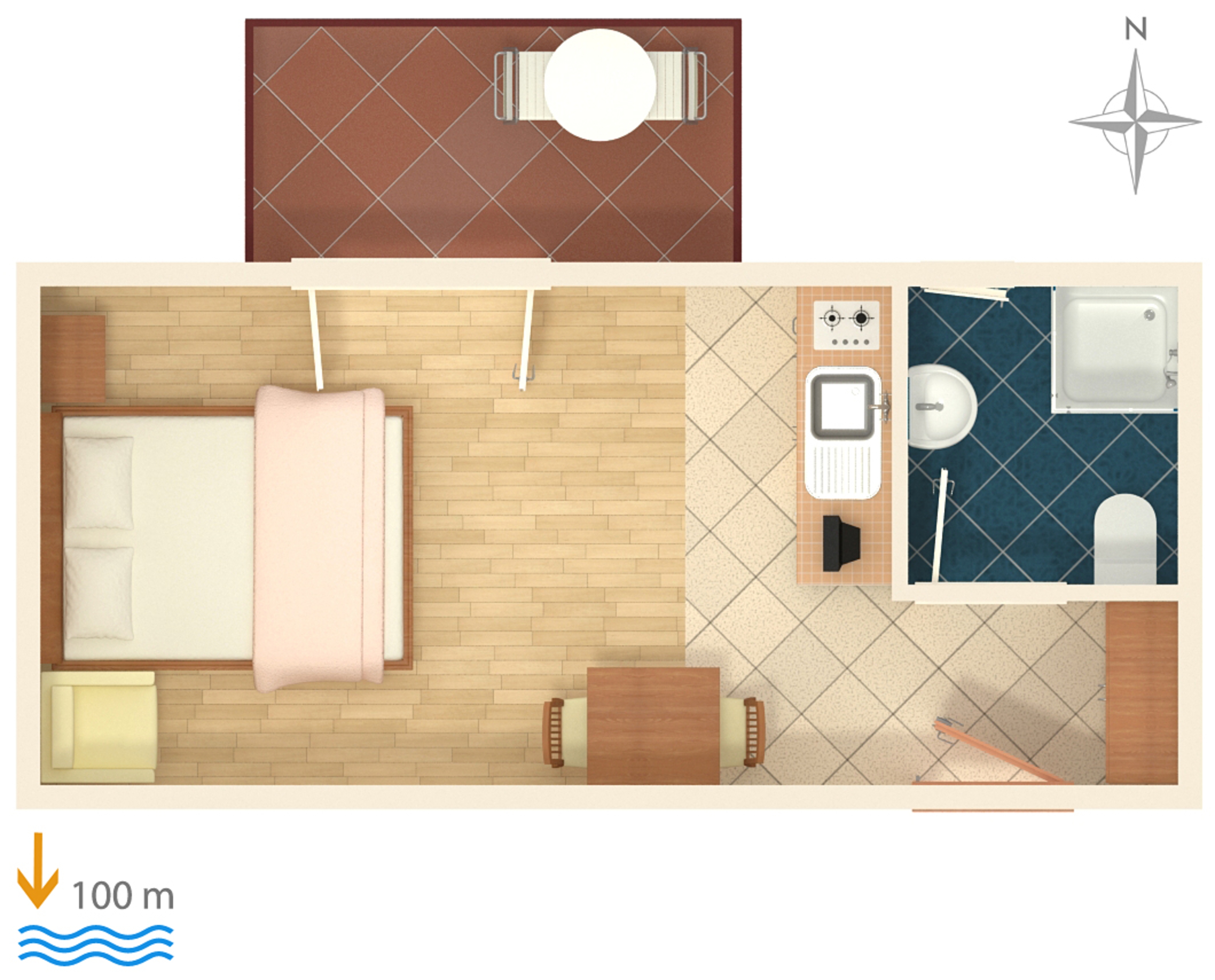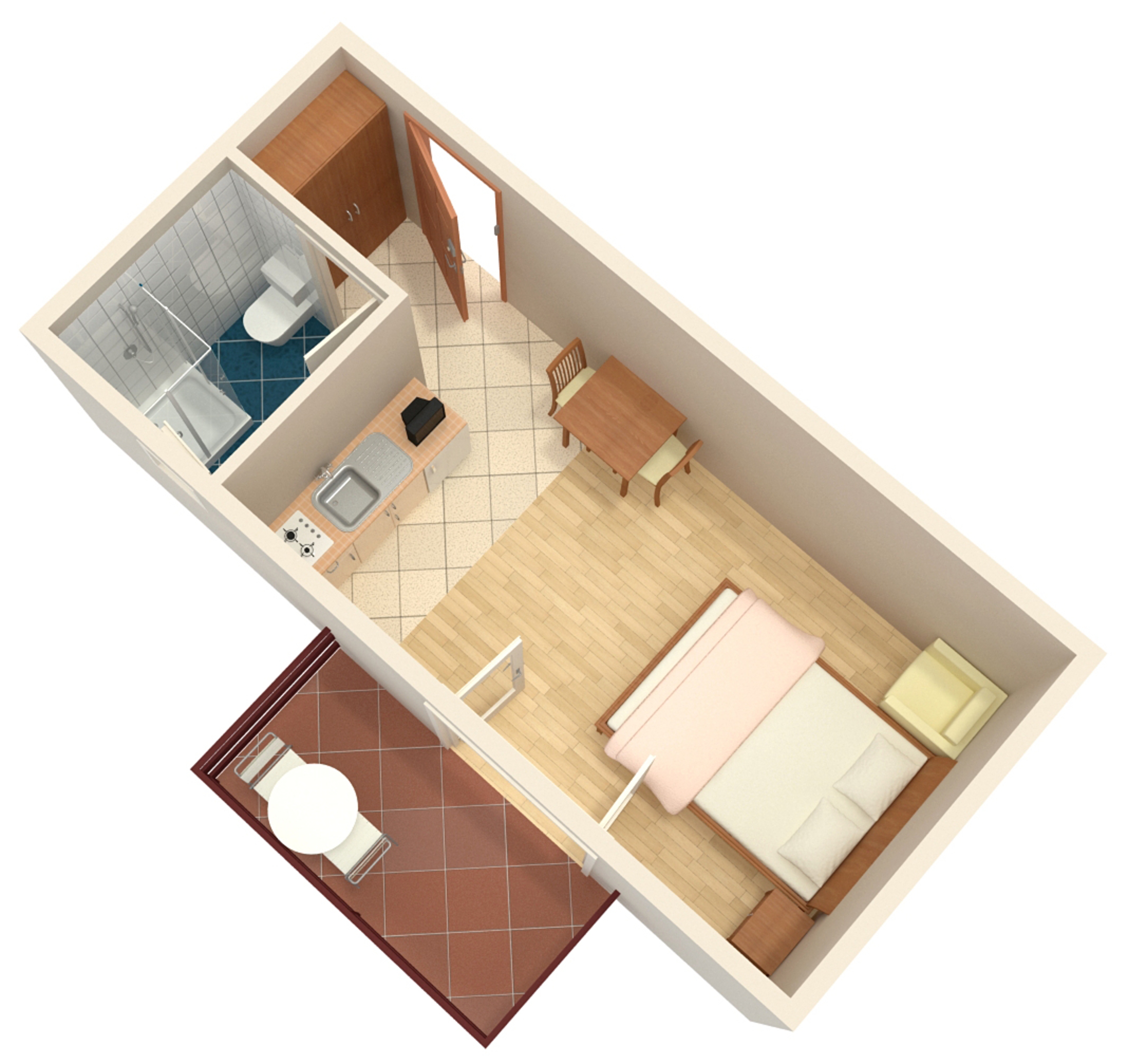 Studio flat can accommodate 2 guests. Beds are situated in 1 sleeping rooms, within 19m2. Guests can use a private balcony to enjoy the warm summer evenings. Food can be prepared using barbecue which is shared with other guests too. INCLUDED IN THE PRICE: tourist tax, final cleaning, air-conditioning, parking, internet. OBLIGATORY ADDITIONAL COSTS: short stay fee (surcharge depending on a number of booked nights: 30% - 1, 20% - 2, 10% - 3). The availability of additional services for your chosen dates of stay, as well as their prices (if none are listed) must be checked ahead of time. Any additional services not shown in the price calculation are payable directly to the property owner and only if used by the visitor.