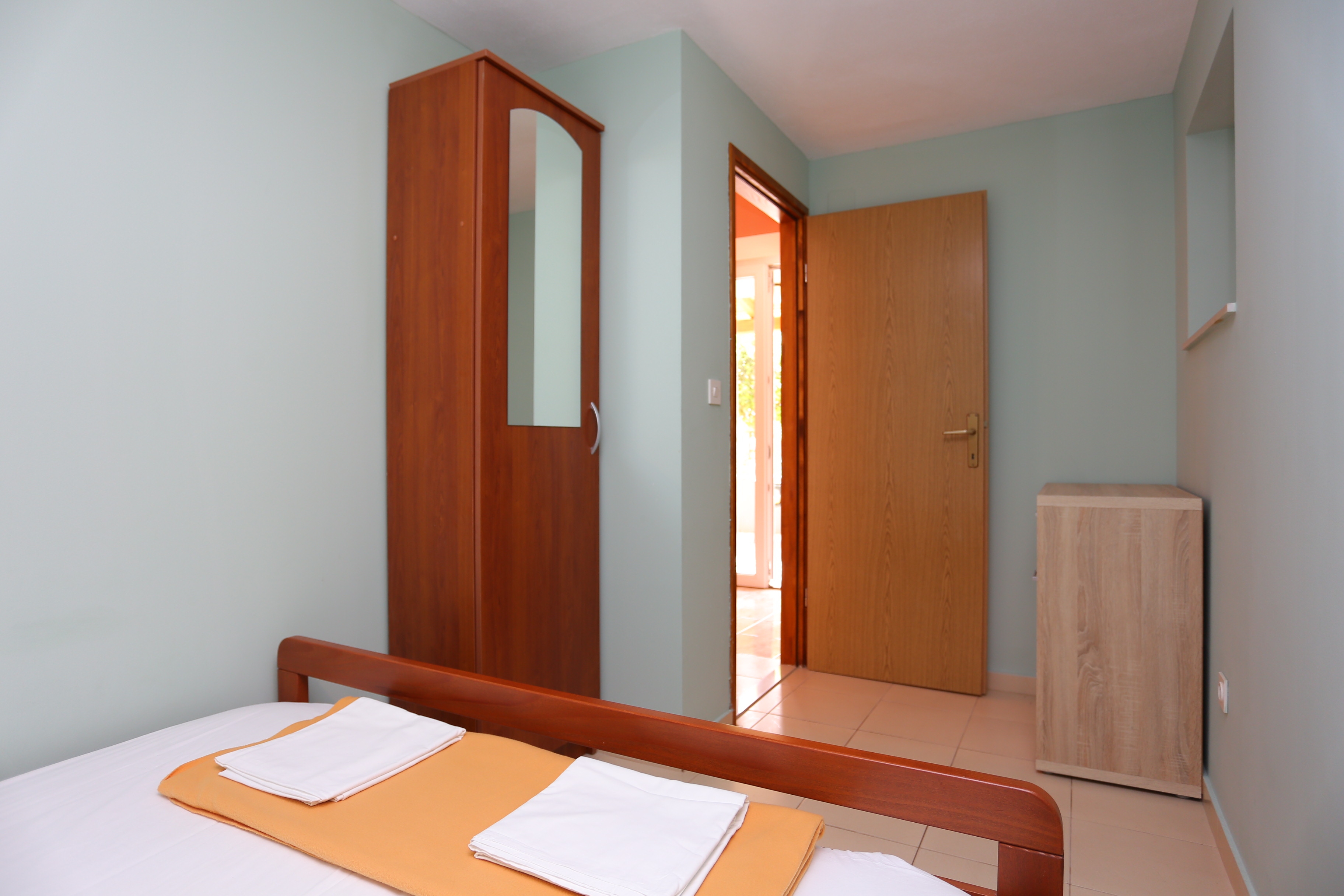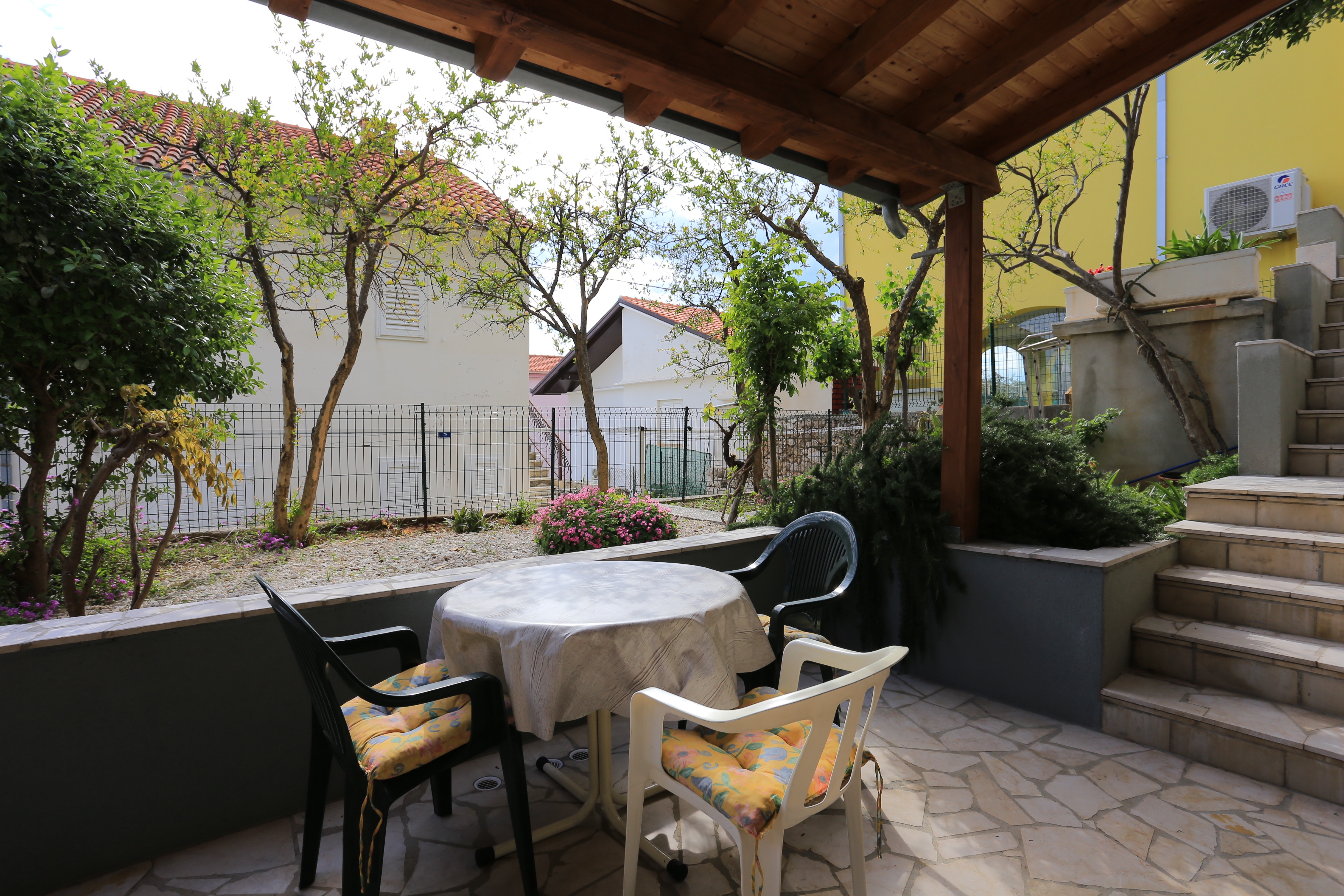 Apartment can accommodate 4 guests. Beds are situated in 1 sleeping rooms, but also in the dining room, within 28m2. Guests can use a private terrace to enjoy the warm summer evenings. Food can be prepared using barbecue which is shared with other guests too. INCLUDED IN THE PRICE: tourist tax, final cleaning, air-conditioning, parking, internet, iron, ironing board, hairdryer. OBLIGATORY ADDITIONAL COSTS: short stay fee (surcharge depending on a number of booked nights: 30% - 1, 20% - 2, 10% - 3). The availability of additional services for your chosen dates of stay, as well as their prices (if none are listed) must be checked ahead of time. Any additional services not shown in the price calculation are payable directly to the property owner and only if used by the visitor. Discounts to the base price: free day 14=13 (for reservations of 14 or more days you get one free day for the stay until 31122026).