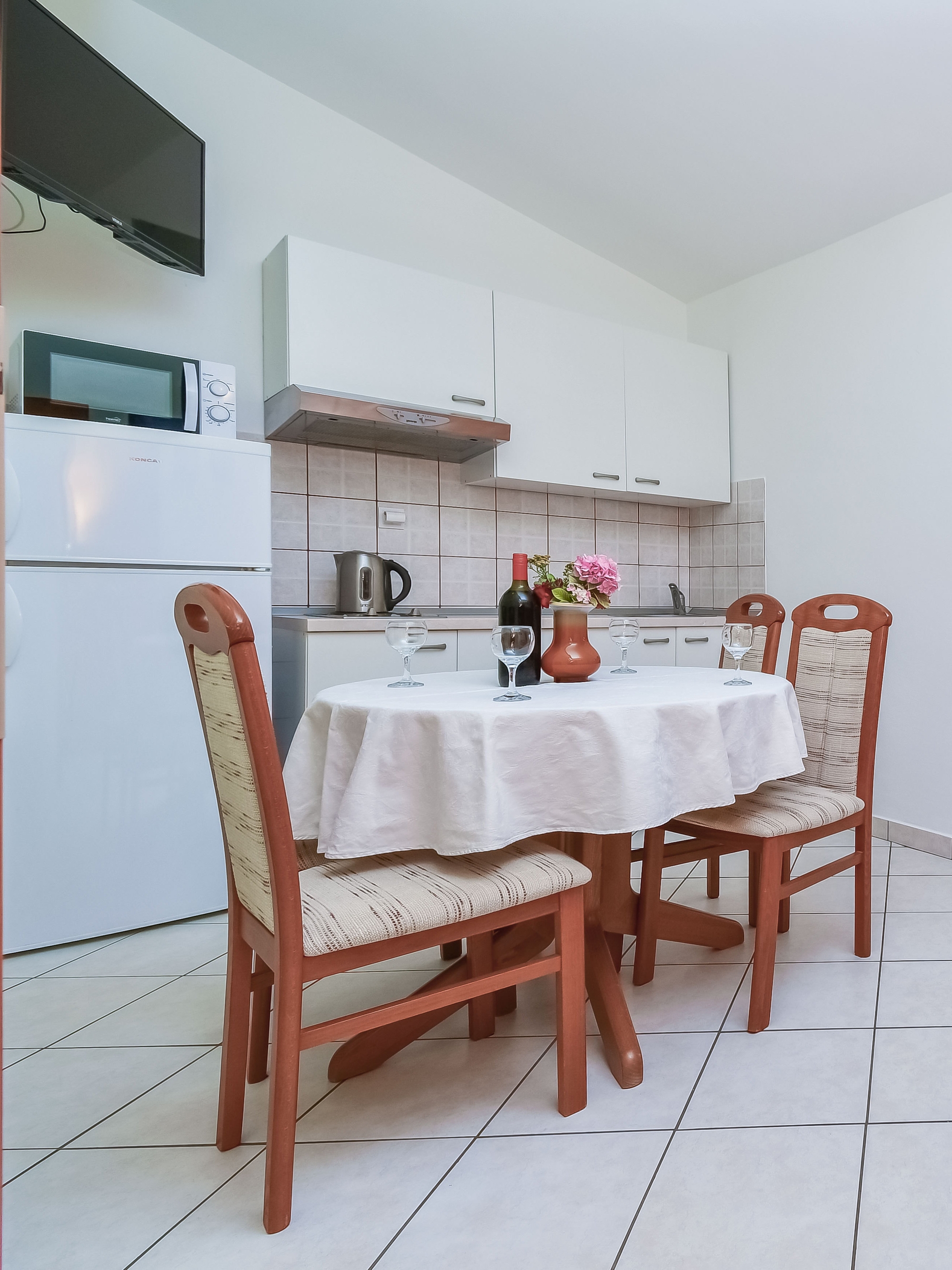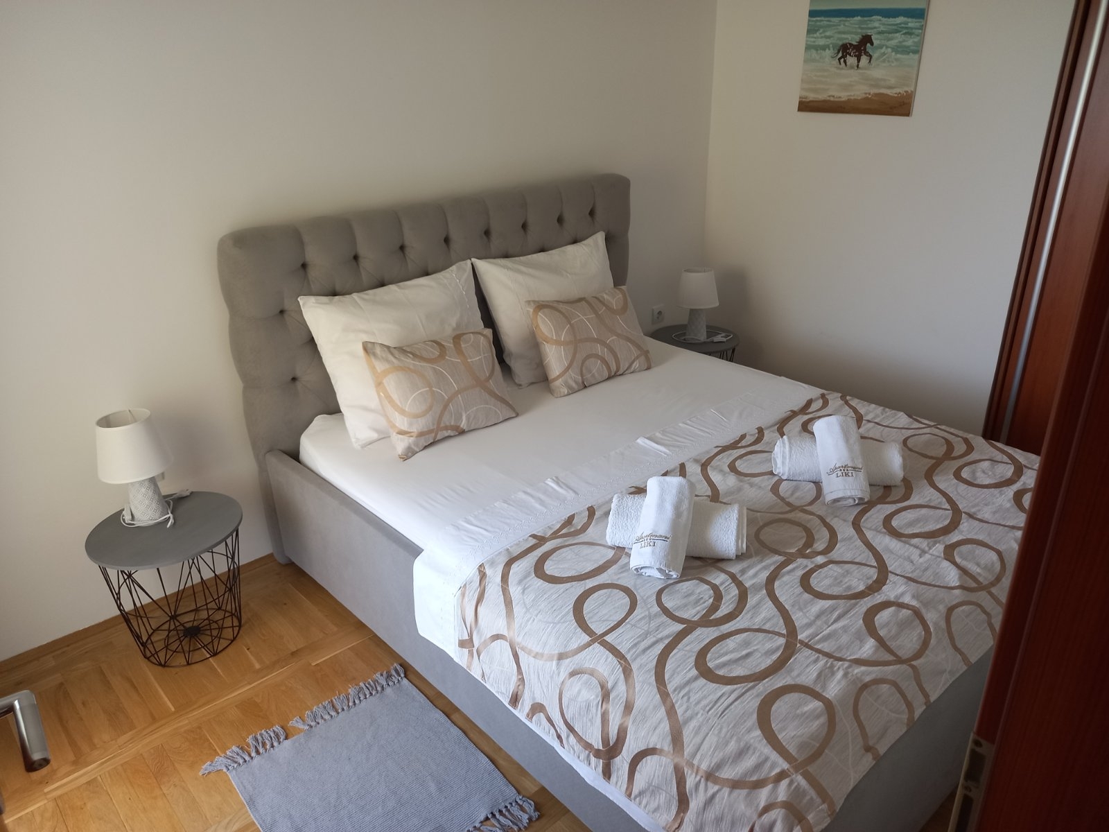 Apartment can accommodate 3 guests. Beds are situated in 1 sleeping rooms, but also in the living room, within 26m2. Guests can use a private balcony to enjoy the warm summer evenings. The apartment offers the sea view. Food can be prepared using barbecue which is shared with other guests too. INCLUDED IN THE PRICE: tourist tax, final cleaning, parking, internet, iron, ironing board, hairdryer. OBLIGATORY ADDITIONAL COSTS: short stay fee (surcharge depending on a number of booked nights: 30% - 1, 20% - 2, 10% - 3). OPTIONAL ADDITIONAL COSTS: air-conditioning (€0.50 per hour). The availability of additional services for your chosen dates of stay, as well as their prices (if none are listed) must be checked ahead of time. Any additional services not shown in the price calculation are payable directly to the property owner and only if used by the visitor.
