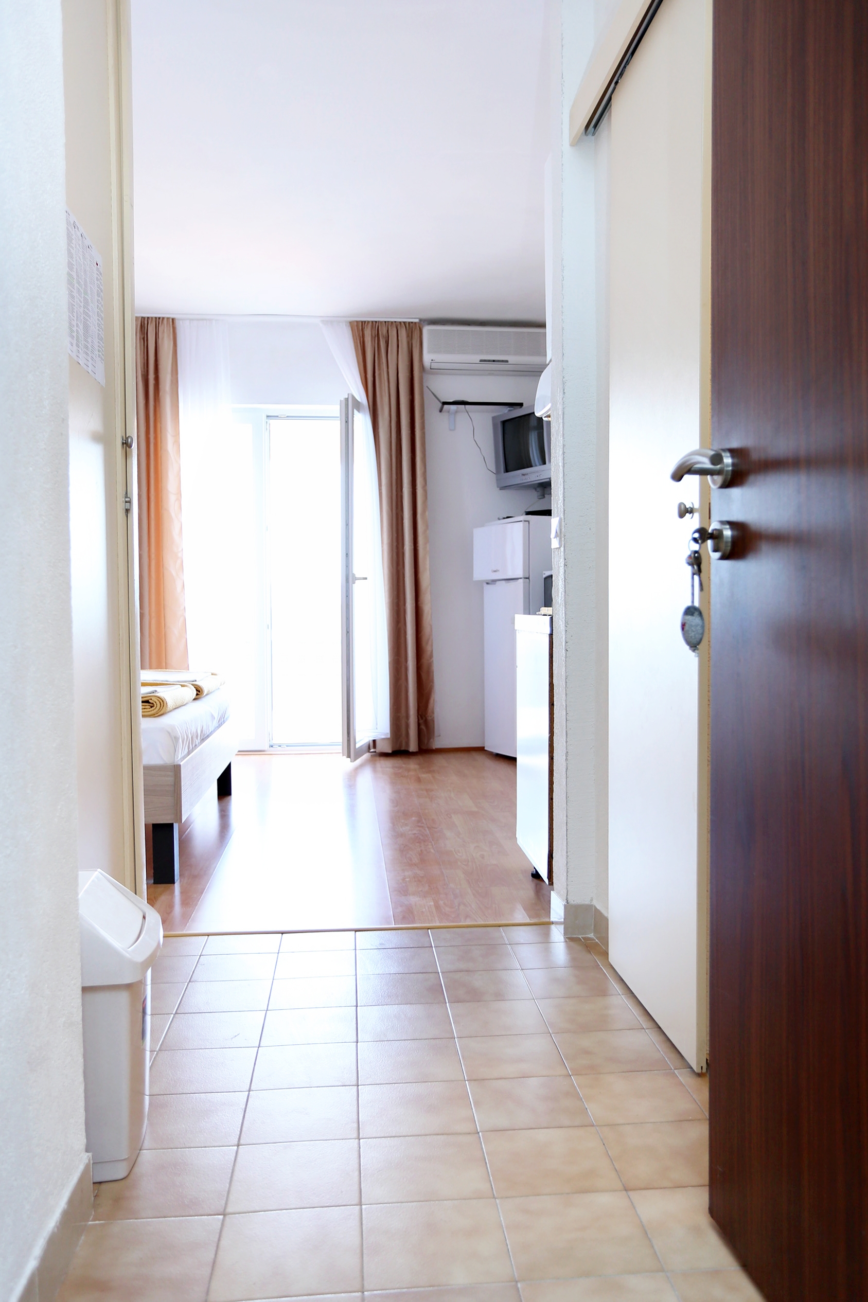 Studio flat can accommodate 2 guests. Beds are situated in 1 sleeping rooms, within 21m2. Guests can use a private terrace to enjoy the warm summer evenings. The studio offers the sea view. Food can be prepared using barbecue which is shared with other guests too. This accommodation unit welcomes pets at an additional charge. INCLUDED IN THE PRICE: tourist tax, final cleaning, parking, garage, internet, baby cot. OBLIGATORY ADDITIONAL COSTS: short stay fee (surcharge depending on a number of booked nights: 30% - 1, 20% - 2, 10% - 3). OPTIONAL ADDITIONAL COSTS: air-conditioning (€0.50 per hour), pets (€10.00 per night). The availability of additional services for your chosen dates of stay, as well as their prices (if none are listed) must be checked ahead of time. Any additional services not shown in the price calculation are payable directly to the property owner and only if used by the visitor.