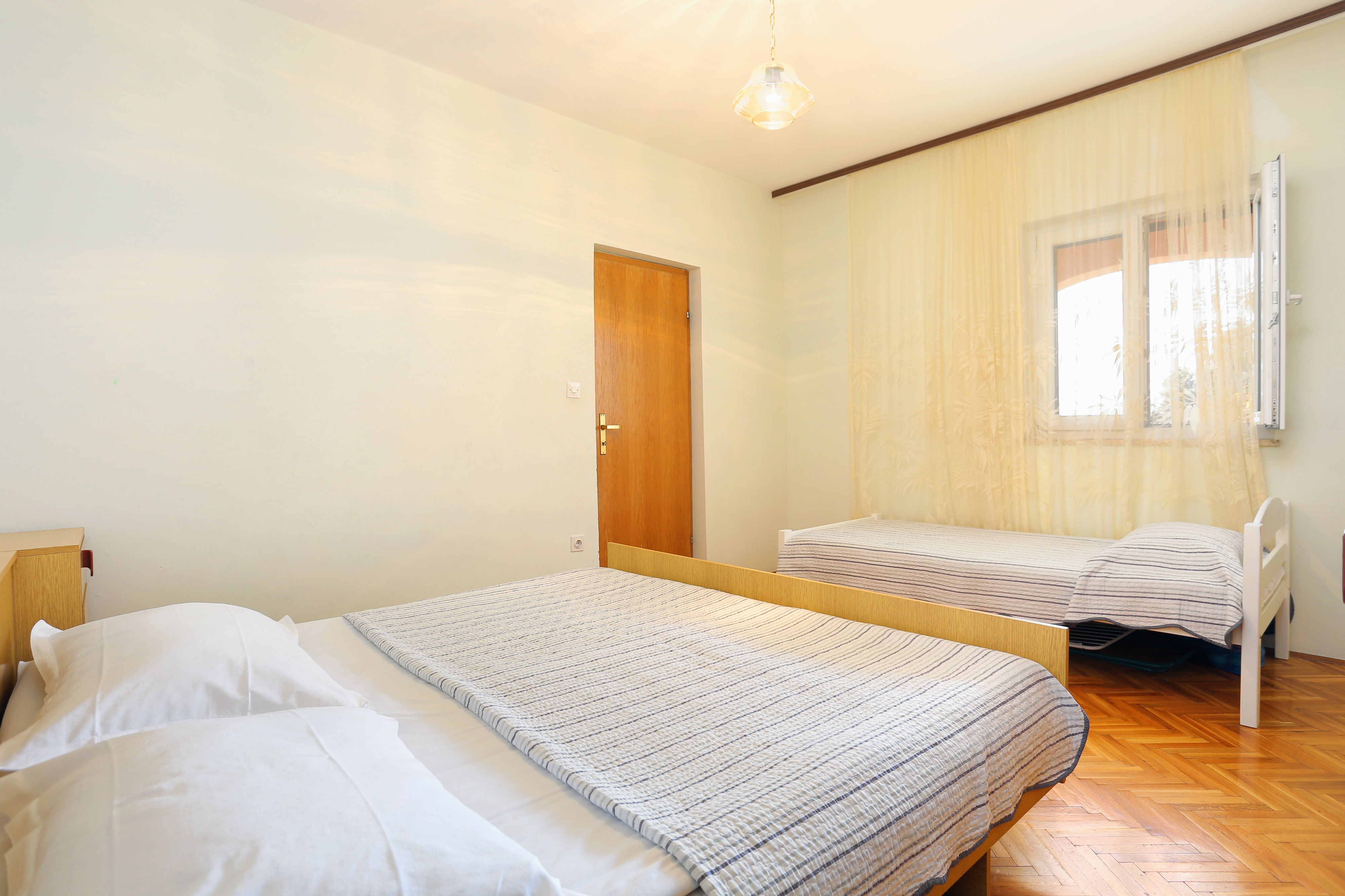 Apartment can accommodate 3 guests. Beds are situated in 1 sleeping rooms, within 32m2. Guests can use a private terrace to enjoy the warm summer evenings. The apartment offers the sea view. Food can be prepared using barbecue which is shared with other guests too. INCLUDED IN THE PRICE: tourist tax, final cleaning, air-conditioning, parking, internet, iron, hairdryer. OBLIGATORY ADDITIONAL COSTS: short stay fee (surcharge depending on a number of booked nights: 30% - 1, 20% - 2, 10% - 3). OPTIONAL ADDITIONAL COSTS: additional bed (€10.00 per night). The availability of additional services for your chosen dates of stay, as well as their prices (if none are listed) must be checked ahead of time. Any additional services not shown in the price calculation are payable directly to the property owner and only if used by the visitor.