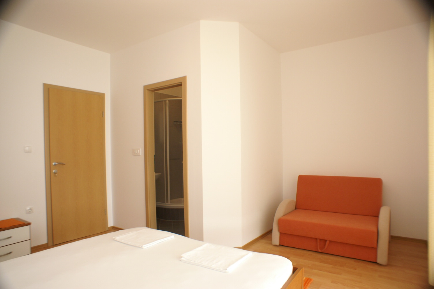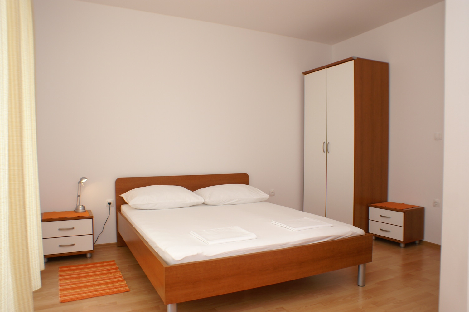 Apartment can accommodate 4 guests. Beds are situated in 2 sleeping rooms, within 45m2. Guests can use a private terrace to enjoy the warm summer evenings. The apartment offers the sea view. Food can be prepared using barbecue which is shared with other guests too. Other guests or hosts pass through the terrace of the booked accommodation unit. INCLUDED IN THE PRICE: tourist tax, final cleaning, air-conditioning, parking, internet. OBLIGATORY ADDITIONAL COSTS: short stay fee (surcharge depending on a number of booked nights: 30% - 1, 20% - 2, 10% - 3). OPTIONAL ADDITIONAL COSTS: 1 bed for children (€5.00 personnight). The availability of additional services for your chosen dates of stay, as well as their prices (if none are listed) must be checked ahead of time. Any additional services not shown in the price calculation are payable directly to the property owner and only if used by the visitor.