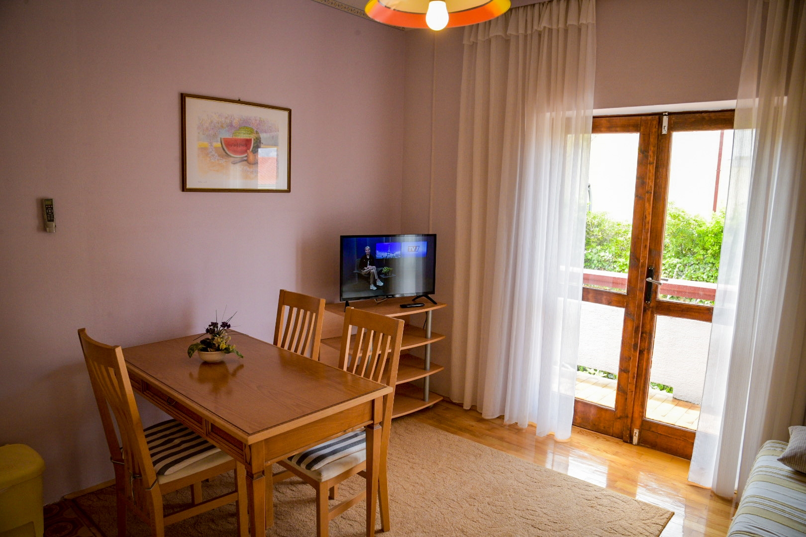 Apartment can accommodate 3 guests. Beds are situated in 1 sleeping rooms, but also in the dining room, within 33m2. Guests can use a private balcony to enjoy the warm summer evenings. The apartment offers the sea view. Food can be prepared using barbecue which is shared with other guests too. For the booked accommodation unit the deposit is paid directly to the owner upon check-in (deposit amount is displayed on the website) INCLUDED IN THE PRICE: tourist tax, final cleaning, parking, internet, baby cot. OBLIGATORY ADDITIONAL COSTS: deposit (€100.00 one-time payment). OPTIONAL ADDITIONAL COSTS: air-conditioning (€7.00 per night). The availability of additional services for your chosen dates of stay, as well as their prices (if none are listed) must be checked ahead of time. Any additional services not shown in the price calculation are payable directly to the property owner and only if used by the visitor.