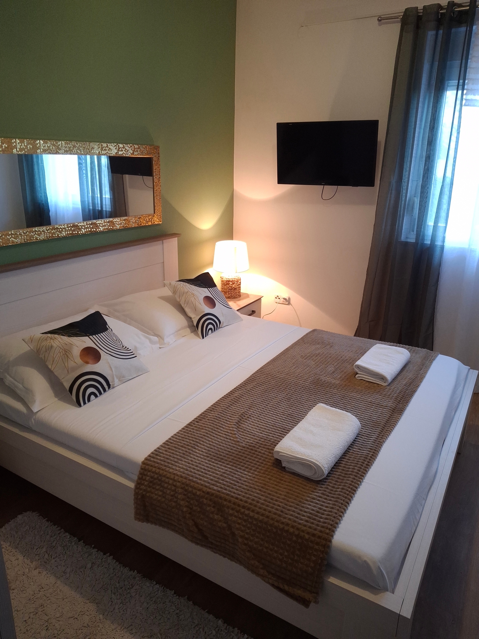 Apartment can accommodate 2 guests. Beds are situated in 1 sleeping rooms, within 28m2. Guests can use a private terrace to enjoy the warm summer evenings. Food can be prepared using barbecue which is shared with other guests too. Shared pool is on disposal during stay. Some of the rooms of the accommodation unit are not connected with the rest of the unit. INCLUDED IN THE PRICE: tourist tax, final cleaning, air-conditioning, pool, parking, internet, laundry, iron, hairdryer. OBLIGATORY ADDITIONAL COSTS: short stay fee (surcharge depending on a number of booked nights: 30% - 1, 20% - 2, 10% - 3). The availability of additional services for your chosen dates of stay, as well as their prices (if none are listed) must be checked ahead of time. Any additional services not shown in the price calculation are payable directly to the property owner and only if used by the visitor. Discounts to the base price: free day 21=19 (for reservations of 21 or more days you get 2 free days for the stay until 31122026).