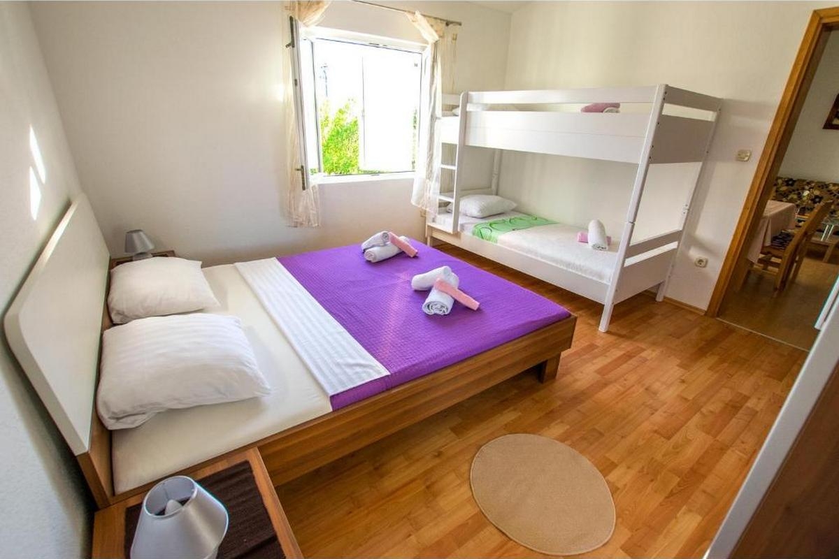 Apartment can accommodate 6 guests. Beds are situated in 2 sleeping rooms, within 65m2. Guests can use a private balcony to enjoy the warm summer evenings. The apartment offers the sea view. Food can be prepared using barbecue which is shared with other guests too. INCLUDED IN THE PRICE: tourist tax, final cleaning, air-conditioning, parking, internet, baby cot, iron, ironing board, hairdryer, sunchairs. OBLIGATORY ADDITIONAL COSTS: short stay fee (surcharge depending on a number of booked nights: 30% - 1, 20% - 2, 10% - 3). The availability of additional services for your chosen dates of stay, as well as their prices (if none are listed) must be checked ahead of time. Any additional services not shown in the price calculation are payable directly to the property owner and only if used by the visitor.