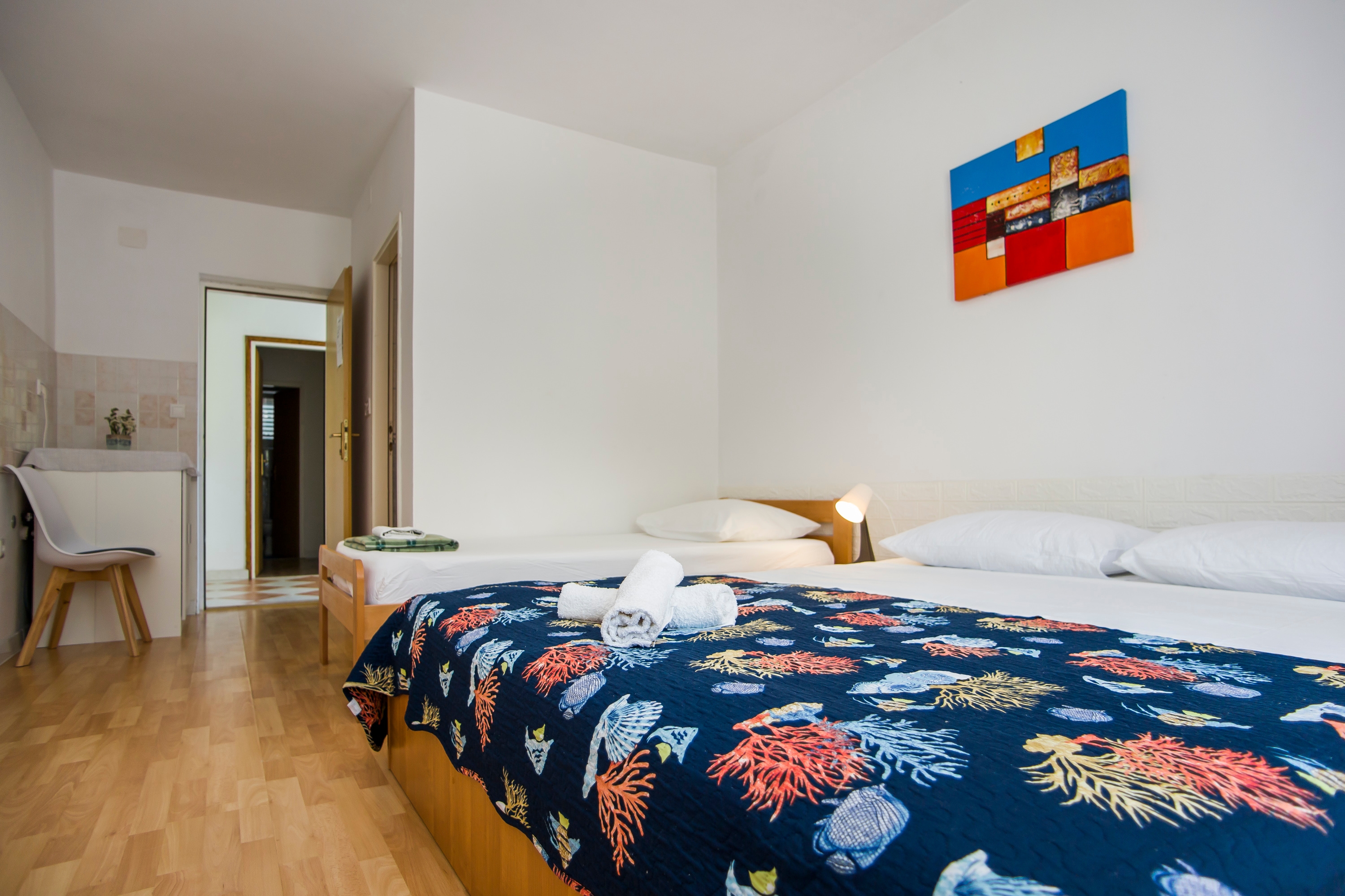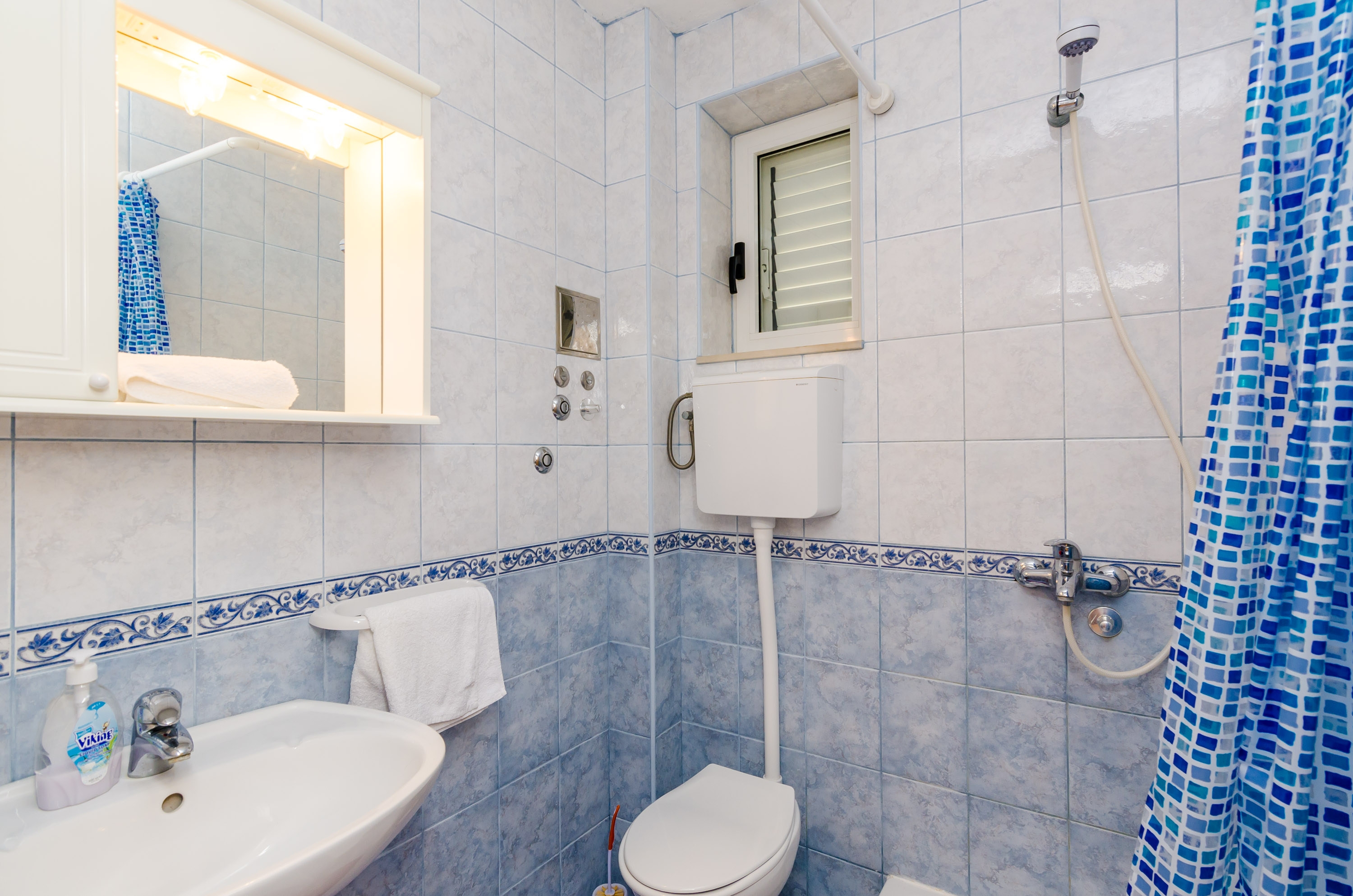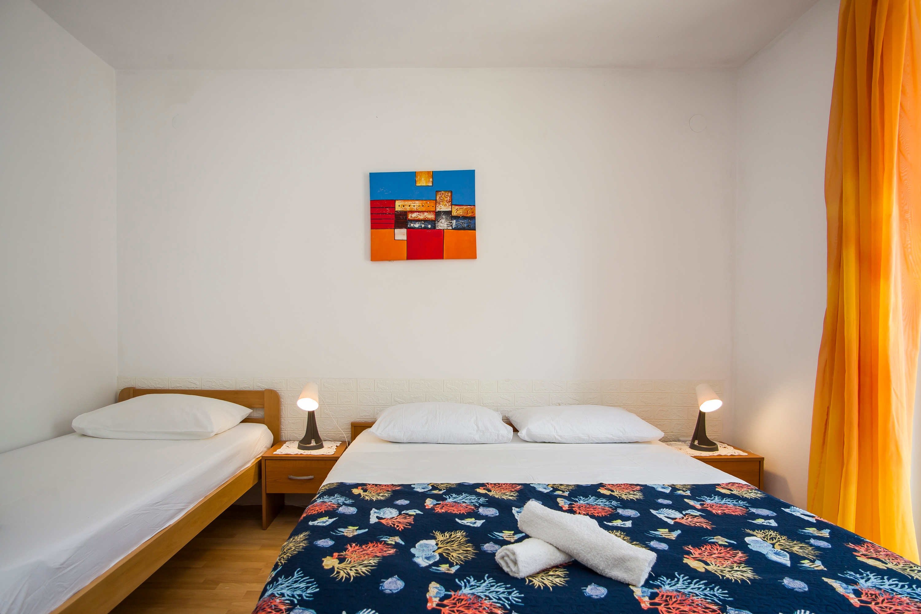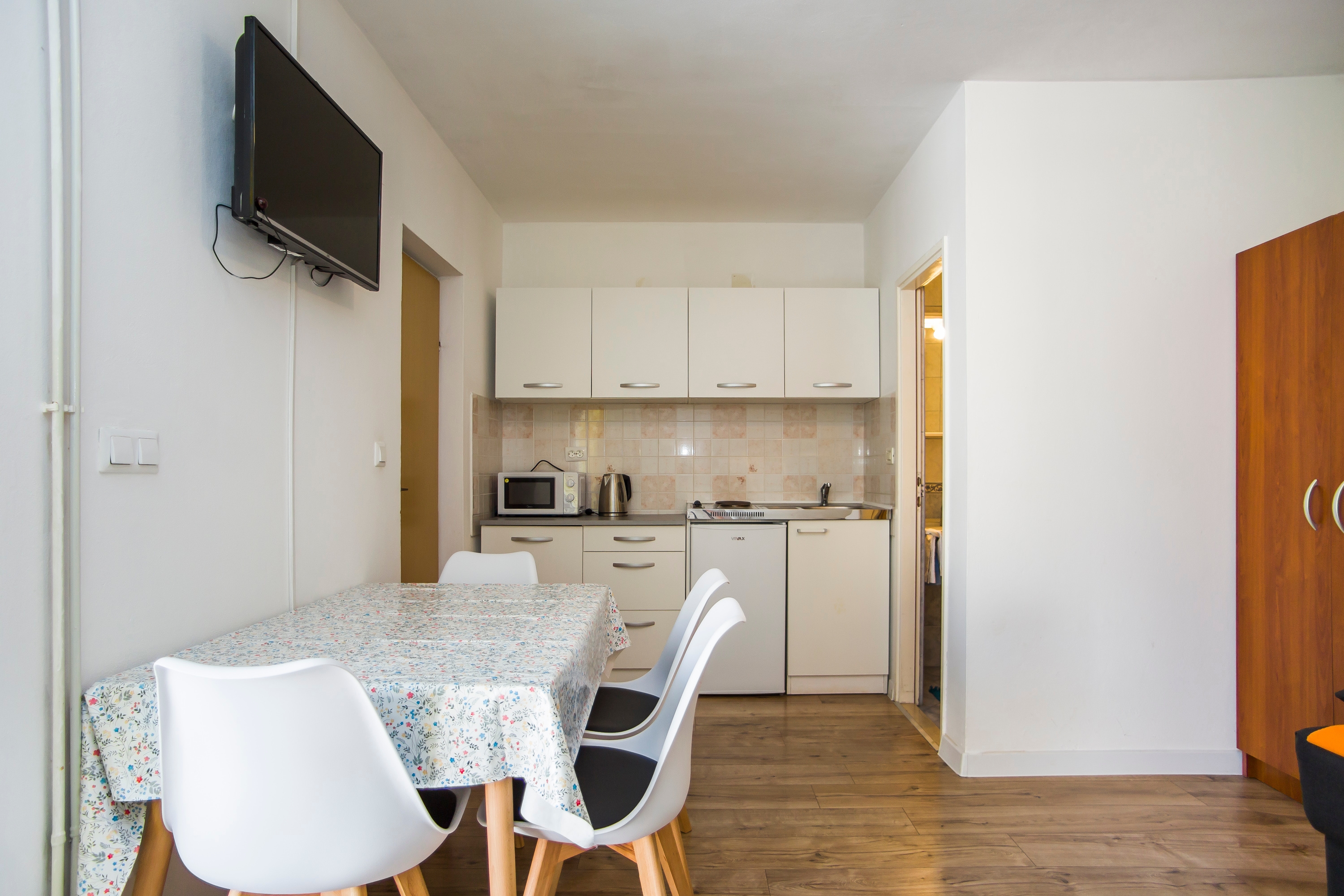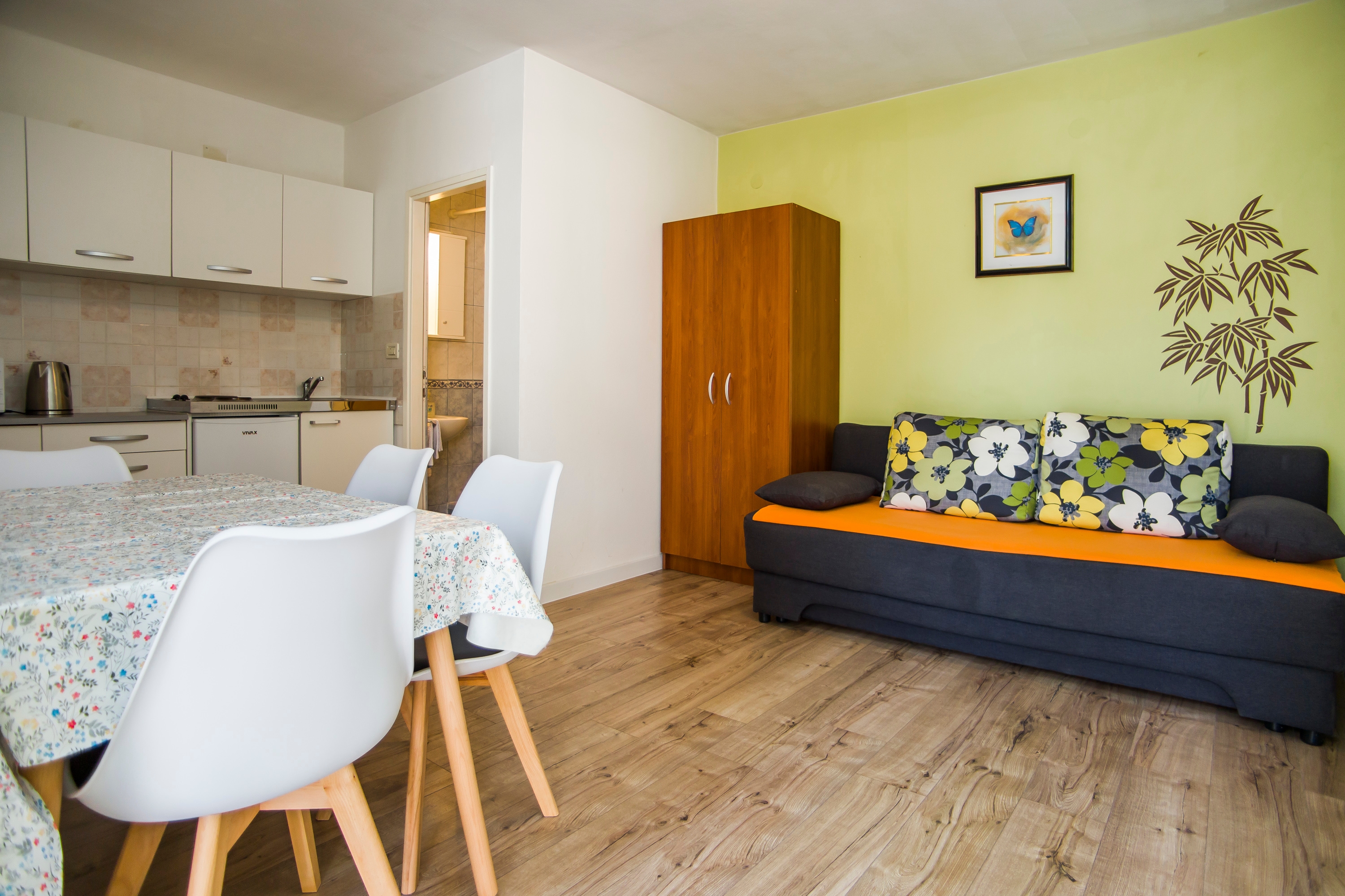 Apartment can accommodate 5 guests. Beds are situated in 1 sleeping rooms, but also in the living room, within 37m2. Guests can use a private terrace to enjoy the warm summer evenings. The apartment offers the sea view. For full enjoyment and relaxation there is a private barbecue for this accommodation guests only. INCLUDED IN THE PRICE: tourist tax, final cleaning, air-conditioning, parking, internet, iron, ironing board, hairdryer, sunchairs. The availability of additional services for your chosen dates of stay, as well as their prices (if none are listed) must be checked ahead of time. Any additional services not shown in the price calculation are payable directly to the property owner and only if used by the visitor.
