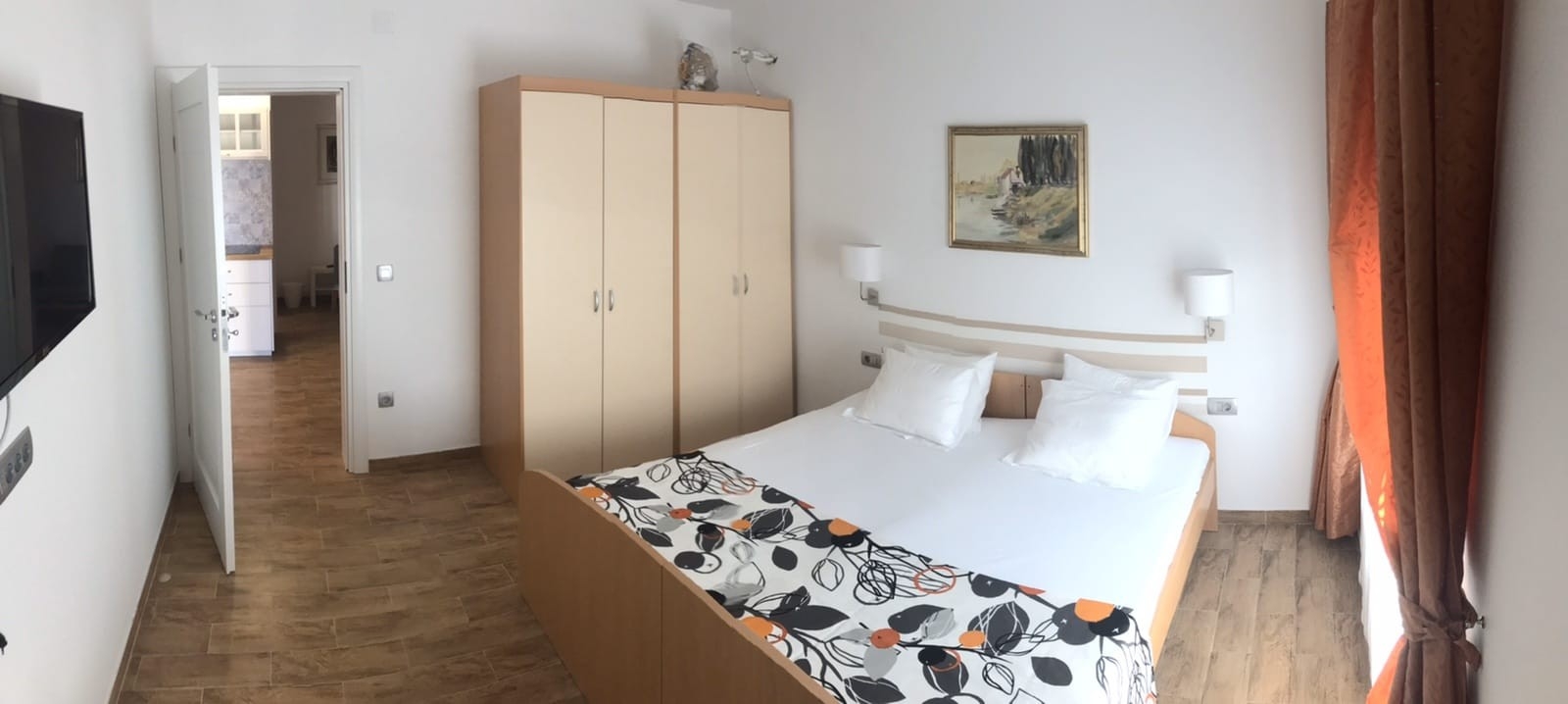 Apartment can accommodate 2 guests. Beds are situated in 1 sleeping rooms, within 38m2. Guests can use a private terrace to enjoy the warm summer evenings. INCLUDED IN THE PRICE: tourist tax, final cleaning, air-conditioning, parking, internet, baby cot, iron, ironing board, hairdryer, 2 beds for children (included in the price). The availability of additional services for your chosen dates of stay, as well as their prices (if none are listed) must be checked ahead of time. Any additional services not shown in the price calculation are payable directly to the property owner and only if used by the visitor.