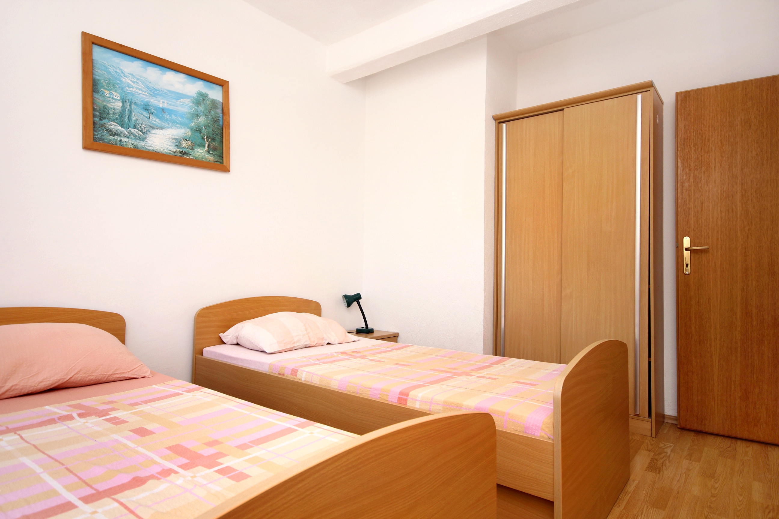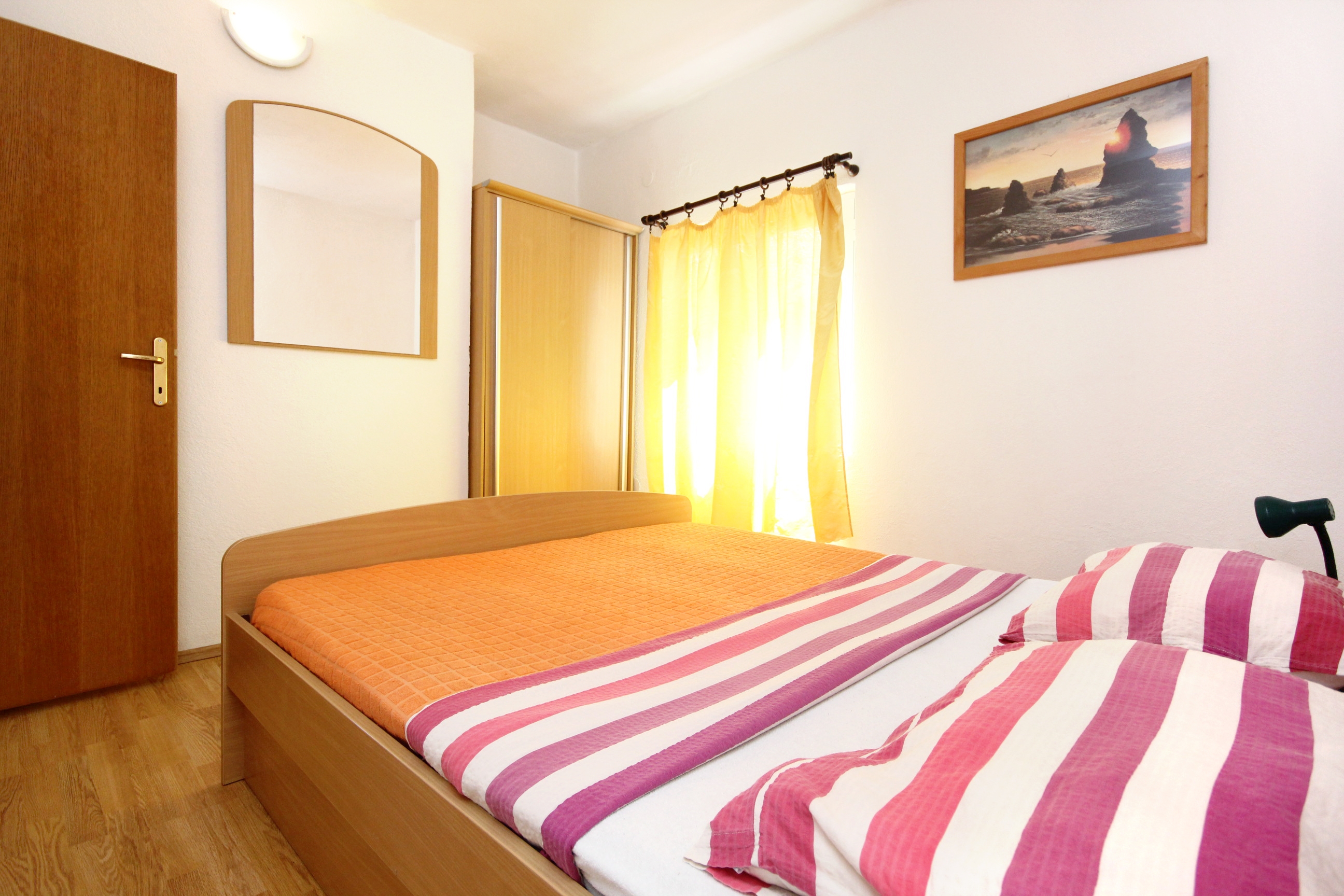 Apartment can accommodate 5 guests. Beds are situated in 2 sleeping rooms, but also in the living room, within 35m2. Guests can use a private terrace to enjoy the warm summer evenings. The apartment offers the sea view. Food can be prepared using barbecue which is shared with other guests too. Shared pool is on disposal during stay. INCLUDED IN THE PRICE: tourist tax, final cleaning, pool, parking, internet, baby cot, iron, ironing board, hairdryer. OPTIONAL ADDITIONAL COSTS: air-conditioning (€5.00 per night). The availability of additional services for your chosen dates of stay, as well as their prices (if none are listed) must be checked ahead of time. Any additional services not shown in the price calculation are payable directly to the property owner and only if used by the visitor.