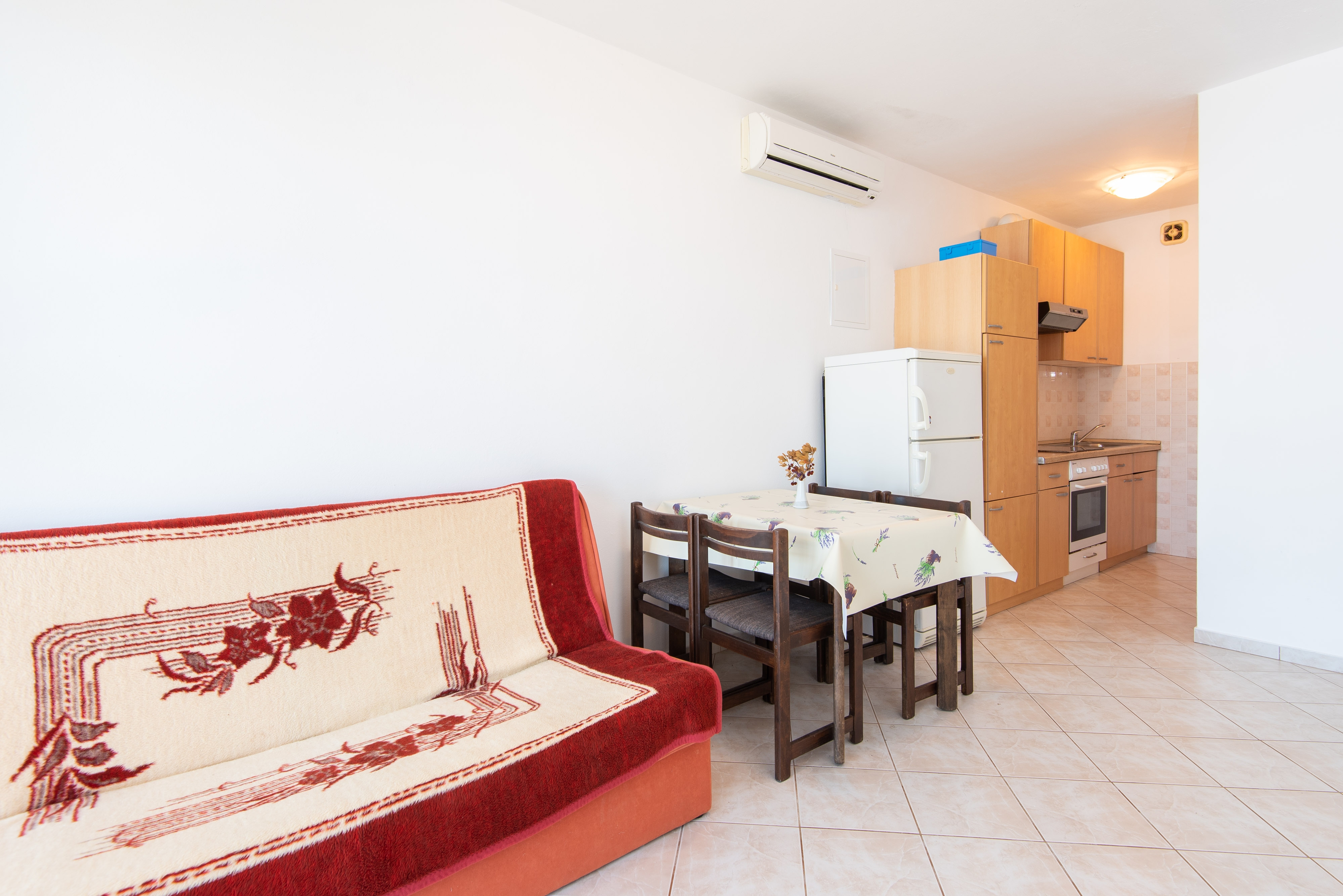 Apartment can accommodate 6 guests. Beds are situated in 2 sleeping rooms, but also in the living room, within 41m2. The apartment offers the sea view. Food can be prepared using barbecue which is shared with other guests too. This accommodation unit welcomes pets at an additional charge. Reserved accommodation unit has a shared terrace. INCLUDED IN THE PRICE: tourist tax, final cleaning, air-conditioning, parking, internet, boat mooring, hairdryer, sunchairs. OPTIONAL ADDITIONAL COSTS: pets (€3.00 per night). The availability of additional services for your chosen dates of stay, as well as their prices (if none are listed) must be checked ahead of time. Any additional services not shown in the price calculation are payable directly to the property owner and only if used by the visitor.