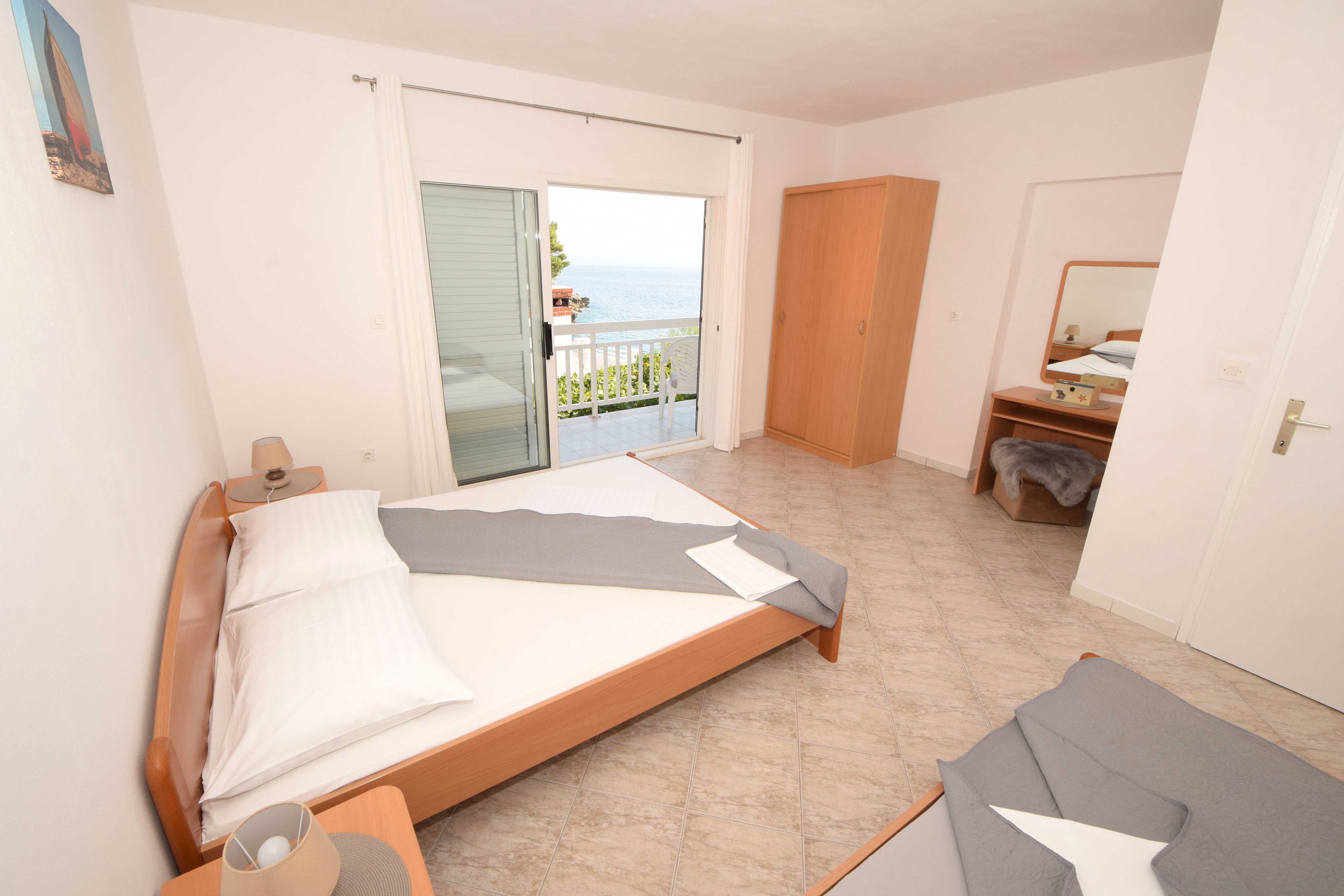 Apartment can accommodate 4 guests. Beds are situated in 2 sleeping rooms, within 59m2. Guests can use a private balcony to enjoy the warm summer evenings. The apartment offers the sea view. Food can be prepared using barbecue which is shared with other guests too. INCLUDED IN THE PRICE: tourist tax, final cleaning, air-conditioning, parking, internet. OBLIGATORY ADDITIONAL COSTS: short stay fee (surcharge depending on a number of booked nights: 30% - 1, 20% - 2, 10% - 3). OPTIONAL ADDITIONAL COSTS: boat mooring (€10.00 per night). The availability of additional services for your chosen dates of stay, as well as their prices (if none are listed) must be checked ahead of time. Any additional services not shown in the price calculation are payable directly to the property owner and only if used by the visitor.