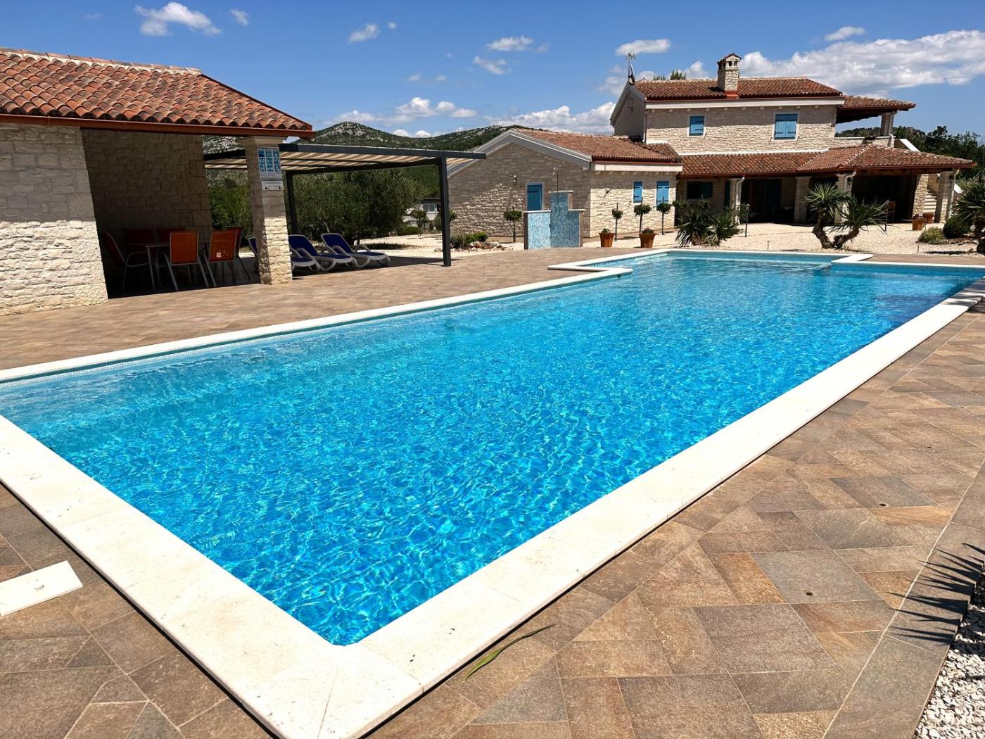 Boasting mountain views, Villa Tovarovica offers accommodation with pool with a view, a garden and barbecue facilities, around 23 km from Sibenik Town Hall. Featuring a shared kitchen, this property also provides guests with an outdoor fireplace. There is a sun terrace and guests can make use of free WiFi and free private parking.