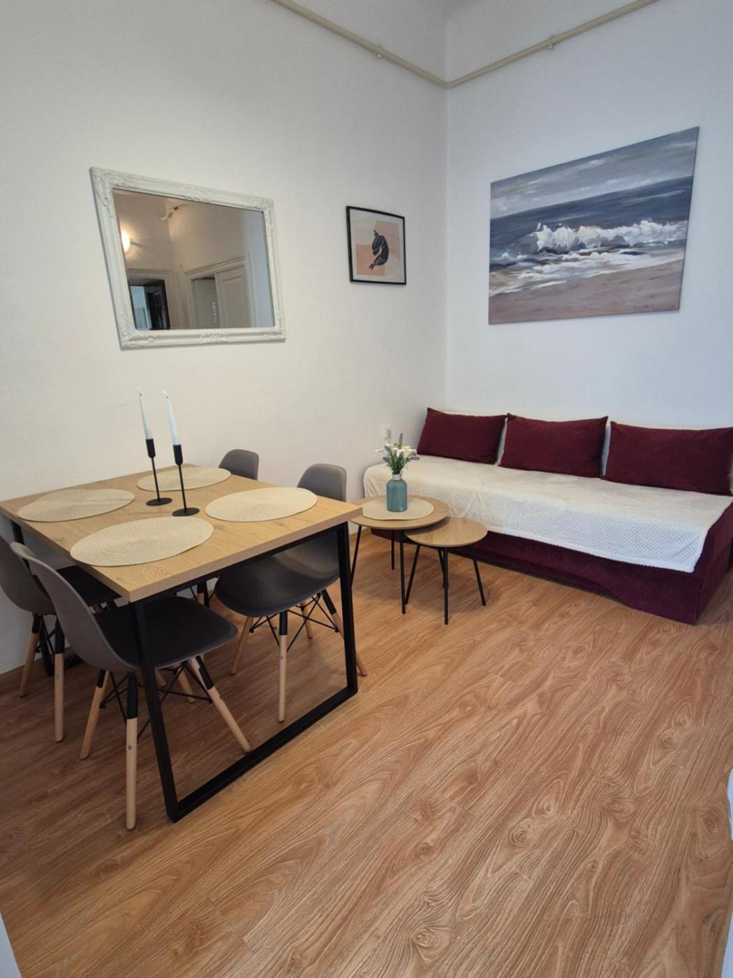 One-Bedroom Apartment. This air-conditioned apartment features 1 living room, 1 separate bedroom and 1 bathroom with a shower. Meals can be prepared in the kitchen, which has a stovetop, a refrigerator, kitchenware and a microwave. This apartment has a washing machine, flat-screen TV, city views, as well as winechampagne for guests. The unit has 3 beds.