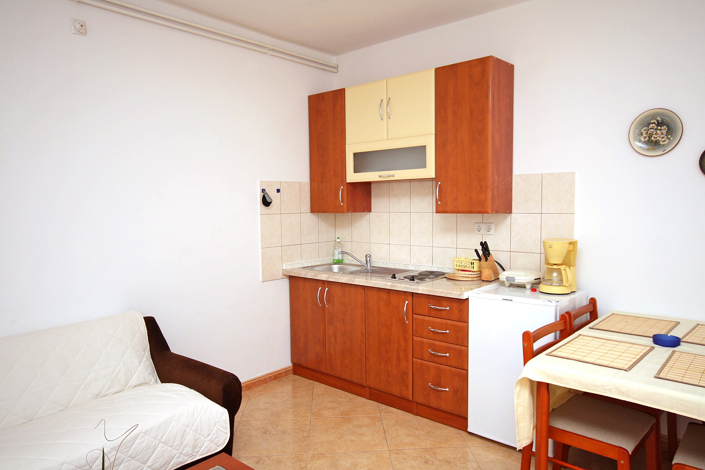 Apartment can accommodate 3 guests. Beds are situated in 1 sleeping rooms, but also in the living room, within 35m2. Guests can use a private terrace to enjoy the warm summer evenings. Food can be prepared using barbecue which is shared with other guests too. Shared pool is on disposal during stay. This accommodation unit welcomes pets at an additional charge. INCLUDED IN THE PRICE: tourist tax, final cleaning, air-conditioning, pool, parking, internet, iron, hairdryer. OBLIGATORY ADDITIONAL COSTS: short stay fee (surcharge depending on a number of booked nights: 30% - 1, 20% - 2, 10% - 3). OPTIONAL ADDITIONAL COSTS: pets (€10.00 per night). The availability of additional services for your chosen dates of stay, as well as their prices (if none are listed) must be checked ahead of time. Any additional services not shown in the price calculation are payable directly to the property owner and only if used by the visitor.
