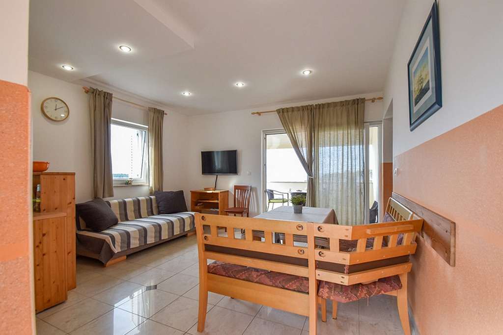 Apartment can accommodate 4 guests. Beds are situated in 2 sleeping rooms, within 53m2. Guests can use a private terrace to enjoy the warm summer evenings. The apartment offers the sea view. Food can be prepared using barbecue which is shared with other guests too. INCLUDED IN THE PRICE: tourist tax, final cleaning, air-conditioning, parking, internet, iron, ironing board, hairdryer. OPTIONAL ADDITIONAL COSTS: laundry (€10.00 washing), additional bed (€10.00 per night). The availability of additional services for your chosen dates of stay, as well as their prices (if none are listed) must be checked ahead of time. Any additional services not shown in the price calculation are payable directly to the property owner and only if used by the visitor.